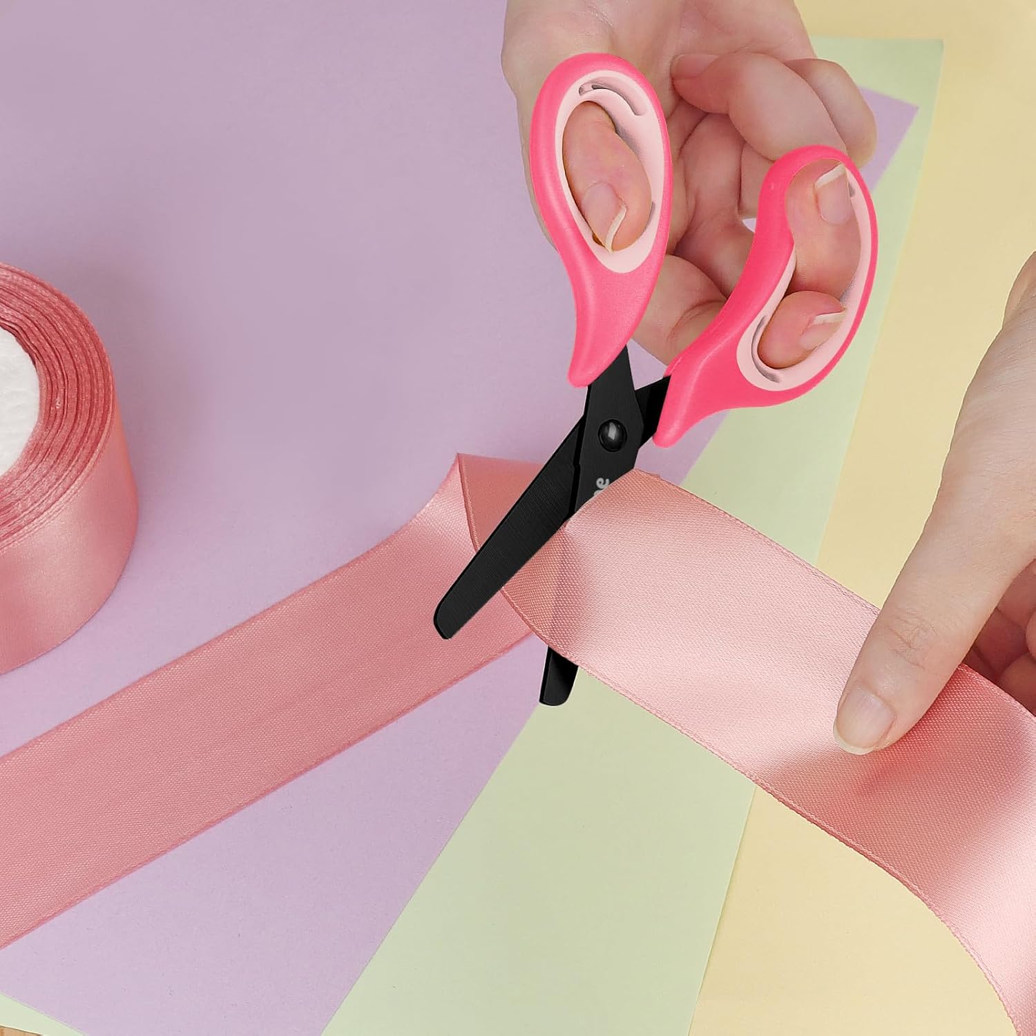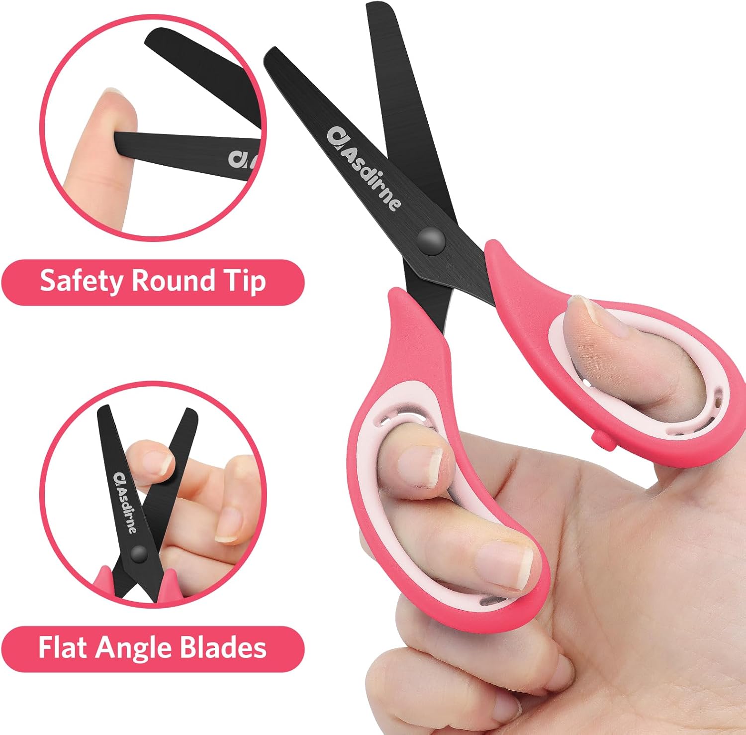 Materiale di alta qualità. Le forbici per bambini sono realizzate in acciaio inossidabile di alta qualità, gomma e materiale ABS, che è antiruggine, resistente e inodore. Punta smussata di sicurezza. Il design ad angolo ottuso sulla punta delle forbici per bambini tiene i bambini lontani dal rischio di essere pugnalati. Taglio senza intoppi. Rispetto alla lama in plastica, la lama in acciaio inossidabile elaborata dall'affilatura professionale può tagliare la carta più liscia. Comodo stoccaggio. Ogni forbice per bambini viene fornita con una copertura a forbice per garantire sicurezza proteggendo le lame. Bel regalo. Adorabile design del prodotto lo rende la scelta migliore di regalo. I bei colori rendono i bambini più interessati alla realizzazione a mano. Nota: adatto a bambini di età superiore ai 3 anni.