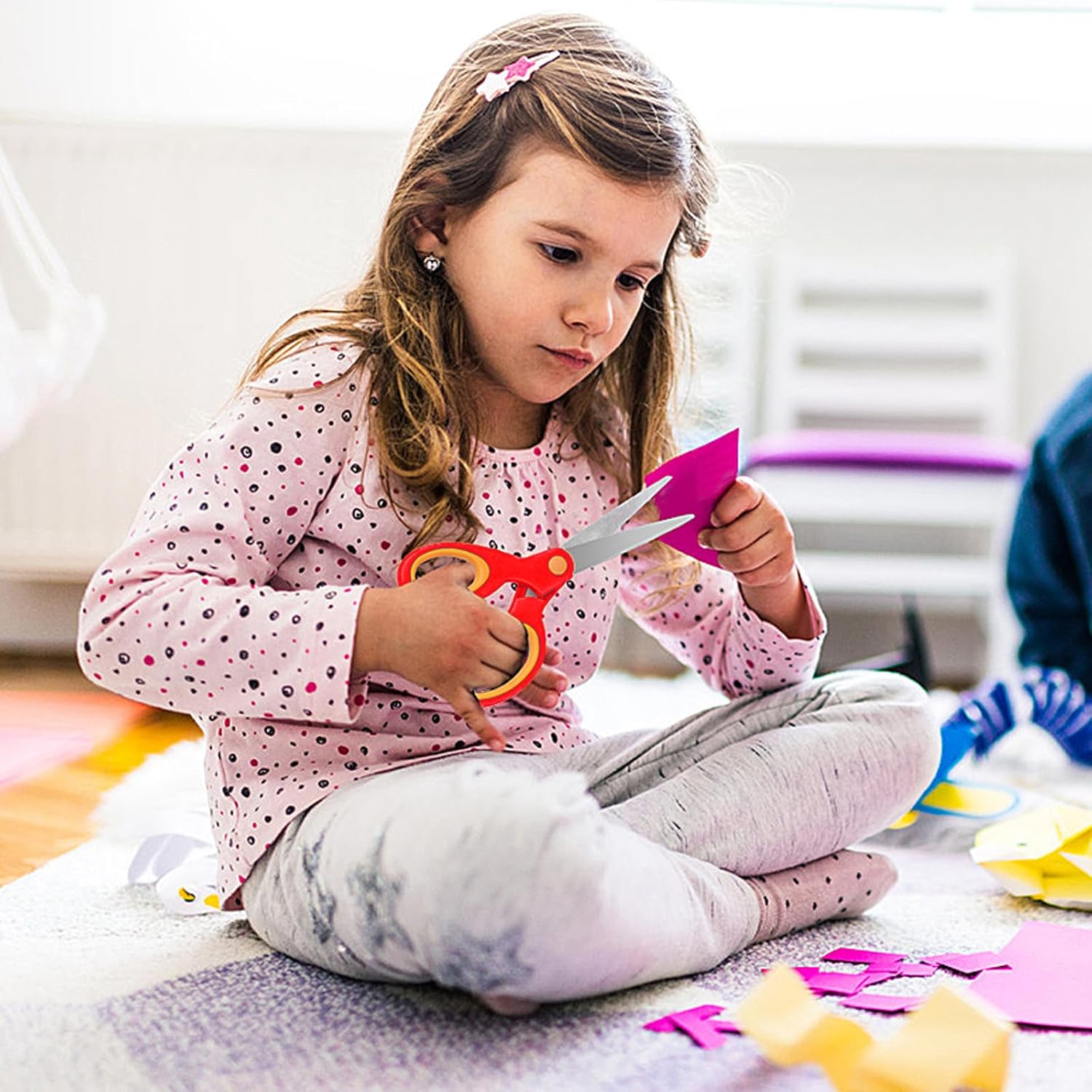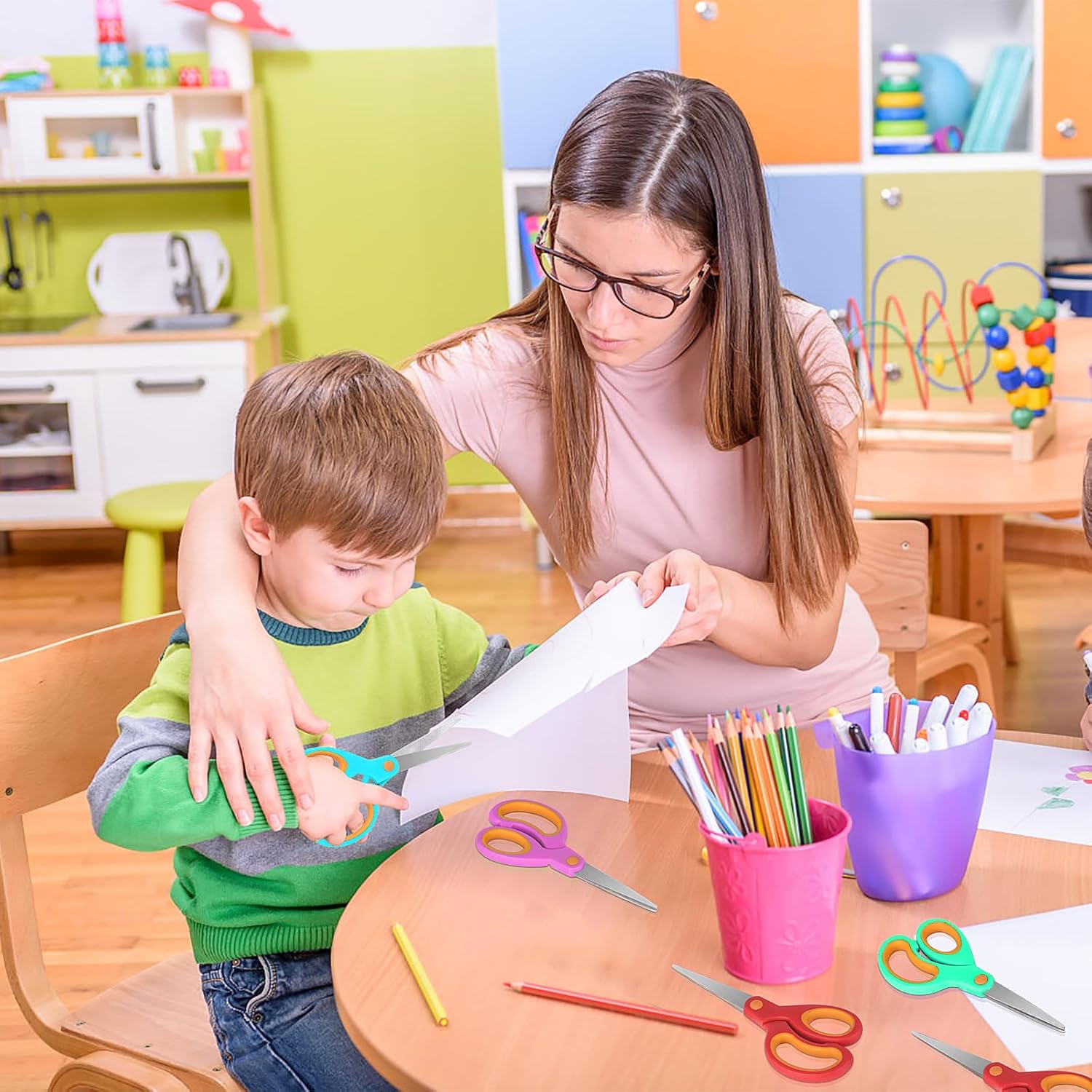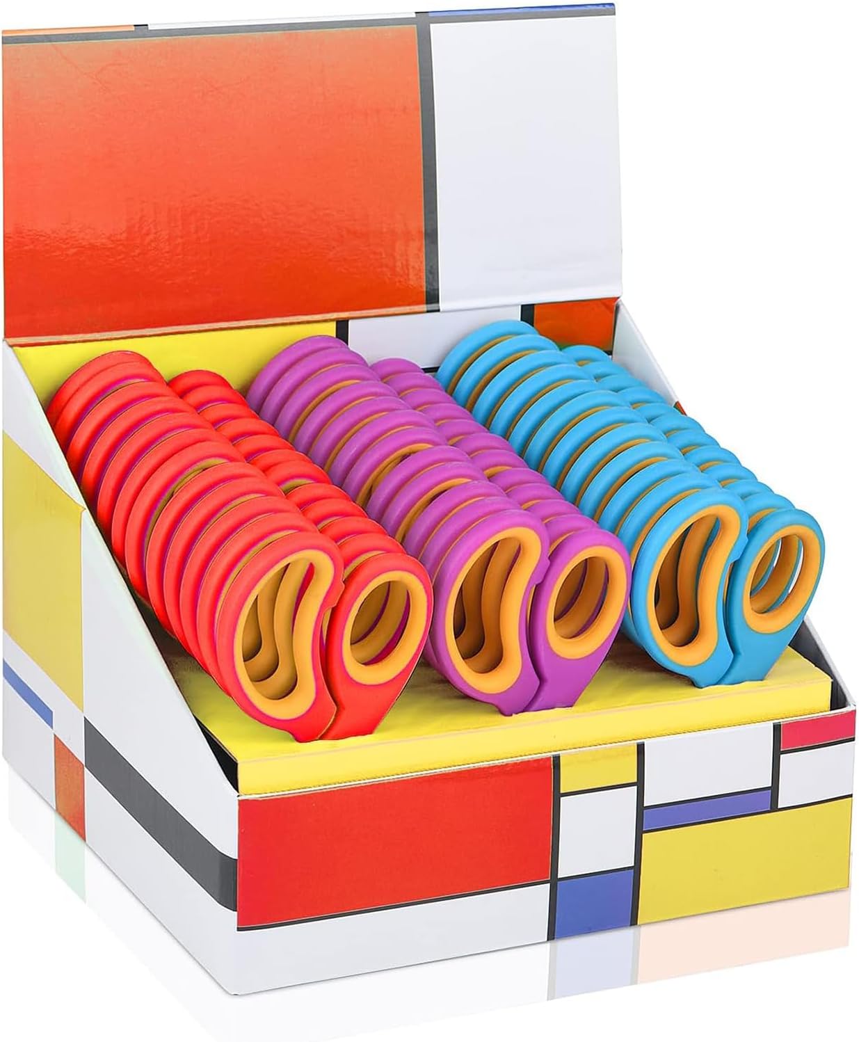 Confezione da 36 forbici per bambini disponibili in 3 colori freddi: rosso-12 punti, viola-12 punti, ciano 12 conteggi, ciano Punte rotonde sicure: è più sicuro con lame di sicurezza in acciaio inossidabile resistenti e punte arrotondate sicure Multiuso: è ideale per il fai da te e per l'aula poiché le nostre forbici per bambini possono facilmente tagliare carta, foto, spago, biglietti, creare progetti artigianali e molto altro ancora Facile da usare: è facile da usare con manici ergonomici Chi può usare queste forbici? È una scelta comoda per studenti della scuola materna e elementare e media