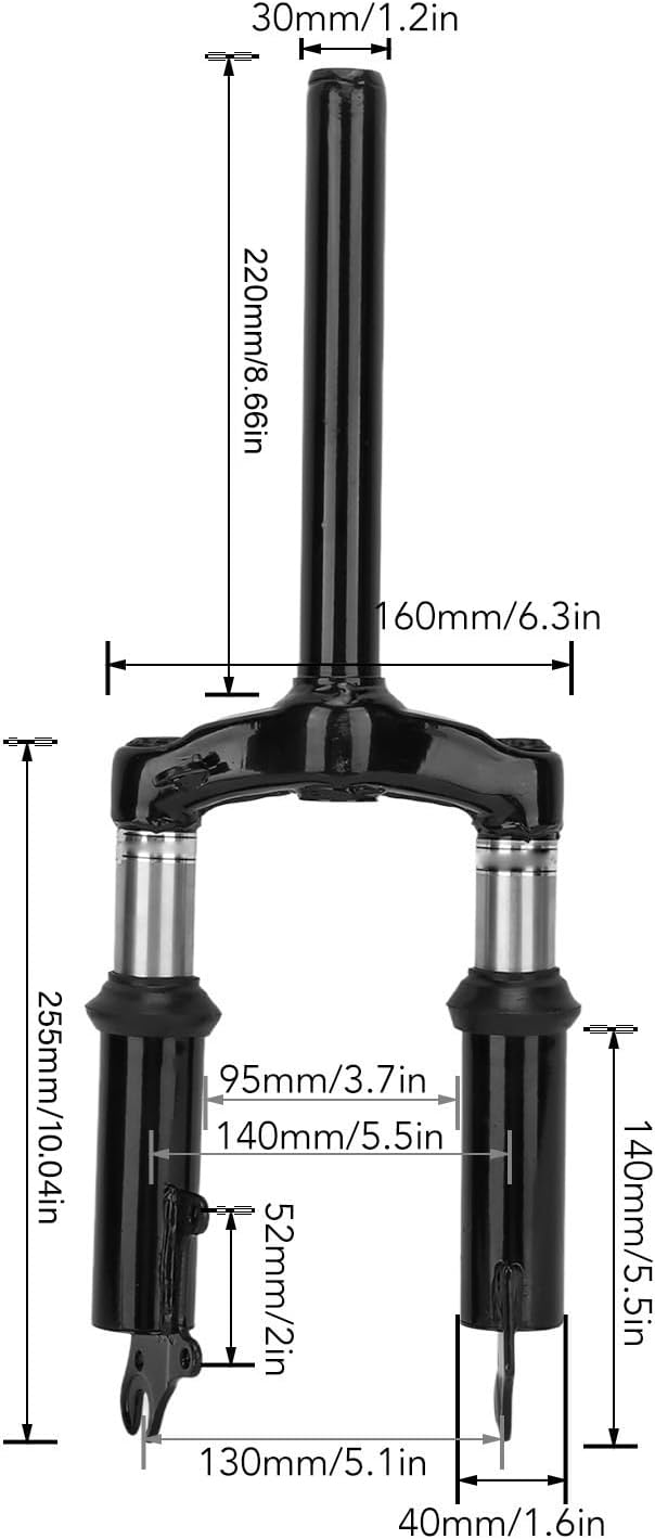 Fai da te preferito – Si adatta alla maggior parte dei modelli da 10 pollici. La sospensione dell'ammortizzatore della forcella anteriore combina semplicità ed efficienza, fornendo un comodo processo di installazione che gli appassionati del fai-da-te apprezzeranno sicuramente. 【Robusta capacità di carico】 - Cerchi una resistenza senza pari? Scegli forcelle ammortizzate per bicicletta che abbiano un'eccellente capacità di carico e possano facilmente sostenere l'intero peso dello scooter elettrico. 【Riduzione delle Vibrazioni】 - La forcella ammortizzata anteriore non supporta solo il peso, ma migliora anche la tua esperienza di guida con la capacità di ridurre drasticamente le vibrazioni, rendendo le tue spedizioni in scooter più fluide, più confortevoli e meno distraenti. 【Qualità affidabile】 - La nostra forcella ammortizzata per scooter elettrico è realizzata in lega di acciaio di alta qualità, mentre le parti nere sono spruzzate con vernice resistente alla ruggine. Questa combinazione offre forza e affidabilità imbattibili su cui puoi fare affidamento! 【Installazione semplice】 – La semplicità è il nostro mantra! Con la nostra forcella anteriore per scooter elettrico, non ci sono buchi, né danni allo scooter, solo una semplice configurazione che impedisce al connettore della batteria di cadere a causa delle vibrazioni.