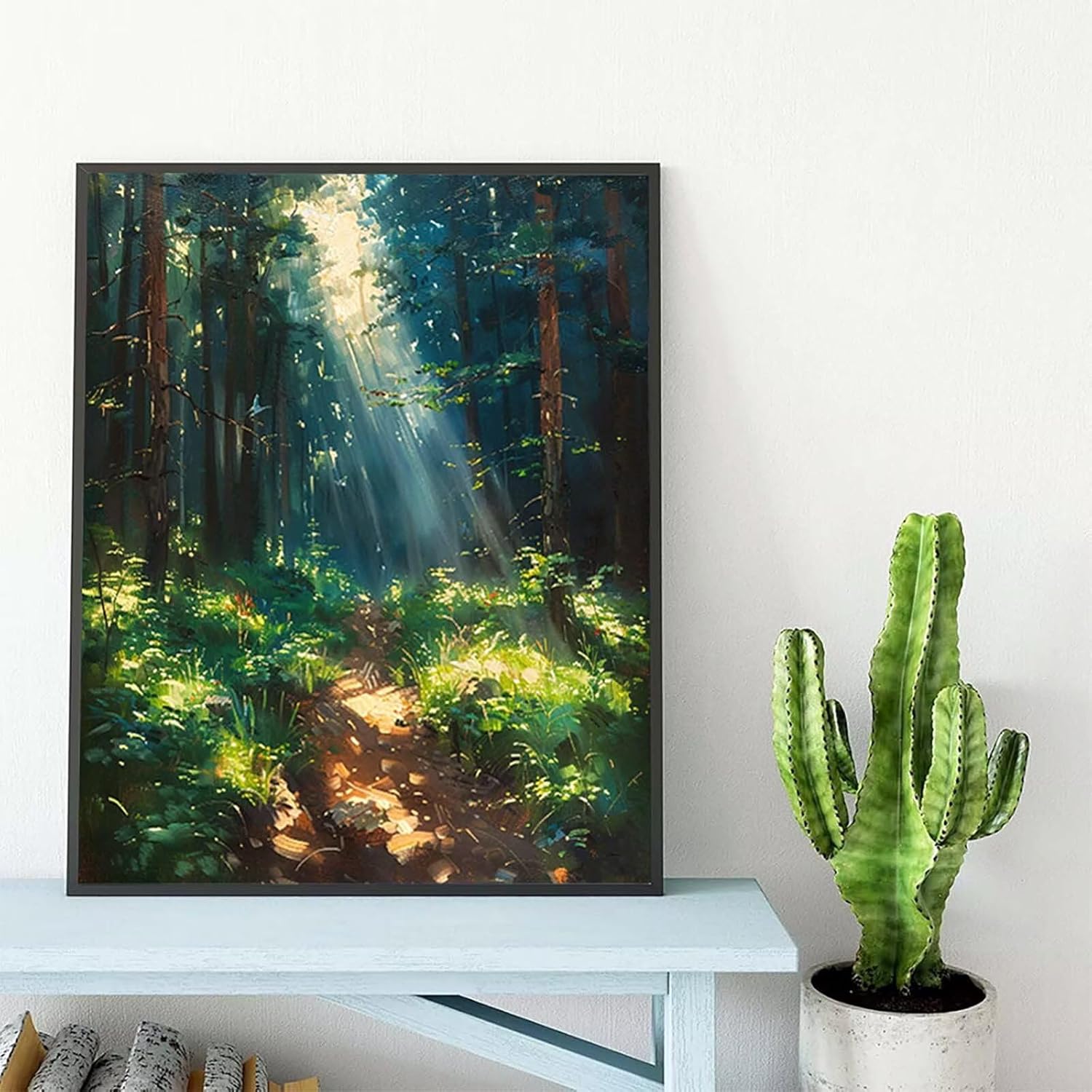 Foresta Dipingere con i Numeri, Paint by Numbers Paesaggio Dipingere con i Numeri Adulti Kit di Pittura Acrilica con Pennelli e Pigmento Acrilico, Decorazioni Parete, Regalo Donna 30x40cm -zp253OM