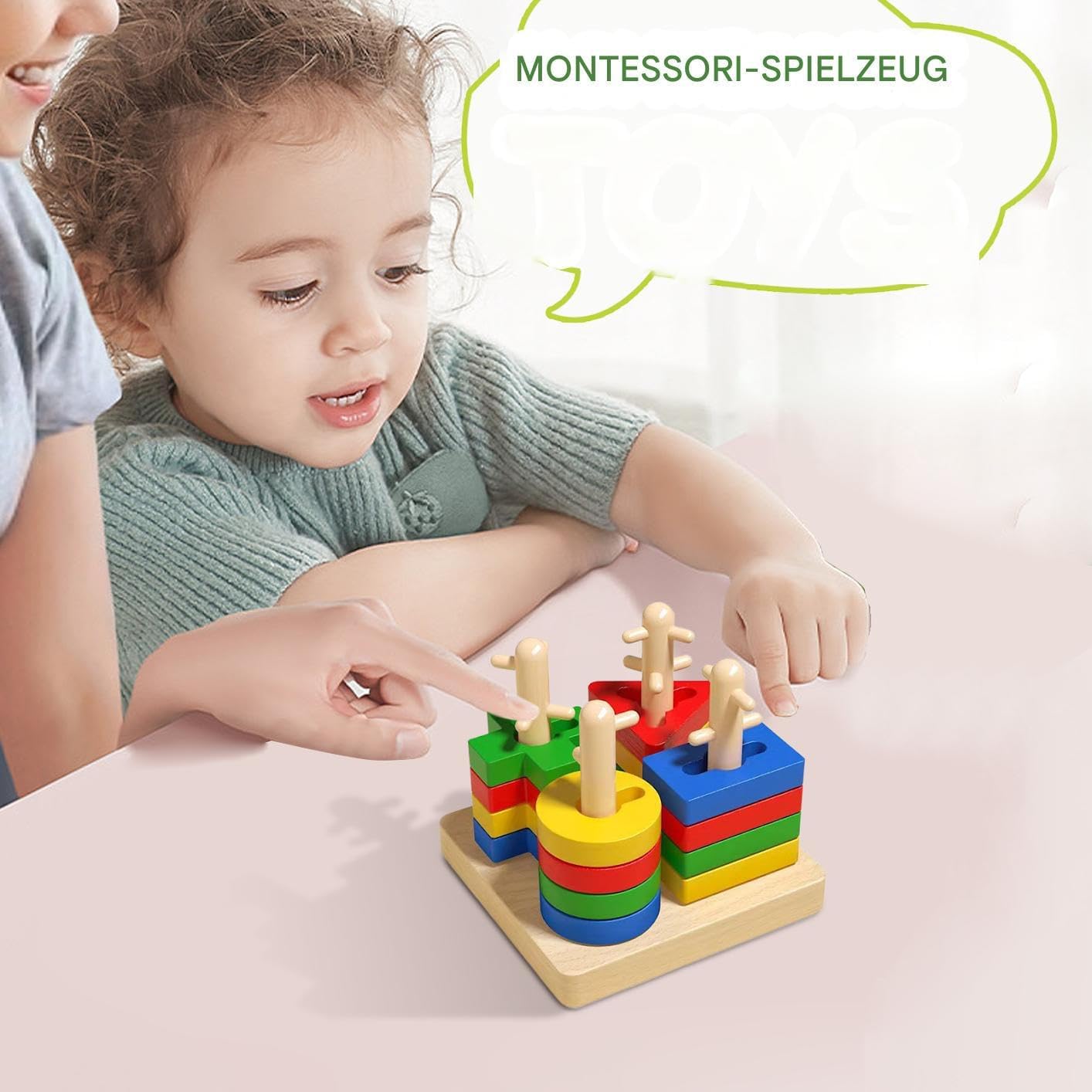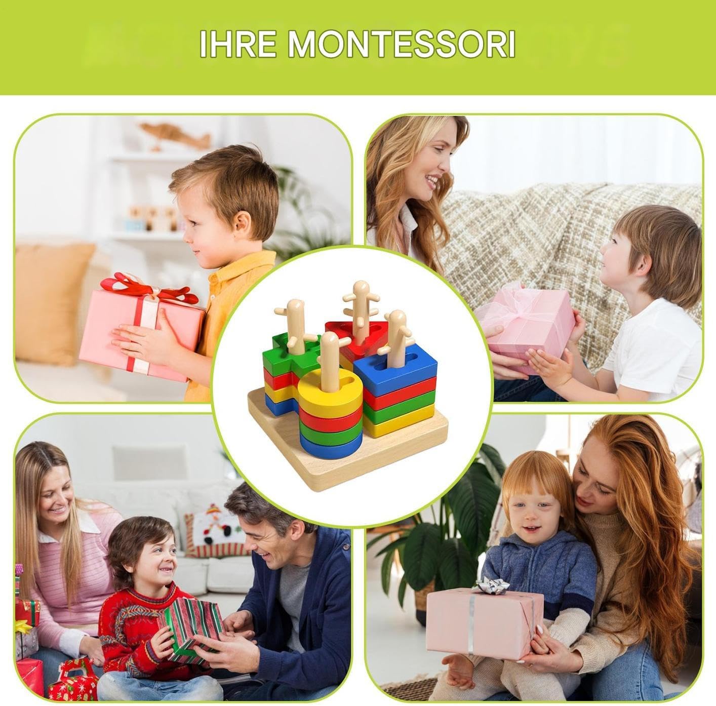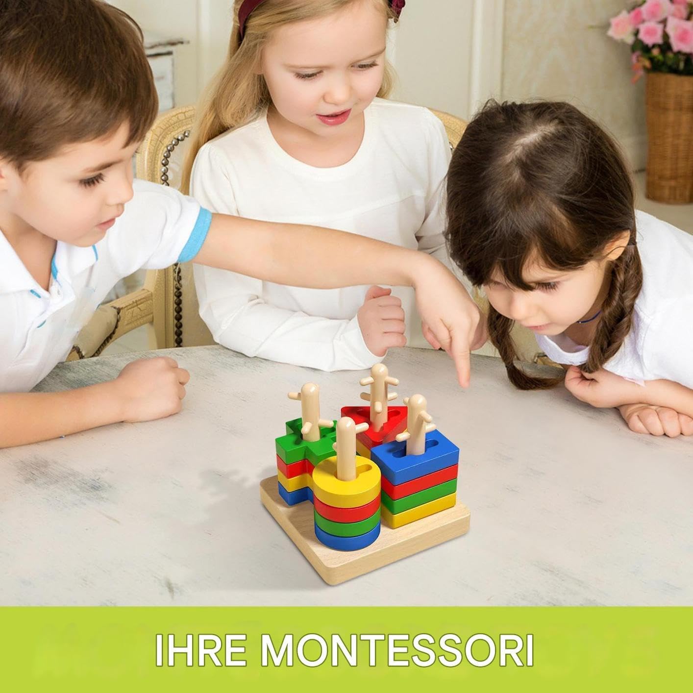 Ottimo regalo: fai il compleanno di tuo figlio, il giorno dei bambini o qualsiasi vacanza con questo giocattolo per classificare e impilare. Stimola la tua immaginazione e sviluppa le capacità cognitive giocando smistamenti di legno e impilando giocattoli Materiale resistente: questo giocattolo è realizzato in robusto e robusto materiale di legno e ABS e garantisce un gioco sicuro in quanto non ha bordi ruvidi e non ferisce le mani e offre un'esperienza sicura e piacevole con i giocattoli impilabili e classificati in legno Abilità Foster: Incoraggiare Sostieni relazioni sane: incoraggia il tempo con questo giocattolo di smistamento e impilamento, migliora l'interazione tra genitore e figlio attraverso attività divertenti, promuove un legame familiare forte e duraturo Riconoscimento della forma del colore: abilità cognitive dei bambini con i nostri giocattoli di smistamento e impilamento. I giochi corrispondenti con diversi colori e forme promuovono il riconoscimento del colore e della forma e costruiscono una solida base per l'apprendimento e l'istruzione futuri