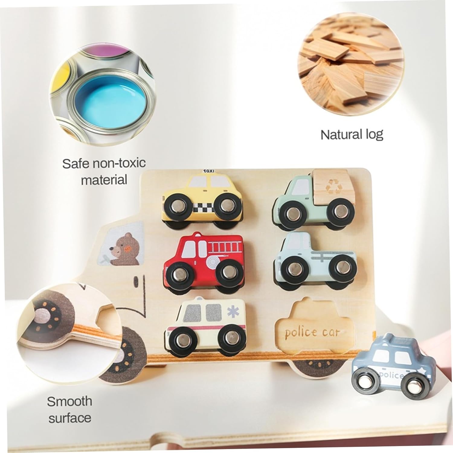 Design luminoso e attraente: con colori vibranti e forme di auto affascinanti, questo puzzle affascina ragazzi e ragazze, incoraggiando il gioco e la curiosità estesi. Scelta perfetta: ideale per compleanni, festività o occasioni speciali, questo Sorter a forma di auto in legno fa un riflesso ed educativo che supporta lo sviluppo della prima infanzia. Stimola lo sviluppo cognitivo: abbinando le forme alle slot per auto corrette, i bambini migliorano le loro capacità di risoluzione dei problemi, la consapevolezza spaziale e il pensiero logico fin dalla tenera età. Sicuro e materiali: realizzato in legno non tossico con bordi lisci, questo robusto giocattolo garantisce un tempo di gioco sicuro, che dura attraverso l'uso quotidiano energico dei bambini. Strumento di apprendimento coinvolgente: lo Stretter a forma di auto in legno combina divertimento e istruzione, aiutando i bambini a riconoscere le forme e migliorare la coordinazione occhio-mano esplorando puzzle colorati a forma di auto.