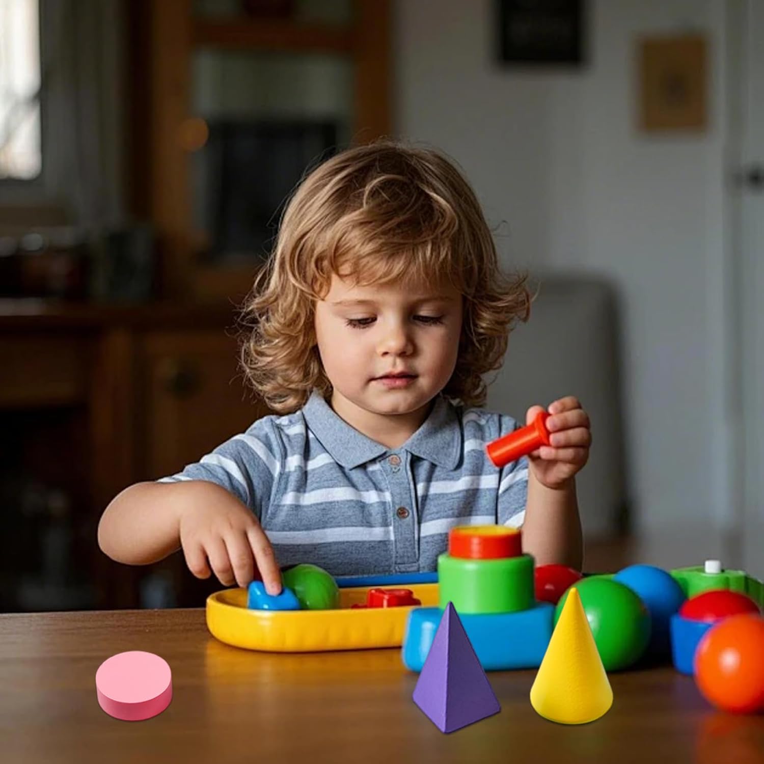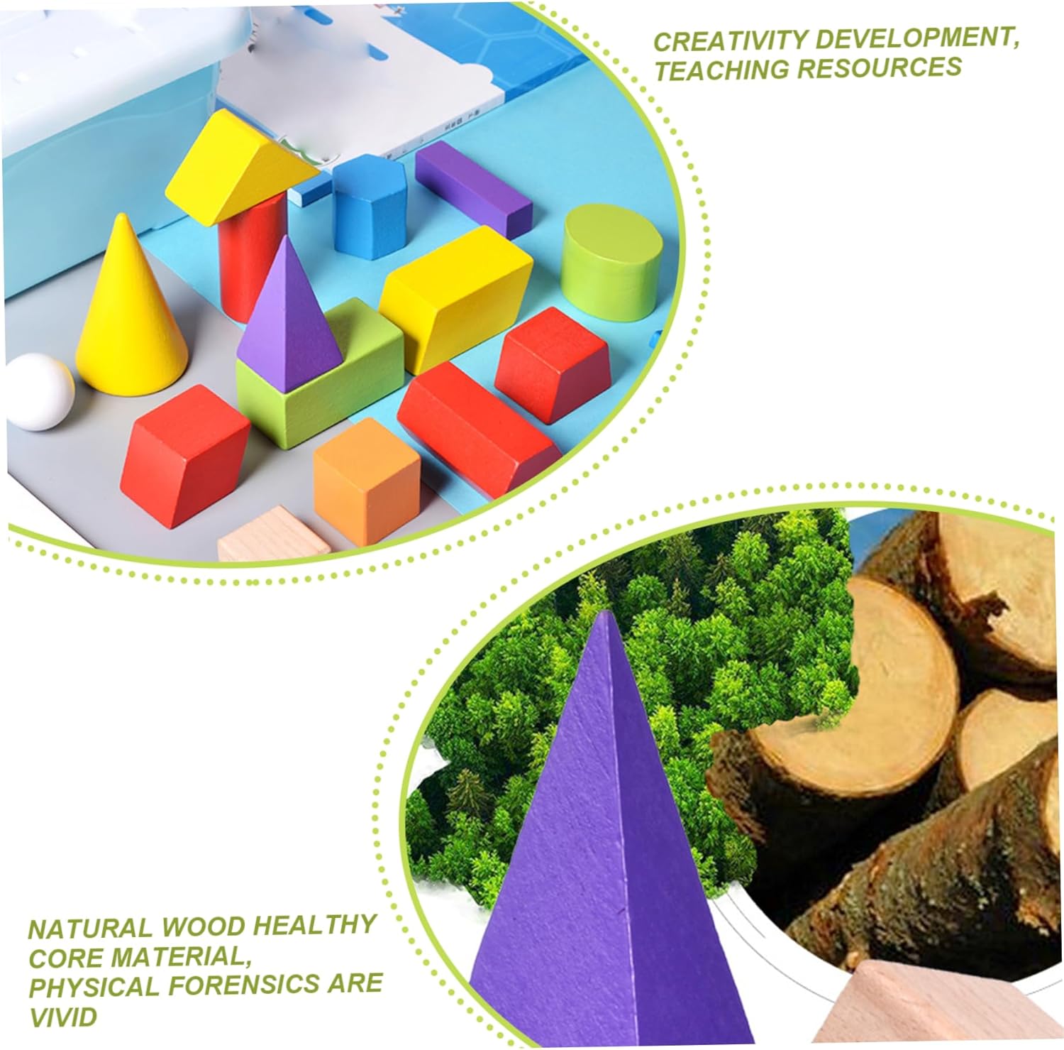 Strumento di apprendimento versatile: che tratti di lezioni di matematica o di gioco creativo, questi blocchi di legno hanno infinite possibilità..Aiutano i bambini a comprendere le forme geometriche, la consapevolezza spaziale e il riconoscimento dei modelli, il tutto divertendosi. Robusti e sicuri: realizzati in legno, questi manipolatori di forme 3D sono durevoli..I bordi lisci garantiscono sicurezza per le mani dei più piccoli, rendendoli ideali per il materiale scolastico domestico e l'uso in classe. Educativo e divertente: questi blocchi di forme geometriche in legno da 18 pezzi sono perfetti per insegnare forme 3D, rendendo l'apprendimento un'esperienza divertente e interattiva per i bambini in età prescolare..I blocchi con motivi multicolori stimolano la curiosità e la creatività dei bambini, migliorando il loro sviluppo cognitivo. Stimola la creatività: i blocchi con motivi multicolori incoraggiano il gioco fantasioso e l'espressione artistica..I bambini possono creare i propri progetti, sviluppando capacità di risoluzione dei problemi e amore per l'apprendimento fin dalla tenera età. Portatili e compatte: progettate pensando alla portabilità, queste forme 3D per l'insegnamento sono disponibili in un set compatto facile da trasportare..Perfetto per l'apprendimento in movimento o per conservare a casa o in classe.