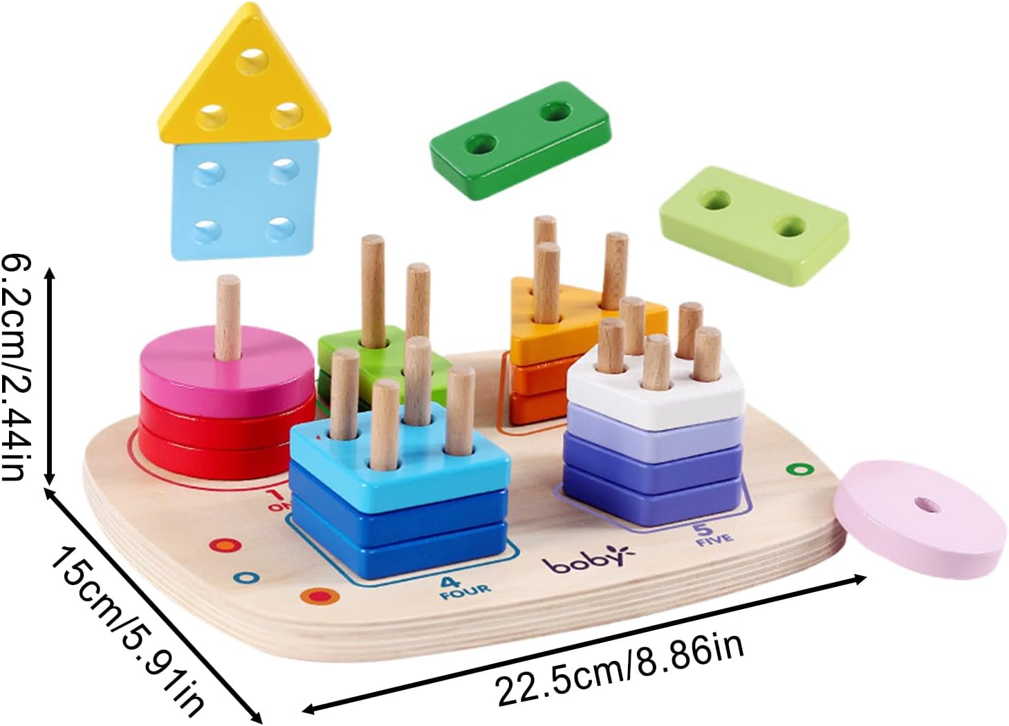 Fondamenti di geometria: questi giocattoli impilabili in legno integrano cerchi, quadrati e triangoli per insegnare ai bambini le forme di base, mentre costruiscono la consapevolezza spaziale e promuovono le abilità logiche precoci, eccellenti per il gioco creativo, l'apprendimento con giocattoli impilabili in legno e forme. Robusto legno naturale Materiale: questo giocattolo per la selezione di stampi è realizzato in robusto legno naturale e garantisce un'esperienza di gioco sicura e inodore per i bambini. Promuove lo sviluppo sensoriale durante l'ordinamento interno in un asilo nido o sala giochi. Il materiale in legno naturale è durevole e garantisce ore di divertimento senza odori sgradevoli. Ideale per lo sviluppo precoce del bambino e l'uso in diversi ambienti di apprendimento. Stimola le capacità motorie: il giocattolo per la selezione degli stampi in legno migliora le capacità motorie dei bambini piccoli stimolandoli a afferrare e posizionare i mattoncini sul palo corretto. Questa giocosità rafforza la coordinazione occhio-mano e supporta lo sviluppo della prima infanzia in un ambiente di apprendimento divertente, che promuove in modo sostenibile le capacità motorie e favorisce lo sviluppo attraverso l'apprendimento divertente. Aumenta la creatività: questo puzzle impilabile in legno è uno strumento di promozione precoce per bambini dai 3 anni in su, che nutre la creatività e il pensiero critico, mentre suscita l'interesse per i colori attraverso il gioco pratico e rende piacevole l'apprendimento. Supporta lo sviluppo di abilità importanti in un ambiente divertente e adatto ai bambini e stimola ore di gioco educativo. Ampia applicabilità: questi giocattoli educativi in legno si sviluppano con il bambino e promuovono l'apprendimento sostenibile e lo sviluppo continuo delle abilità attraverso il gioco stimolante. Sono ideali per l'uso in ambienti domestici, aule e giochi di gruppo in asili nido, dove sostengono lo sviluppo del bambino e favoriscono l'interazione sociale nei gruppi di gioco attraverso attività motivazionali.