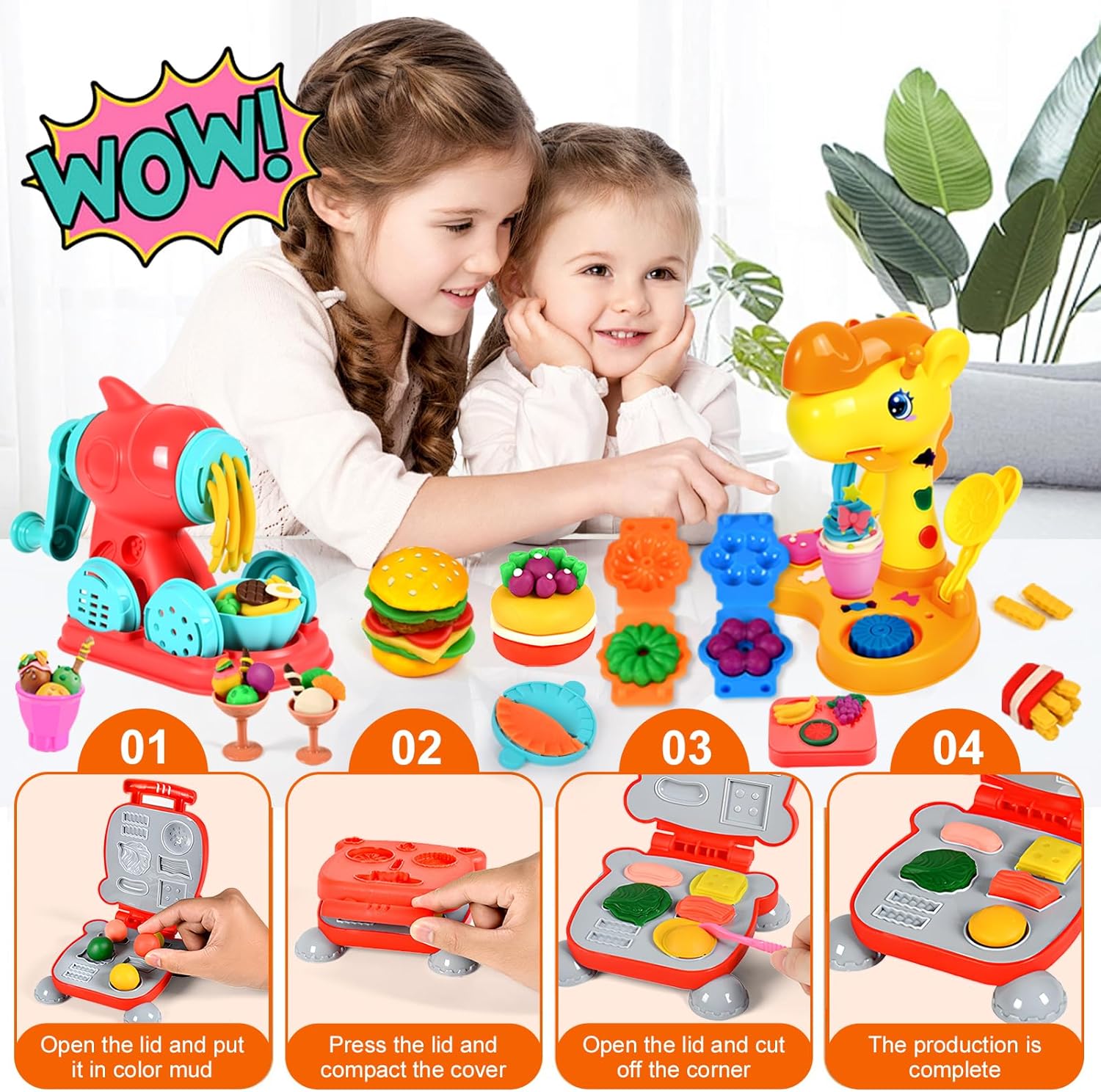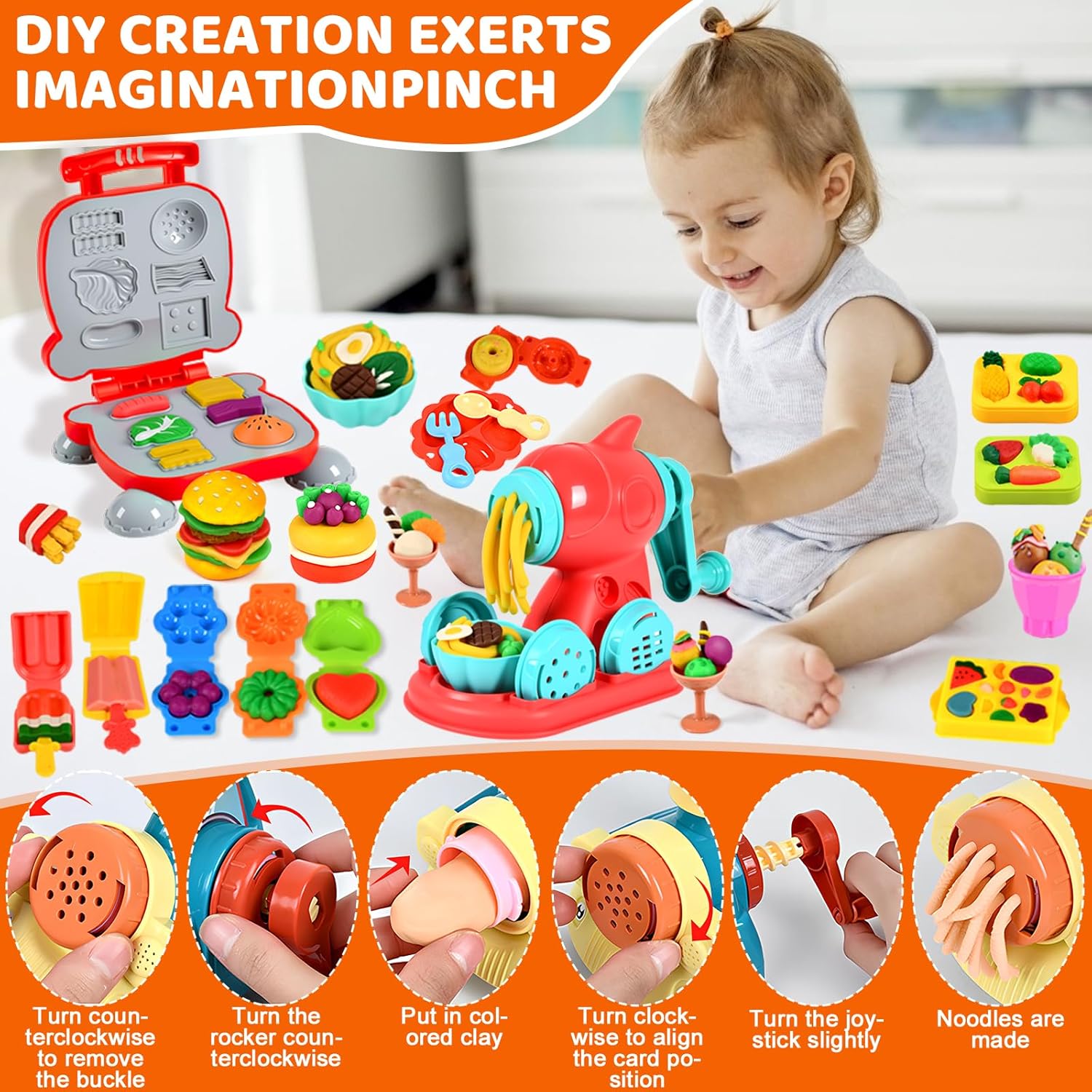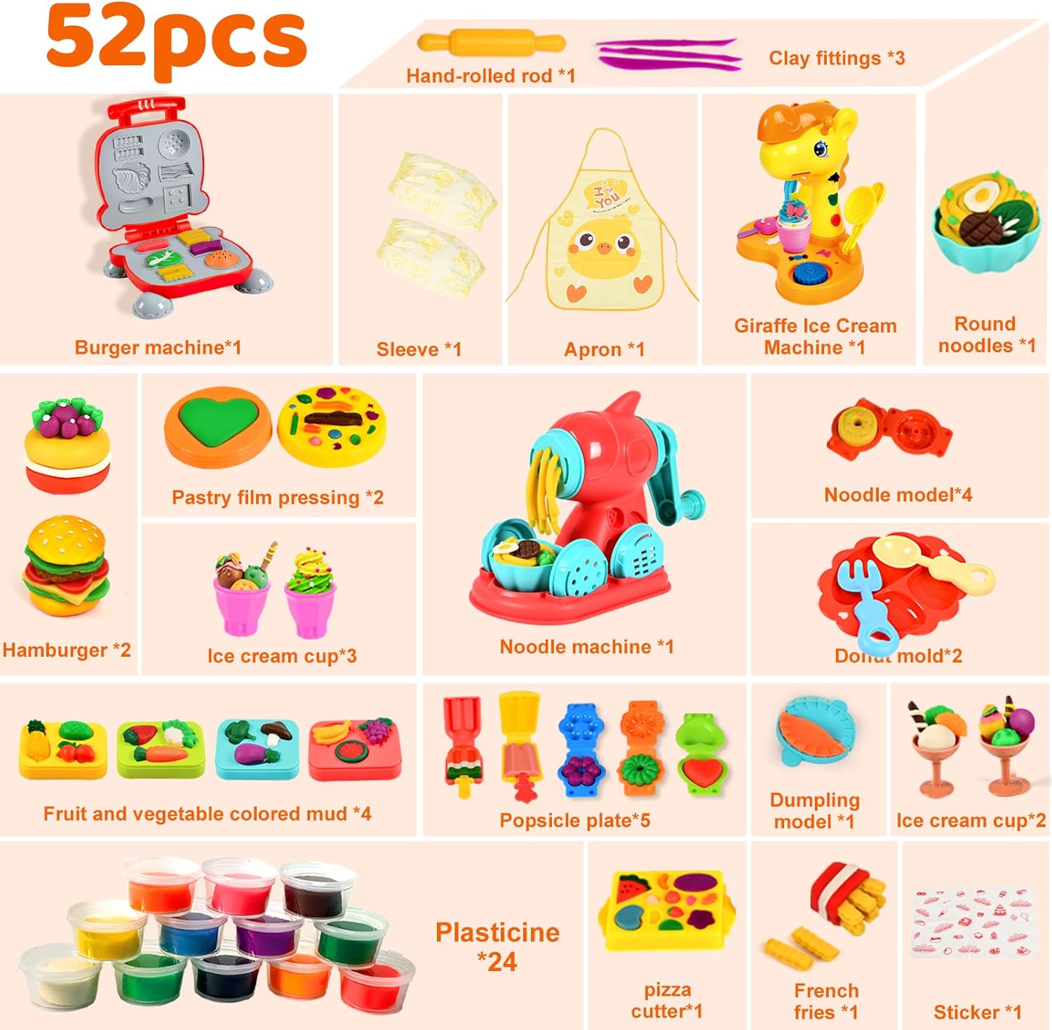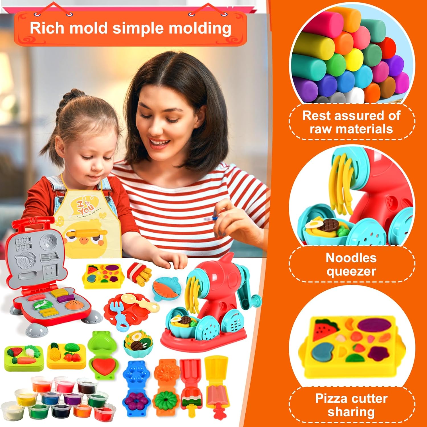 🍰【Set di pasta modellabile per bambini】 - Questo set di pasta modellabile per bambini include 12 barattoli di pasta modellabile, una macchina per la pasta, una macchina per hamburger, una gelatiera, un grembiule giallo e utensili per la pasta modellabile come un tagliapasta, un mattarello, un cutter, un estrusore, forbici per pasta modellabile e una rotella tagliapasta. Questo set di accessori per pasta modellabile da 52 pezzi include 12 barattoli di pasta modellabile, un set completo per pasta modellabile; non è necessario acquistare accessori aggiuntivi. 🧁【Stampi per pasta modellabile】 - Gli utensili per la pasta modellabile sono colorati, hanno una varietà di forme e sono perfetti per le manine dei più piccoli. Modella facilmente la pasta in qualsiasi forma. Offrono strumenti per tagliare, modellare, pressare, modellare e arrotolare per i bambini, realizzando infinite creazioni a casa o a scuola. Le creazioni fai da te sono possibili per tutto, dalla frutta e verdura ai dessert, ai noodles, agli hamburger e al gelato. ✅【Alta qualità】 - Ogni accessorio per pasta modellabile è realizzato in plastica sicura e di alta qualità, molto robusta, colorata e atossica. Il modello è realizzato in farina di grano commestibile, non è unto, non è appiccicoso e può essere utilizzato ripetutamente, rendendolo sicuro al 100%. Conservare la pasta modellabile nella scatola inclusa dopo l'uso. Se si teme che la pasta modellabile si asciughi, aggiungere acqua per renderla più morbida. 🍧【Migliora la creatività】 - Macchina per pasta modellabile: basta versare la pasta modellabile e girare la manovella per preparare i noodles ramen! I bambini hanno a disposizione strumenti per tagliare, modellare, stirare, modellare e arrotolare per creare varie creazioni creative. Questo processo non solo sviluppa le capacità pratiche dei bambini, ma stimola anche la loro immaginazione e creatività. 🎁【Regalo perfetto】 - Questo giocattolo regalo è disponibile in una squisita confezione regalo, che sviluppa le capacità pratiche dei bambini. Adatto come regalo di compleanno, regalo di Natale, Halloween, feste, festival e scuola. Perfetto per i bambini che amano giocare a fare gli chef e dare sfogo alla loro creatività con gli strumenti di argilla. La varietà è ricca e colorata, stimolando l'immaginazione e la creatività di innumerevoli bambini.