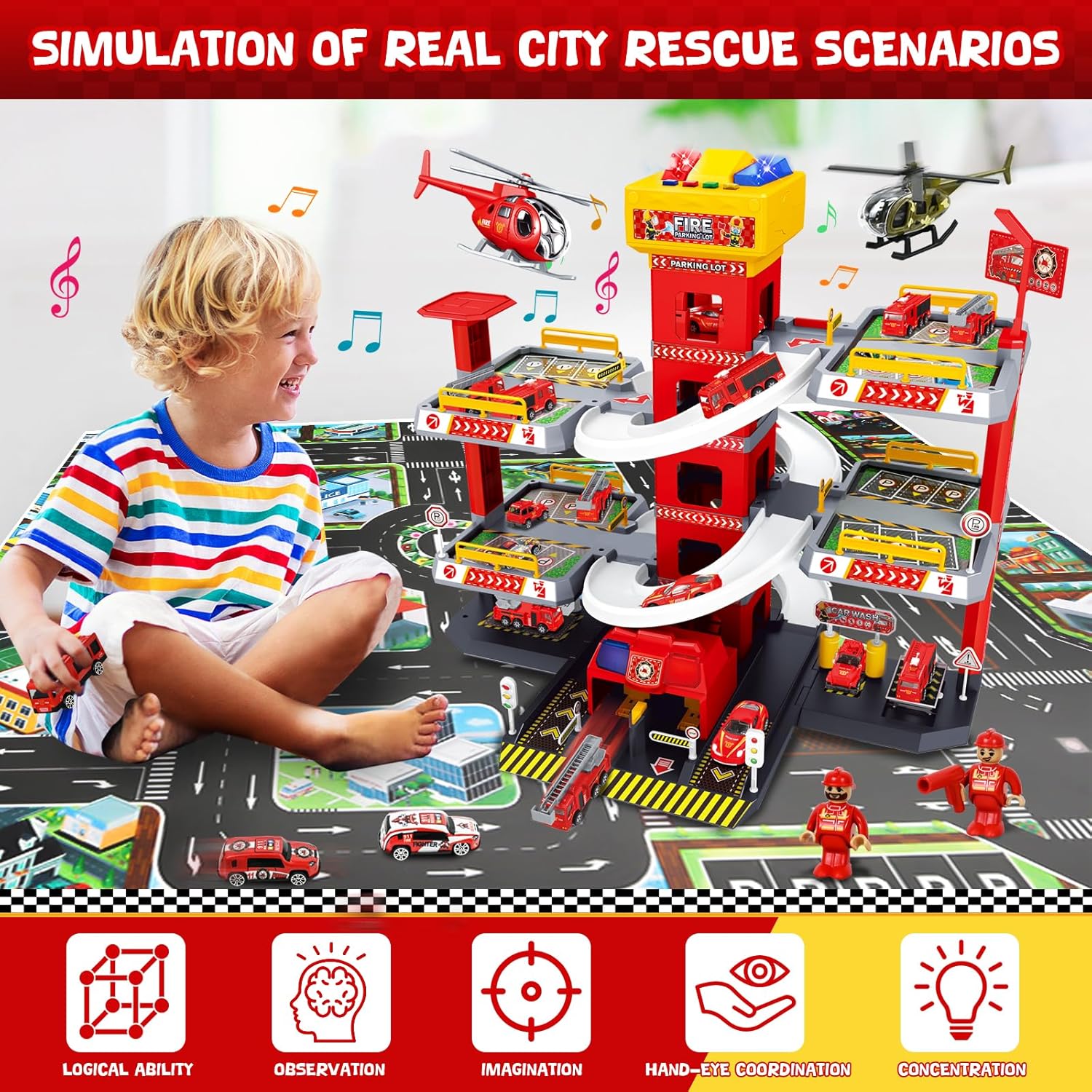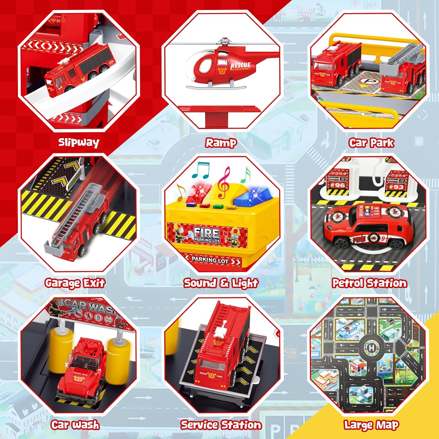 🚒🚒【Set per Parcheggio di Grandi Dimensioni】Il set comprende un parcheggio a 5 piani, 8 macchinine, 3 elicotteri, 6 minifigure, 18 segnali stradali, 6 adesivi e 1 grande mappa. I bambini possono usare la loro creatività per progettare scenari diversi ed esplorare una varietà di modi di giocare. 🅿️🅿️【Giochi Educativi per il Parcheggio】Il parcheggio è dotato di una pista da corsa, un ascensore, una stazione di servizio, un'area per l'autolavaggio e un'elisuperficie; I bambini possono gestire il loro parcheggio con saggezza grazie al garage e all'ascensore. Questo gioco migliorerà la loro immaginazione e le loro abilità pratiche, sviluppando allo stesso tempo le loro capacità di vita. Il set di parcheggi è corredato di istruzioni per il montaggio. 🚓🚓【Rodeo su Pista】Questo bellissimo parcheggio giocattolo è dotato di piste e macchinine per attivare le abilità di guida e le competenze meccaniche dei bambini. Scegliete il vostro veicolo preferito e fate una gara di inseguimento tesa ed emozionante con i vostri amici, giocando insieme in un'emozionante partita di inseguimento per promuovere il legame e lo spirito di squadra. 🅿️🅿️【Sicuro e di alta Qualità】Realizzati in materiale composito di alta qualità, la superficie degli accessori per il parcheggio è liscia e priva di spine, con connessioni fluide; Ogni elemento del set è stato accuratamente progettato per garantire sicurezza e durata. Il design esterno colorato e la decorazione con adesivi attirano gli occhi dei bambini e li fanno divertire a non finire. 🚁🚁【Regalo Perfetto】Una volta installato, l'edificio del parcheggio può essere posizionato sul tappetino per espandere la scena e proteggere il terreno. I bambini pensano a gestire il parcheggio stando lontani dallo schermo, una buona alternativa all'elettronica. Ideale per il Natale, la festa dei bambini e il compleanno dei bambini di 5, 6, 7, 8, 9 e 10 anni!