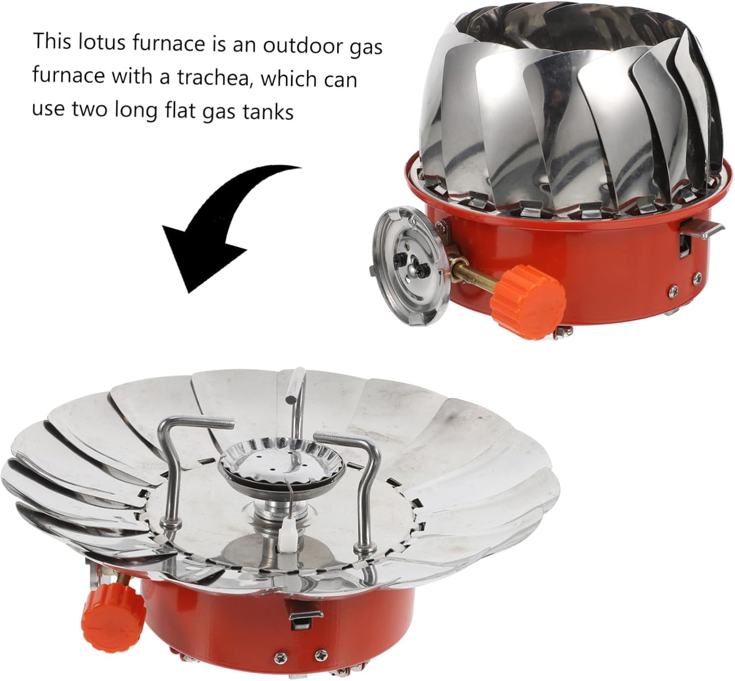 Forno lotus: design del bruciatore alta qualità, materiali selezionati, durevole e potente, cottura i tipi pentole, estremità del forno Stufa a gas - design a forma per protezione vento e risparmio energetico, estremità della fornace Stufa antivento: questa fornace a forma è fornace a gas per esterni con trachea, può utilizzare due lunghi serbatoi gas piatti, estremità della fornace Fornello : fornello a con trachea, facile collegare al serbatoio del gas e facile usare, risparmiando e , estremità del forno Estremità della fornace: adatta per picnic, barbecue, alpinismo, , all'aperto, ecc., fornace
