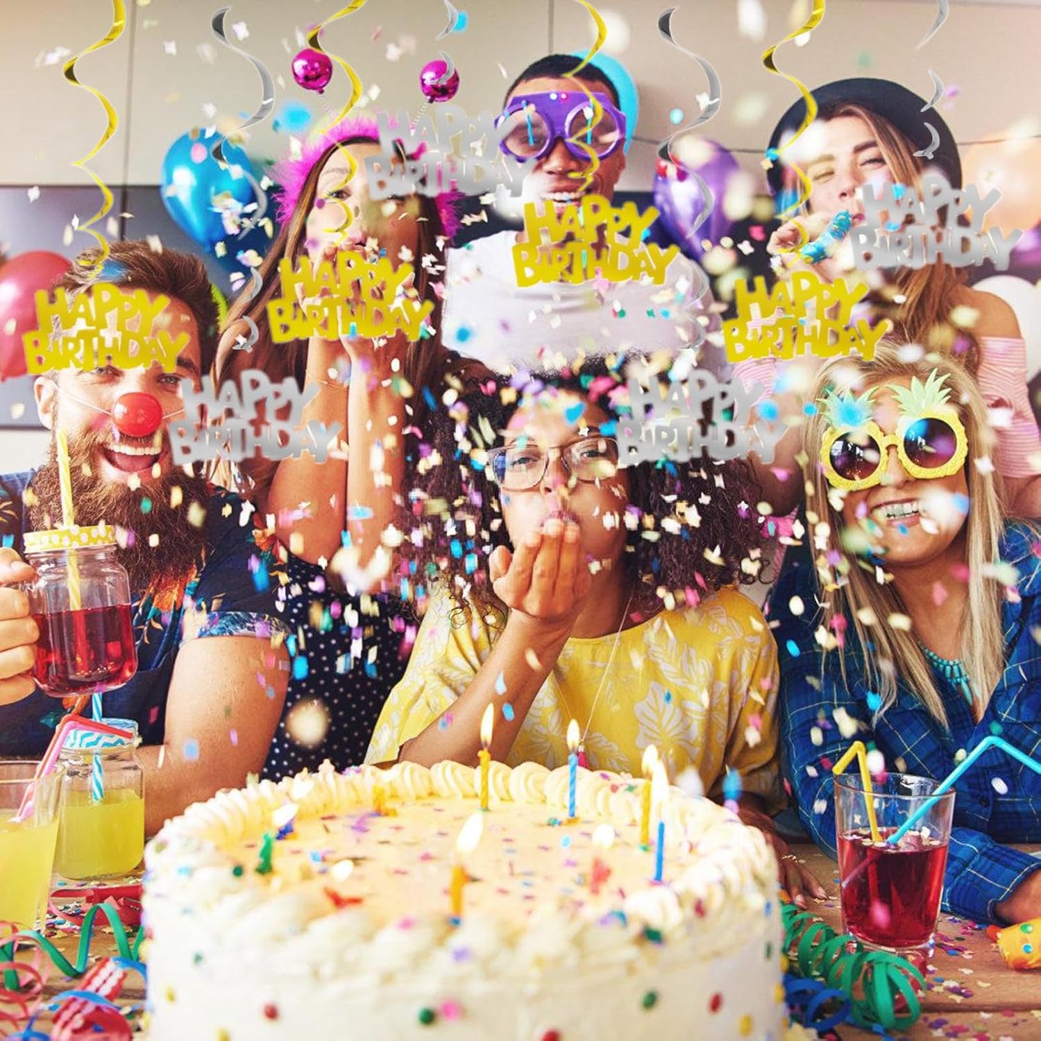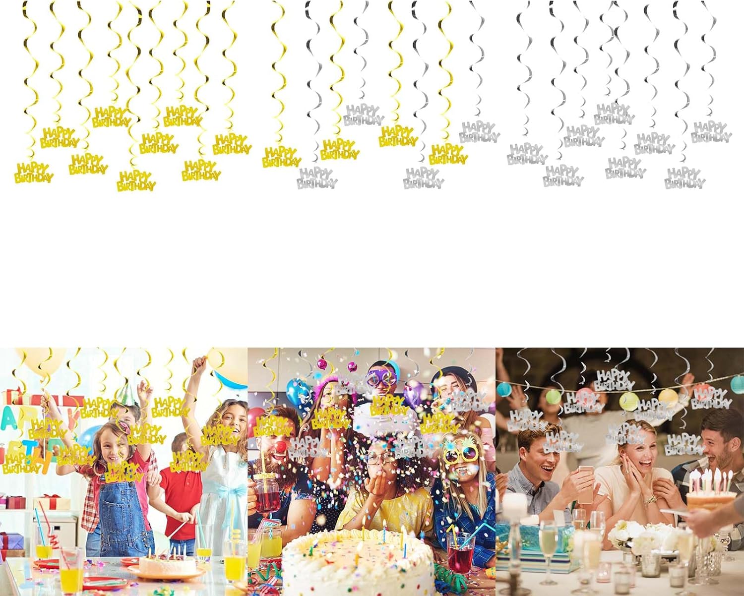 Adatto a persone tutte le età, in particolare a coloro che amano festeggiare i compleanni Potrebbe essere utilizzato per feste compleanno, riunioni famiglia, matrimoni, celebrazione del festival e altre occasioni per aggiungere un ambiente soddisfatto alla scena Realizzato con materiali metallici, robusti e non facilmente arrugginiti; Semplice e facile da installare, con la possibilità regolare liberamente la posizione e la forma delle decorazioni sospese; I disegni a spirale unici aggiungono un effetto decorativo Delicate Spirals Shape Ciondolo con carta forma buon compleanno, adatto per decorare feste compleanno Crea un ambiente con queste forniture feste facili da installare che promettono impressionare i tuoi ospiti e rendere la tua occasione speciale un successo missione