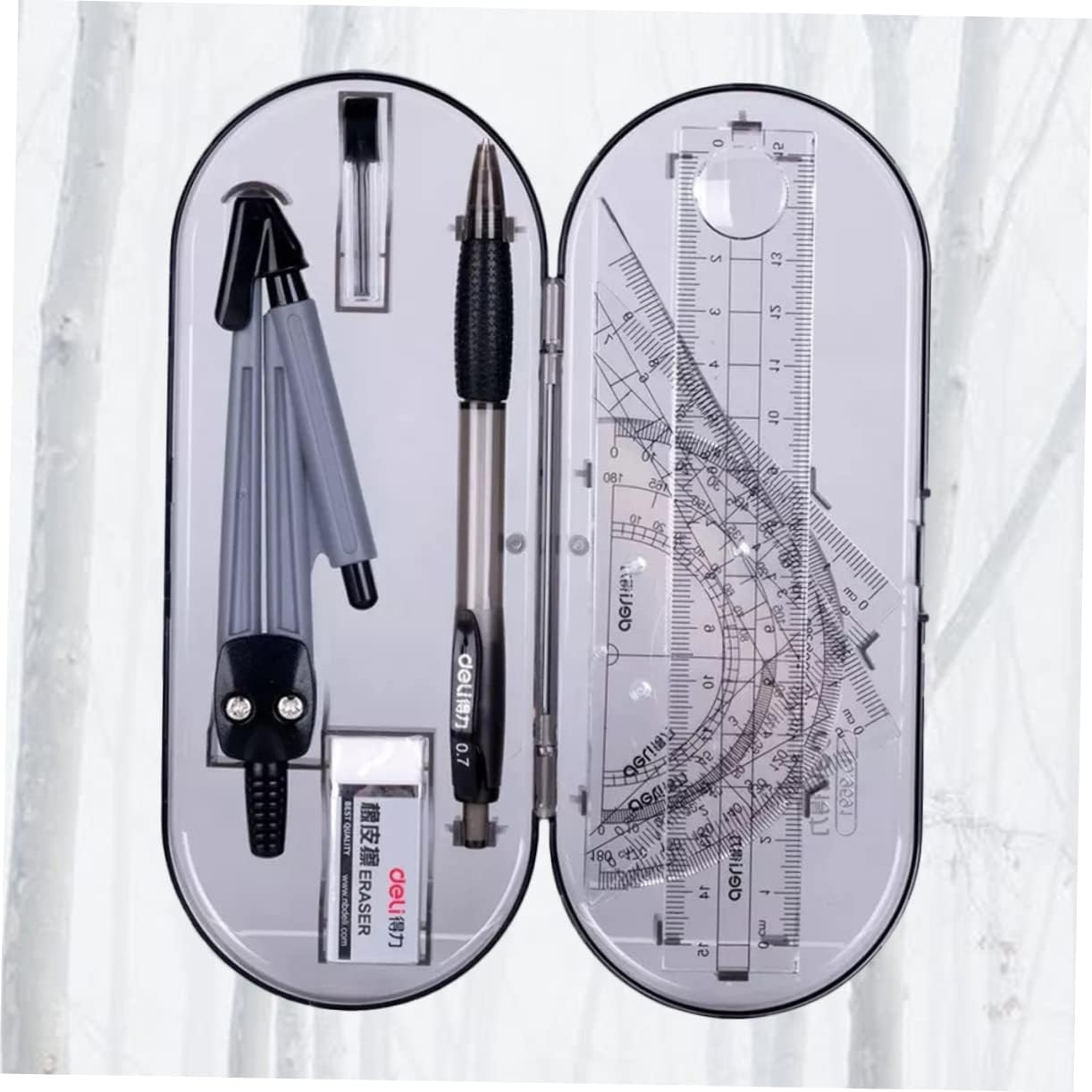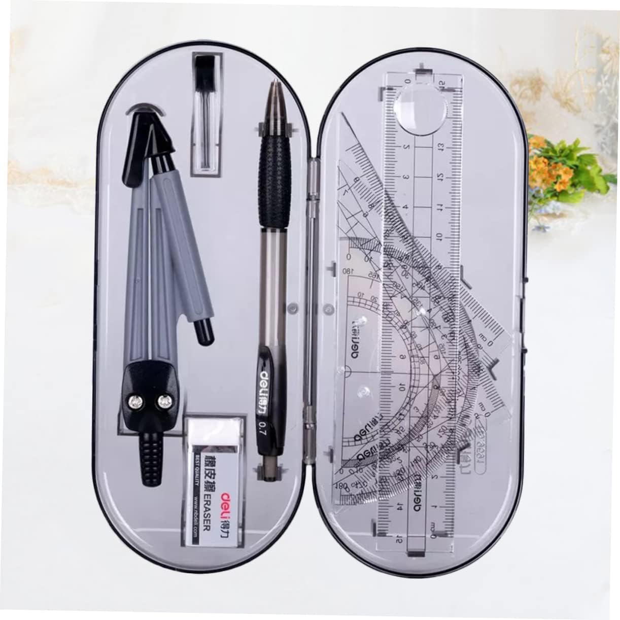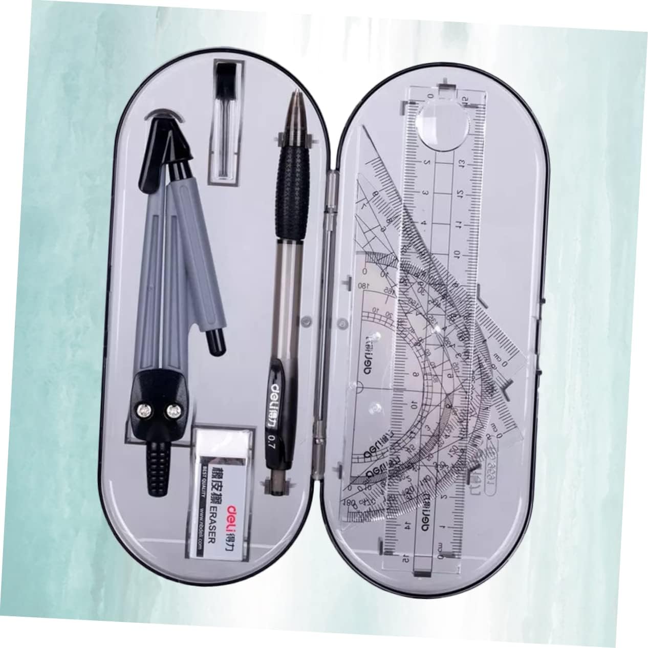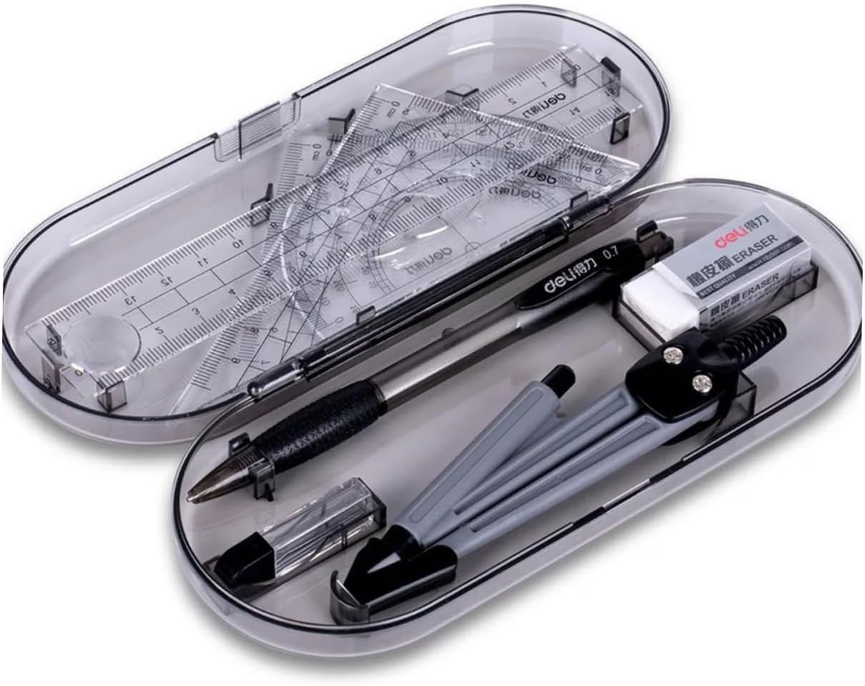 Bussole: realizzate in materiale per un lungo periodo e uso, righello triangolare Righello triangolare: una buona scelta per gli studenti, a loro piacerà molto, compasso Kit da disegno: è leggero per un facile trasporto e conservazione, righello triangolare Righello dritto: adatto a scuola, ufficio, studenti, insegnanti, righello triangolare Un buon strumento per eseguire lavori di disegno, ti offre molta comodità