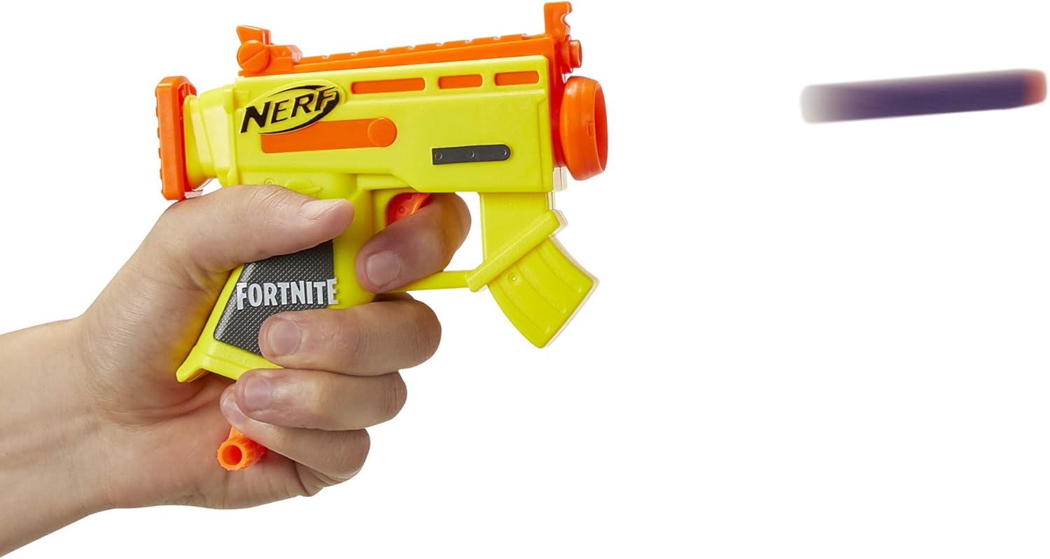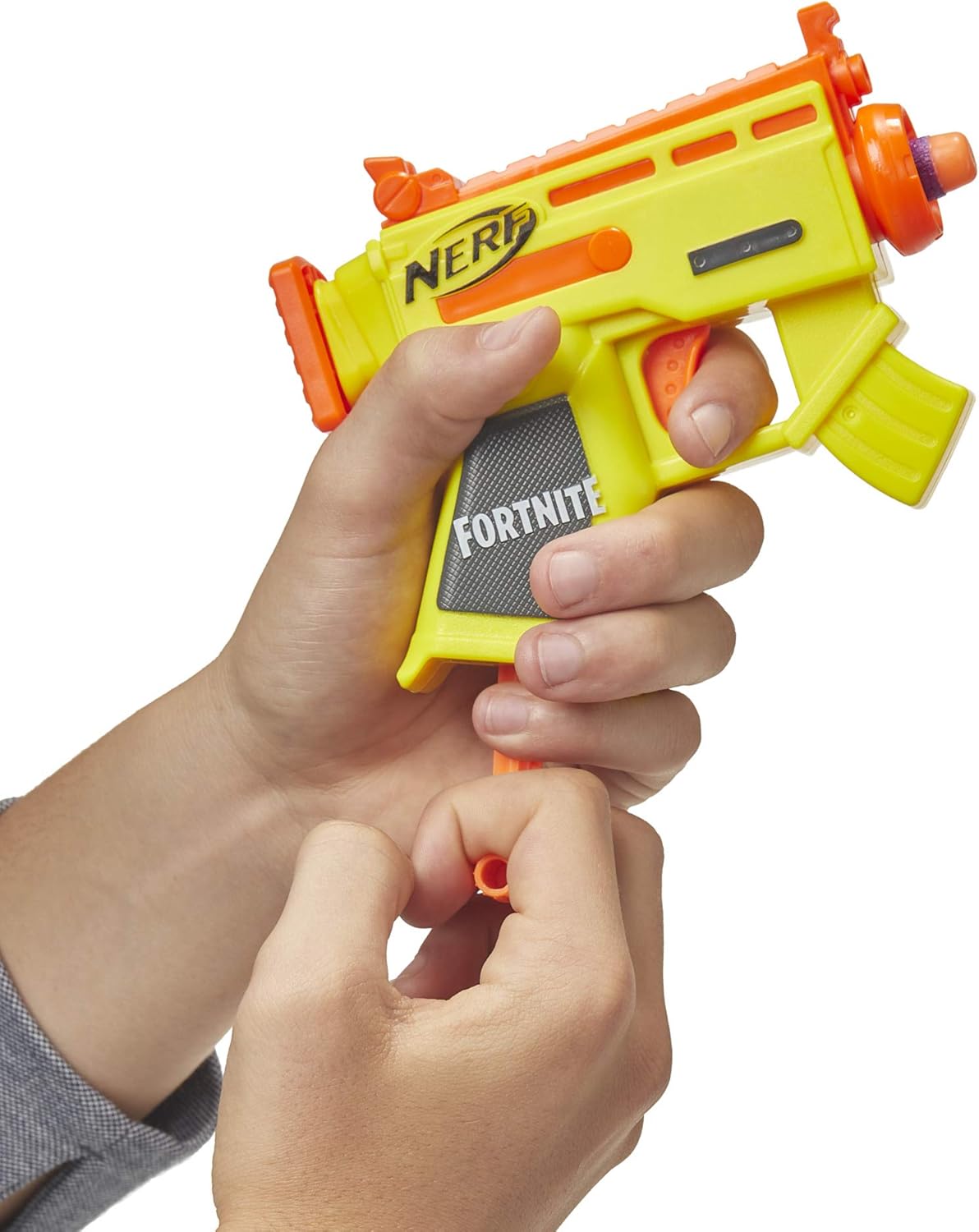 FORTNITE MICRO AR-L DART-FIRING BLASTER: il giocattolo blaster mini Nerf MicroShots si ispira al blaster utilizzato nel popolare videogioco Fortnite Battle Royale Stile graffiato: i blaster Nerf MicroShots da collezione catturano l'aspetto dei blaster originali ma in uno stile scrunched-down tutto loro Include 2 freccette e fuochi 1 freccette alla volta: questo blaster a colpo singolo viene fornito con 2 freccette ufficiali Nerf Elite, spara 1 dardo alla volta ed è alimentato a mano (non sono necessarie batterie) PARTE DELLA SERIE MICROSHOTS COLLETTIBILE: Il blaster fa parte della serie MicroShot di blaster da collezione e micro-dimensioni