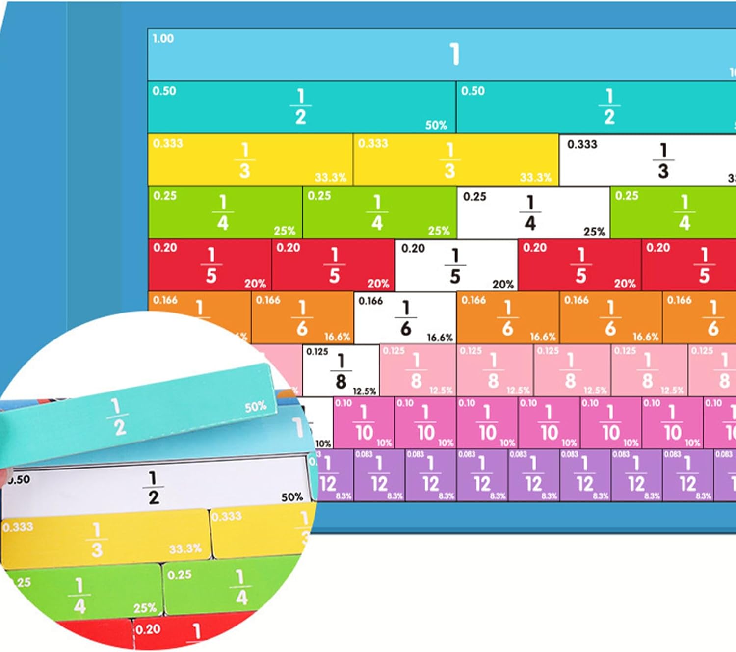 Aiuto dinamico in classe: il puzzle magnetico per imparare a fraction, grazie al suo avanzato sistema magnetico offre una presa sicura delle parti per lezioni ininterrotte, aiuta gli educatori in ore di rottura chiare e coinvolgenti attraverso presentazioni dinamiche in classe Accattivante aiuto per l'apprendimento: con puzzle circolari e a forma di bastone, questo libro magnetico per calcoli di rottura mostra concetti complessi facilmente. Stimola l'immaginazione spaziale e supporta l'apprendimento creativo del matelio negli ambienti educativi. Materiale didattico completo: dotato di 102 moduli frazionari magnetici e schede di pratica bilaterali, questo libro dimostrativo consente di esplorare dinamicamente le connessioni matematiche per insegnanti e studenti durante le lezioni. Strumento di apprendimento portatile: il design pieghevole tipo libro consente un facile cambio di scenario e diverse modalità di apprendimento, mentre la forma salvaspazio facilita il trasporto nello zaino scolastico - perfetto per esercizi matematici interni o all'aperto Prestazioni costanti: la combinazione di piastrelle magnetiche Fraction Tile e superfici laminate PET garantisce l'idoneità per l'uso regolare in aula o a casa, in quanto sono resistenti all'usura e permettono ripetuti passaggi senza, con blocchi di colore vivaci per aumentare l'attenzione e l'impegno durante le attività di apprendimento pratico