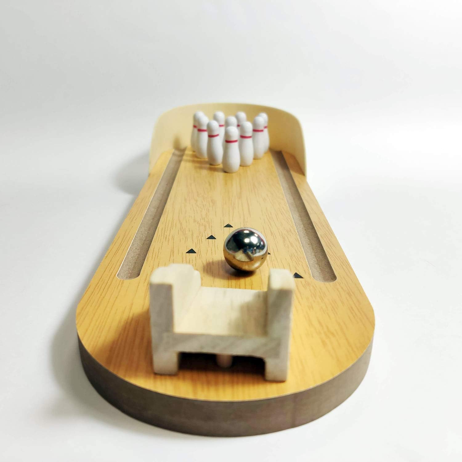 Framan Mini Gioco da Bowling in Legno con Canali Laterali Gioco da Tavolo Include 9 Pista da Bowling e Palla di Metallo Ideale per Bambini o Adulti