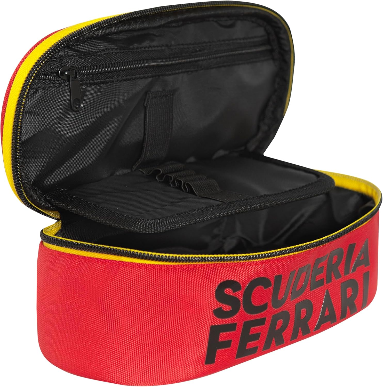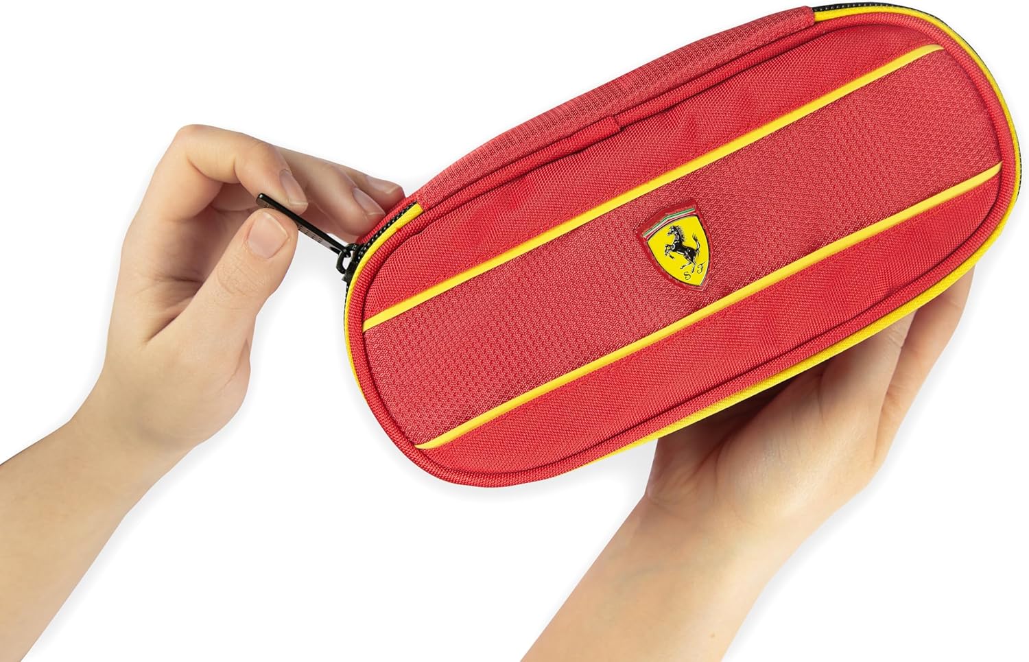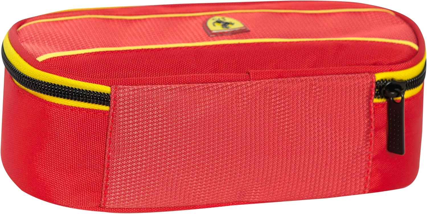 L'astuccio ovale Ferrari è l'accessorio perfetto per i bambini e i ragazzi che desiderano organizzare la loro cancelleria in modo pratico e funzionale. Grazie alle sue dimensioni 22 x 7H x 9,5 cm, questo astuccio è ideale per riporre penne, matite, gomme e altri articoli essenziali per la scuola. Realizzato con materiali di alta qualità, garantisce resistenza e durata nel tempo. Con il suo design accattivante, l'astuccio ovale Ferrari è adatto sia per le bambine che per i bambini. Grazie alla sua capacità di adattarsi alle esigenze degli studenti delle scuole medie, questo astuccio è perfetto per le ragazze ed i ragazzi che vogliono portare con sé tutto il necessario per le lezioni. Porta con te questo astuccio Ferrari ed affronta le tue giornate scolastiche con stile e particità!