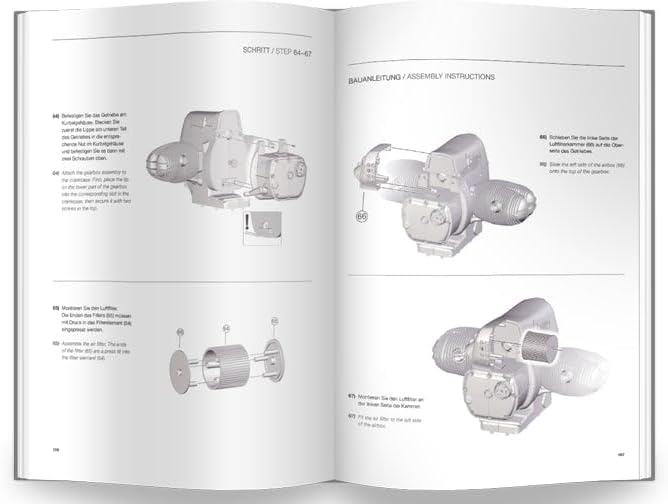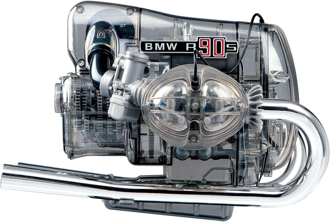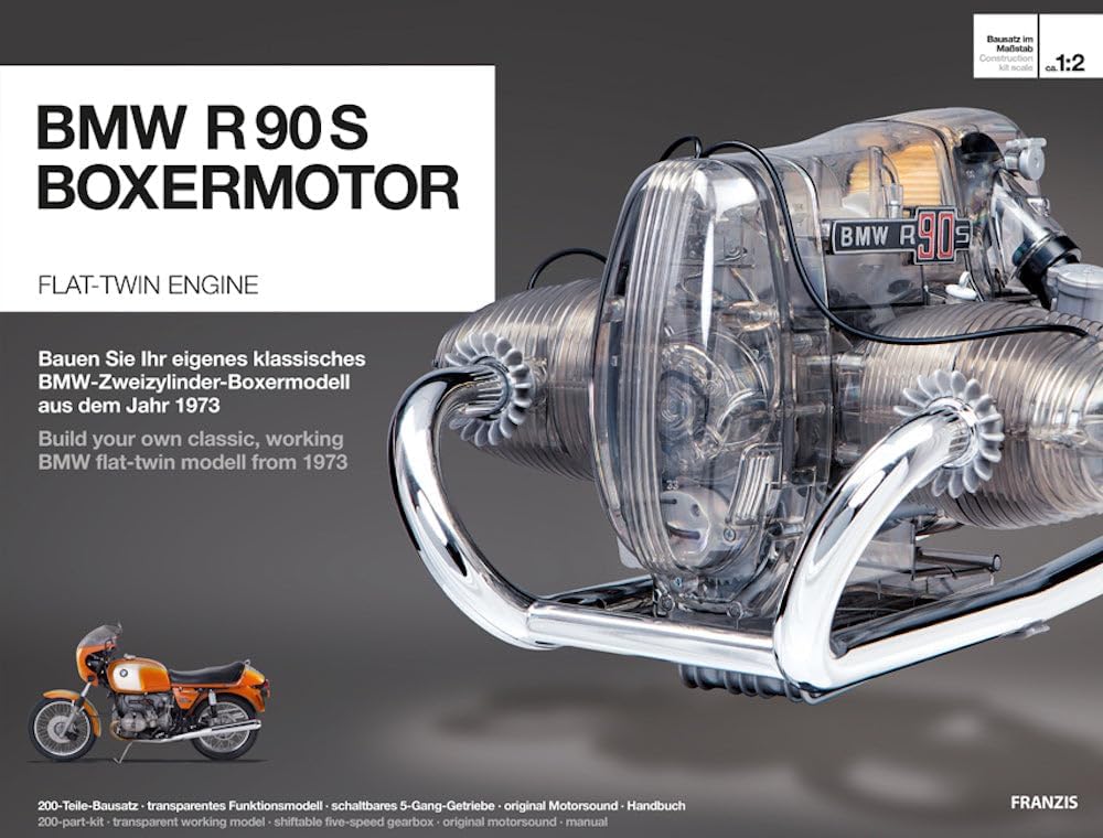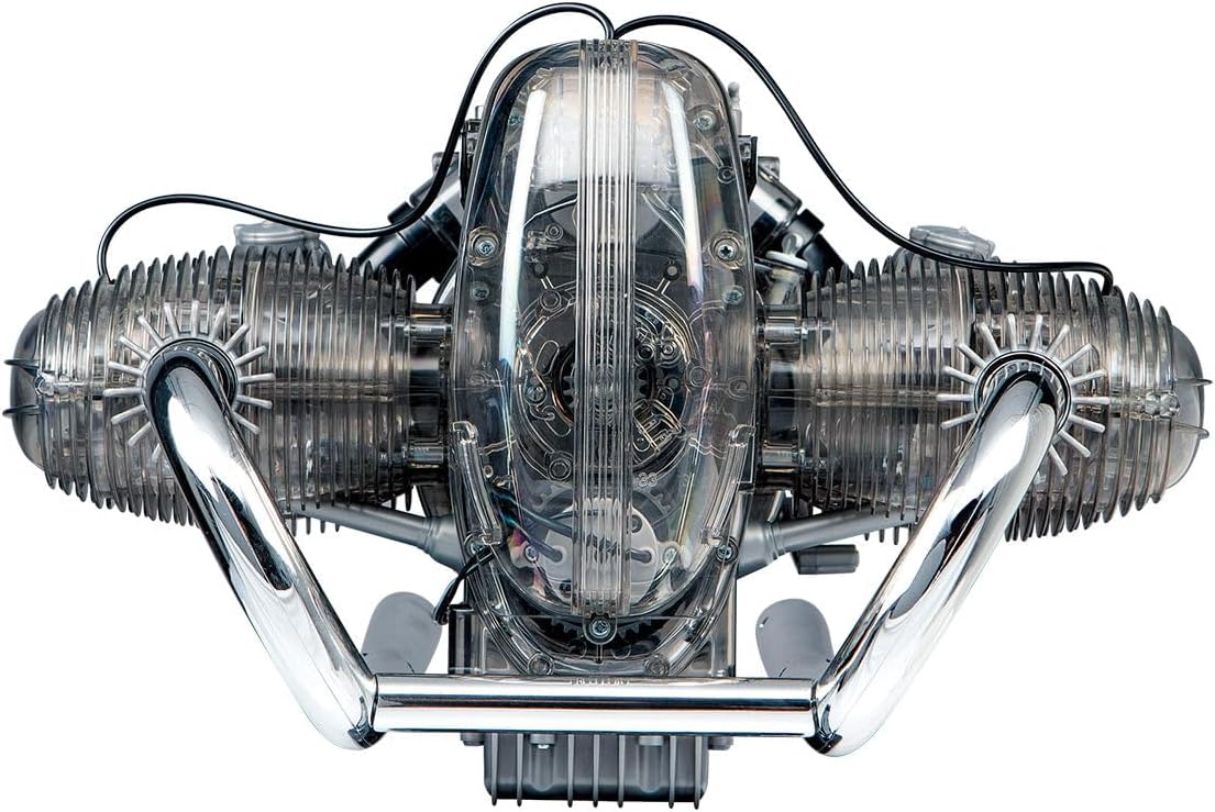 PRODOTTO UFFICIALE CON LICENZA BMW: modello funzionale trasparente del motore boxer a 2 cilindri del 1973, scala 1:2, ca. Dimensioni 34 x 25,5 x 31 cm. MODELLO FUNZIONALE FEDELNO ALL'ORIGINALE: il kit di alta qualità con 200 componenti in plastica da avvitare e collegare garantisce una piacevole esperienza di costruzione del modello - montaggio in ca. 3 ore, completo senza incollare DETTAGLI BELLISSIMI: blocco motore trasparente con cambio a 5 marce commutabile per uno sguardo emozionante all'interno - albero motore, pistoni e cilindri si muovono in dettaglio, i LED simulano le scintille di accensione EFFETTI IMPRESSIONANTI: modulo audio integrato con suono originale del motore fa rivivere il modello del motore premendo un pulsante, design dettagliato con astina di livello olio rimovibile ed elementi mobili ACCESSORI ESCLUSIVI: istruzioni dettagliate e manuale completo ed esclusivo con molte informazioni interessanti sulla storia della BMW motocicletta, motore e tecnologia, podio con etichetta etichettata per l'allestimento
