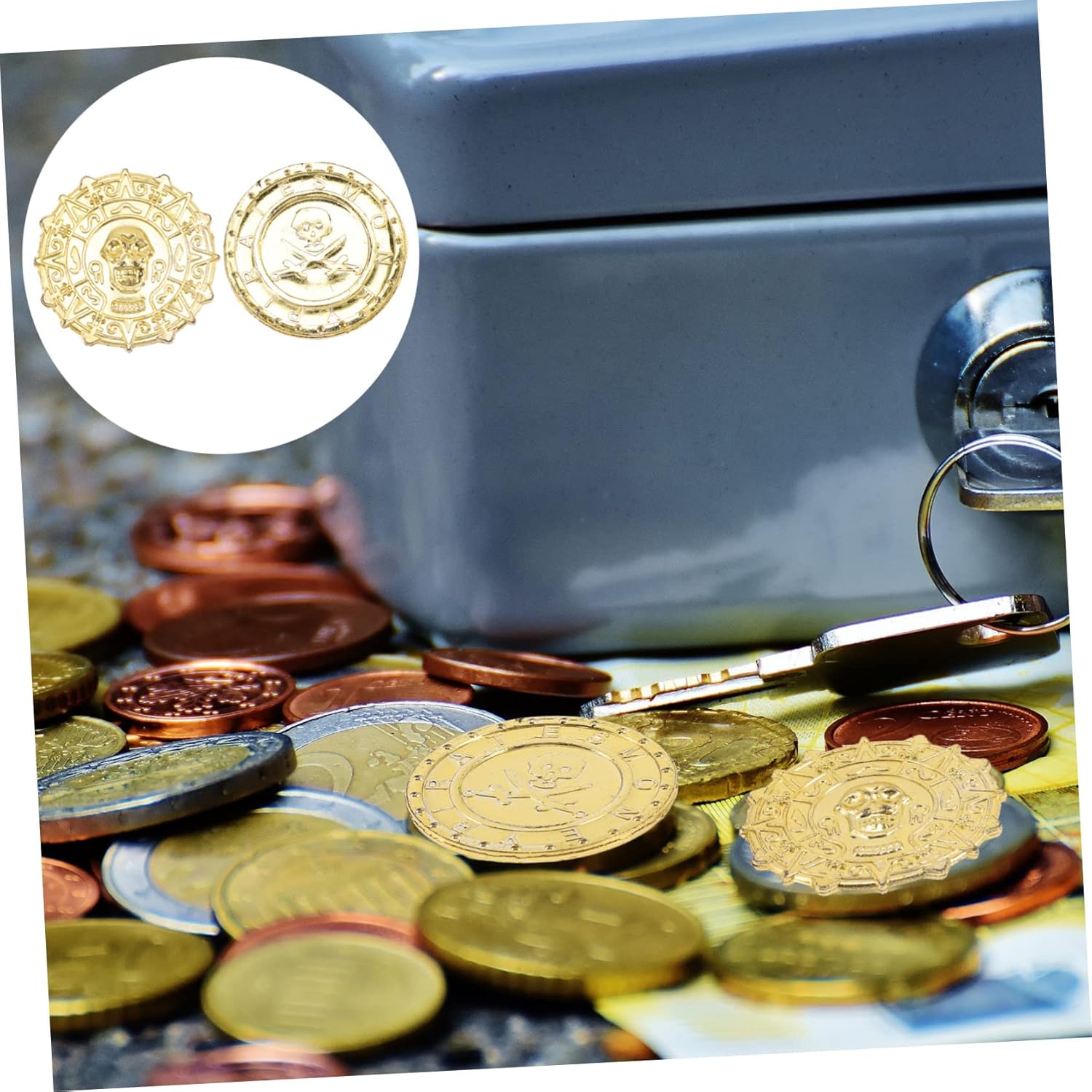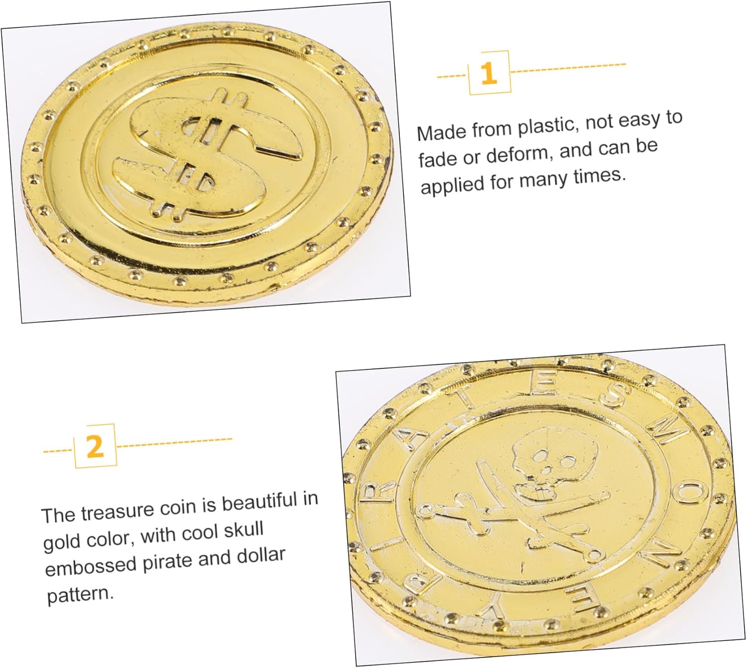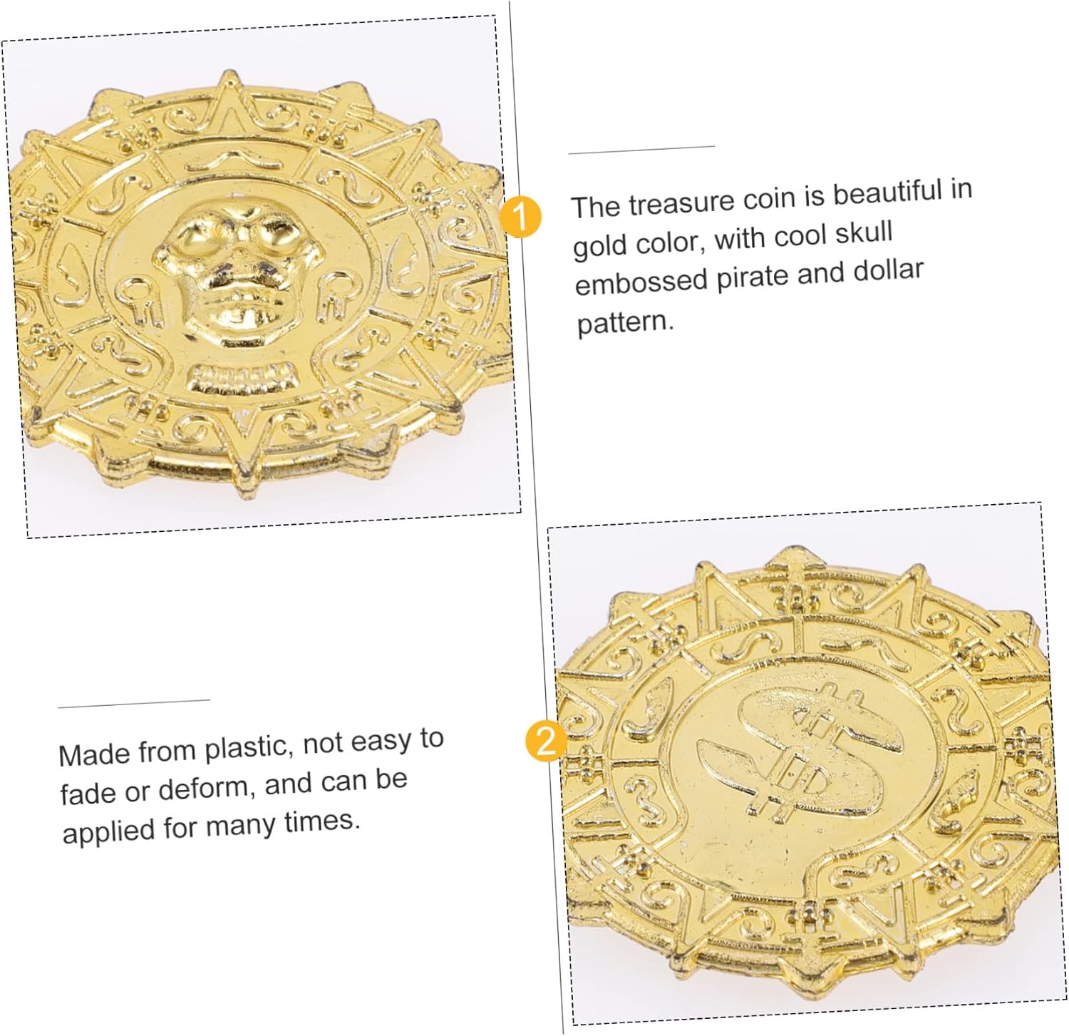 Pirata: la moneta è in colore , con un fantastico teschio pirata in rilievo e un motivo, monete in plastica Adatte per oggetti , decorazioni centrali, decorazioni per feste, scatole , portagioie, ecc., monete Plastica: l'ampia quantità può soddisfare tue esigenze quotidiane decorazione e , monete dei pirati Monete per l'intrattenimento: seppellire monete in o luoghi e lasciare gli ospiti della giochino alla caccia al dei pirati!, monete dei pirati Monete dei pirati: possono essere utilizzate anche come decorazioni per trappole o come premi per i , monete plastica