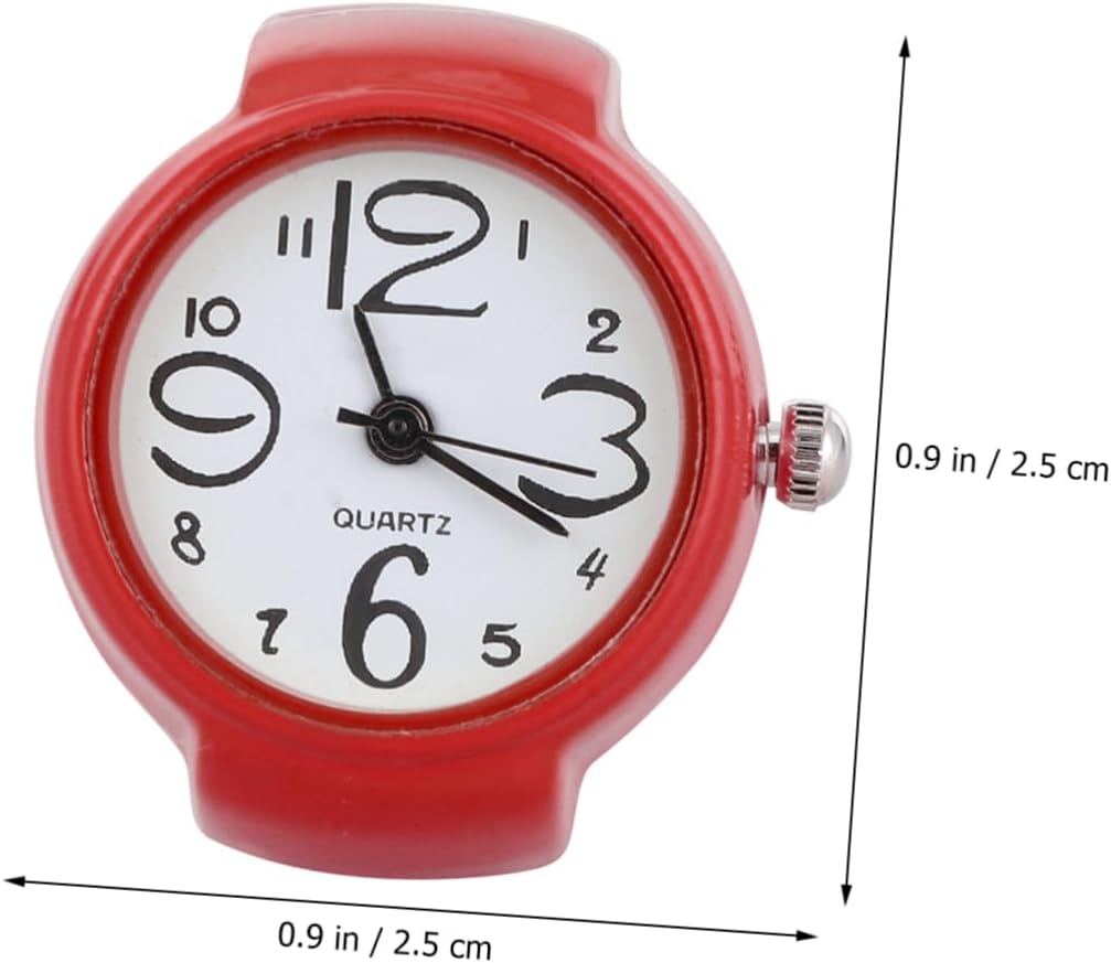 dei pacchetti 1 anello al dito Caratteristiche - Dimensioni: circa 2,5x2,5x2,2 cm (mini anello per orologio). - Materiale: anello a forma di orologio in lega e quarzo. - Colore: Rosso. - Piccolo, alla moda e di design, può essere utilizzato per collezionare oggetti o indossato come anello da orologio. - Una combinazione perfetta di anello e orologio, un orologio da polso pratico e decorativo. - Novità per i vostri bambini e amici. - Elegante e decorativo. - Struttura dell'anello dell'orologio, con fascia elastica per un utilizzo facile e comodo. - Unico e di design; perfetto per compleanni o Natale. Descrizione della merce anello orologio alla moda A per decorazione personale. anello a forma di orologio Utilizzato per occasioni speciali: turismo, matrimonio, benefit per i dipendenti, ecc. anello orologio Un accessorio alla moda e utile per illuminare il tuo look. mini anello orologio Non è solo un anello a forma di orologio, ma anche un accessorio