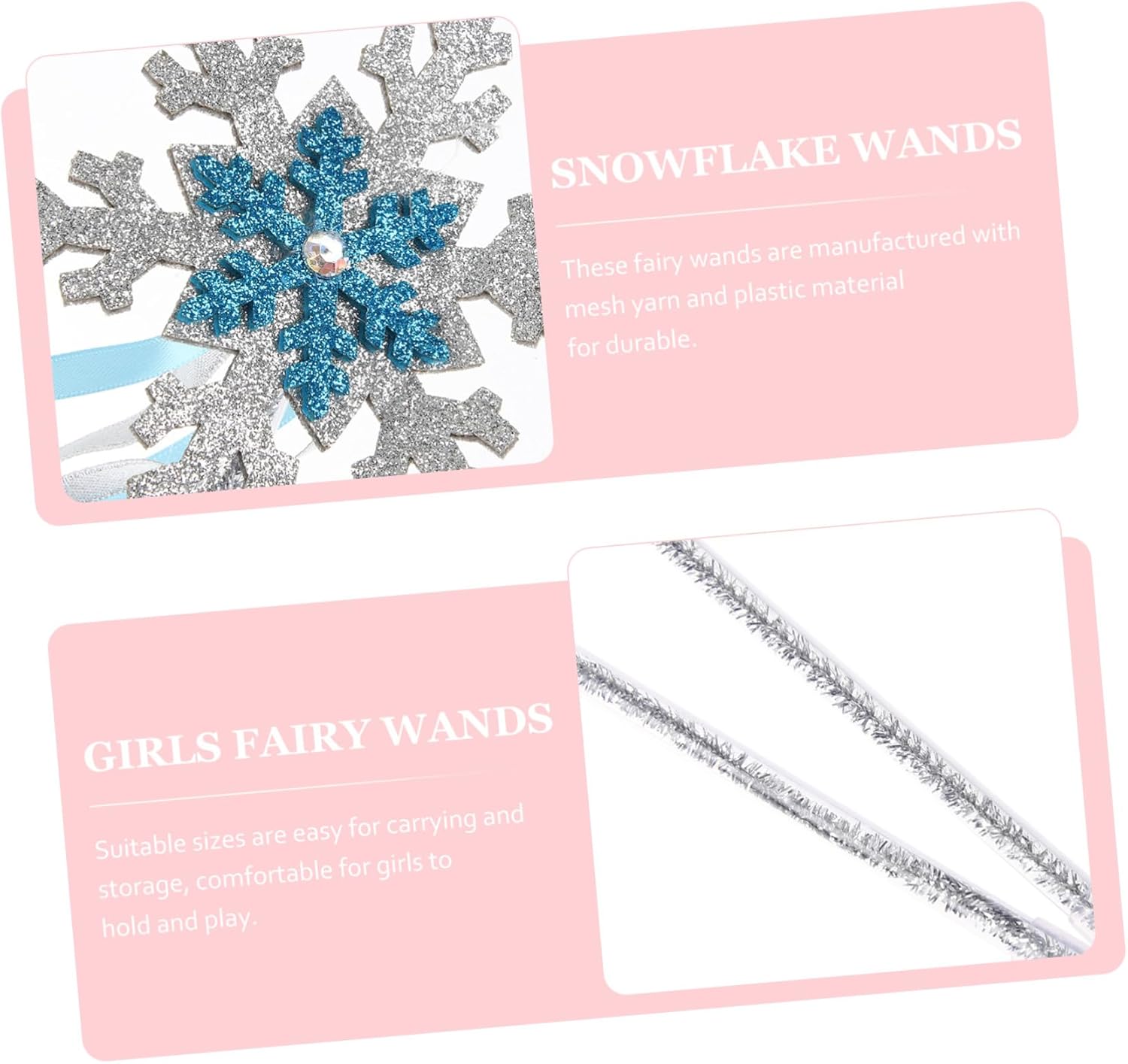 Per ragazze: ottima per feste a tema neve, feste natale, feste in maschera e qualsiasi a tema invernale, per feste con Giocattoli a forma neve: bacchette magiche in plastica non si strappano facilmente, sono affidabili e sicure da usare e possono durare a lungo, bacchette magiche Per : queste bacchette magiche sono alla e sono quindi ottimi oggetti per foto, giocattoli con bacchette magiche per Glitterata: bacchette in plastica con decorazioni in nastro filato a rete sono bellissime e adorabili, bacchette con da principessa Bacchette magiche per bambine: saluta l'inverno con nostre bacchette magiche a forma neve, perfette bomboniere per feste e celebrazioni natalizie, bacchette magiche per costumi per