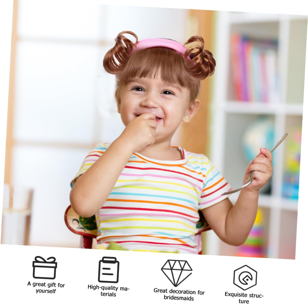 novità per ragazza: struttura semplice, facile da indossare e da togliere. Parrucca con per : la testa è realizzata in materiale per un uso duraturo e duraturo. Parrucche per bambini: materiale di alta qualità, che offre ai tuoi bambini un'esperienza di abbigliamento confortevole. sulla parrucca: materiale selezionato, che offre il tuo comfort e. Copricapo per bambini: rendi il tuo più accattivante e più alle feste.
