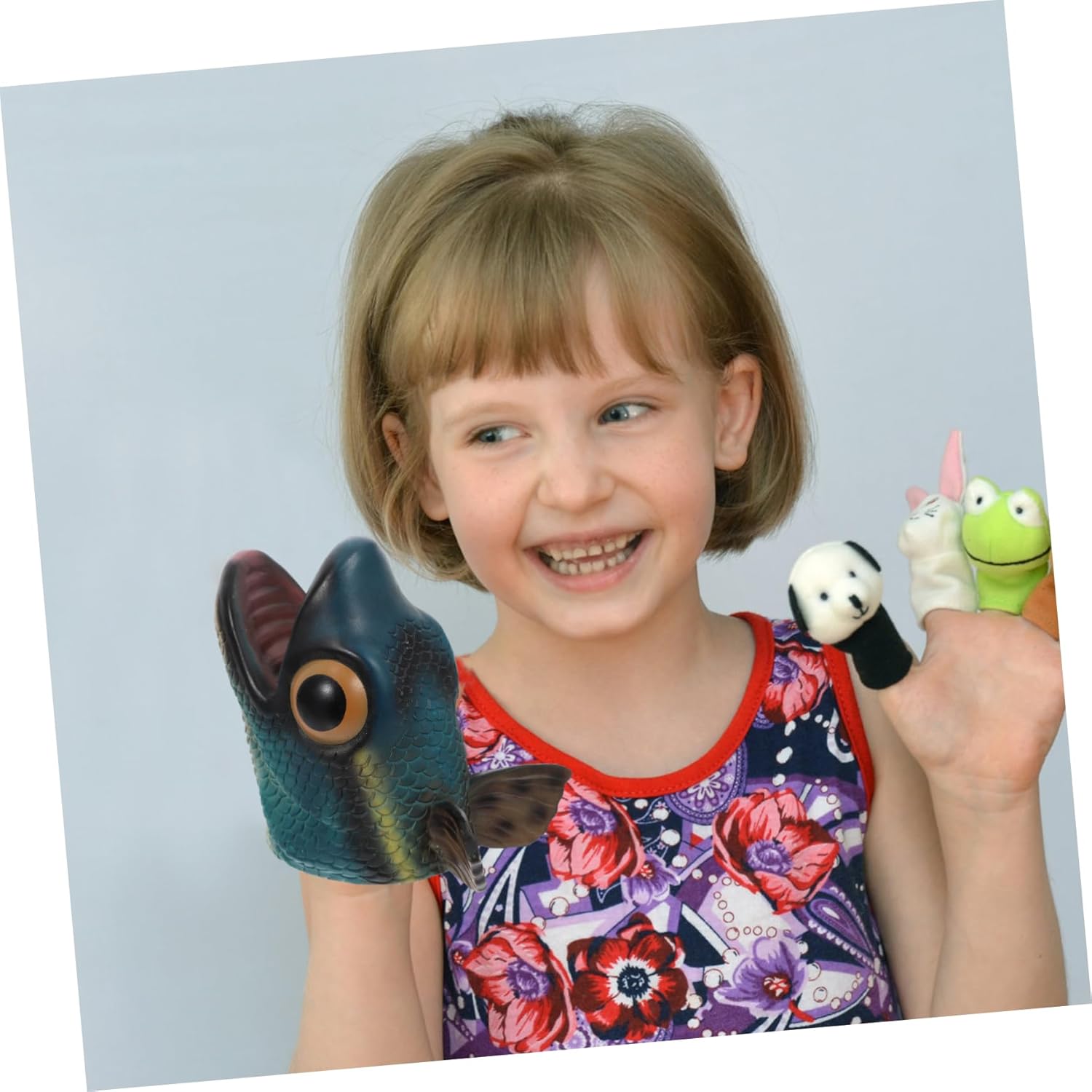Giocattolo creativo delle marionette: questo giocattolo delle marionette è comodo da usare ed è ottimo per la narrazione interattiva dei bambini. Burattino da mano giocattolo per l'apprendimento delle marionette per giochi di ruolo: può muovere le dita per aprire o chiudere la bocca. è un giocattolo di marionette molto divertente per: pupazzi ispirano innumerevoli, ideali per giochi di ruolo e narrazione, burattini a mano per bambini, giocattoli per bambini: questo giocattolo a marionette è fatto di e materiale, assicura che possa anche essere tenuto comodamente, burattino a mano per giocattoli di burattini dei cartoni animati: ti divertirai moltissimo quando giochi con questi burattini realistici di fronte ai tuoi amici. giocattolo della marionetta a mano