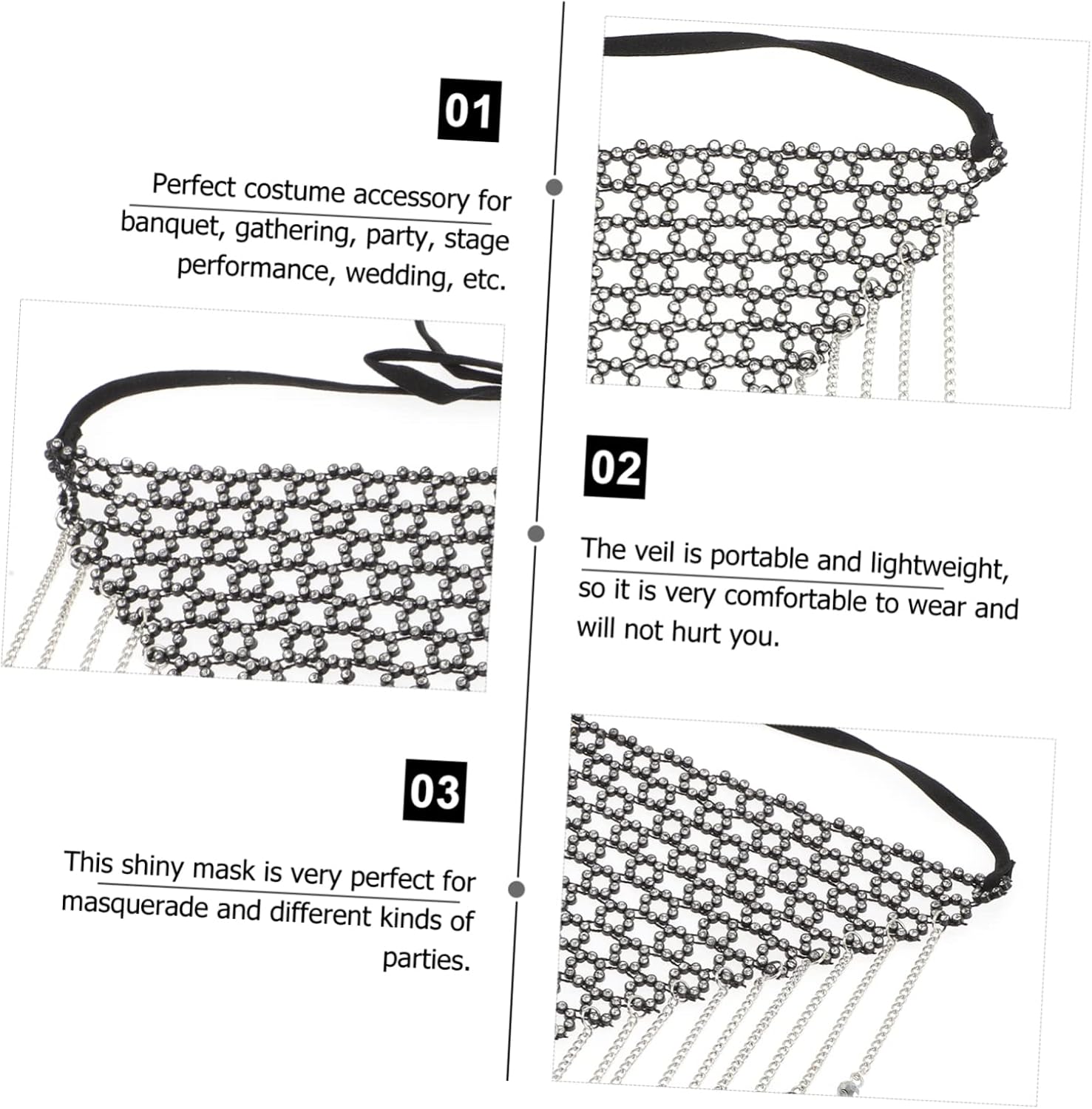 Il pacchetto include 1 maschera per il viso Caratteristiche - Dimensioni: 25,00X25,00X1,00 cm/9,82X9,82X0,39 pollici maschere in costume da donna - : Maschere da festival nere - Materiale: maschera di carnevale in metallo e strass per uomo e donna - Gli strass lucidi conferiscono alla catena per il viso della maschera da ballo un aspetto . - Un meraviglioso per fidanzata, moglie, amiche e amante. Quando indossa la nostra maschera, attirerà la sua attenzione e diventerà la sua maschera di carnevale preferita. - Oppure indossalo e aggiungi un po' di freschezza alla noiosa maschera da ballo in maschera della vita di tutti i giorni. - Maschera da donna perfetta per Halloween, , carnevale, feste in maschera, cosplay, ricevimenti nuziali e così via. - Maschera da carnevale per donna realizzata con una catena di strass per un uso duraturo nelle maschere in maschera. Informazioni sulle merci Gioielli per il viso per danza, festival di ballo, festa, spettacolo, club ecc. Maschera in costume Con design in strass e metallo, puoi truccarti facilmente ed essere più affascinante. Maschera in costume Questa maschera da festa è realizzata in materiale metallico, questa maschera è resistente e comoda da indossare
