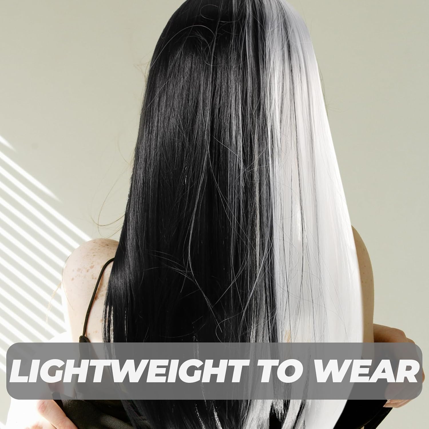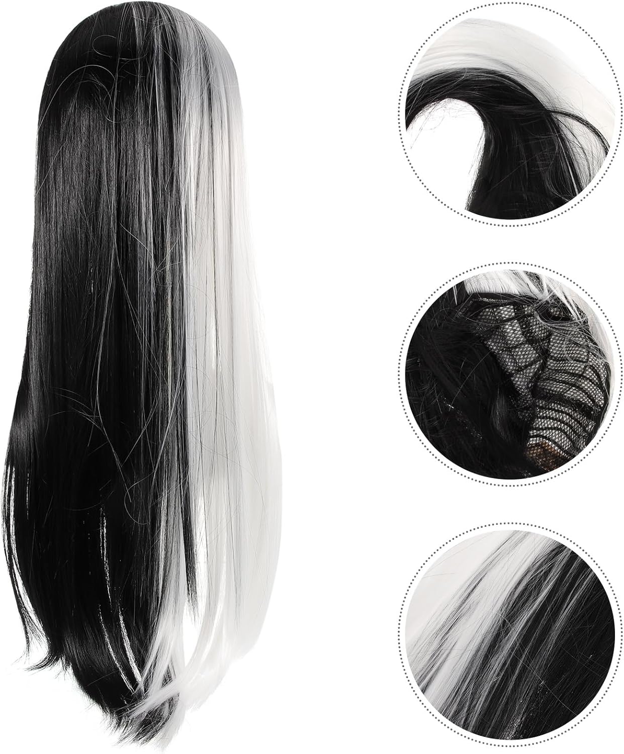 Design unico a colori divisi: caratterizzata da un sorprendente design a colori divisi metà nero e metà bianco, questa parrucca lunga e liscia aggiunge immediatamente un tocco audace e unico al tuo look, rendendola perfetta per cosplay, feste e altre occasioni creative. Comoda e leggera: progettata per essere facile da usare, questa parrucca da donna con lunghi è leggera e facile da gestire, il che la rende una soluzione rapida senza compromettere il comfort. Perfetta per varie occasioni: che si tratti di Halloween, spettacoli teatrali, servizi fotografici o carnevali, questa lunga parrucca cosplay per donna migliora il tuo aspetto e ti aiuta a distinguerti in qualsiasi Opzioni di stile versatili: questa parrucca cosplay per donna è facile da indossare e può essere tagliata o acconciata liberamente in base alle tue preferenze personali, consentendoti di creare look senza sforzo Materiale morbido e confortevole: realizzata in seta ad alta temperatura, questa parrucca da donna offre una sensazione morbida e naturale, garantendo comfort e durata per un uso prolungato durante eventi o per lo styling quotidiano
