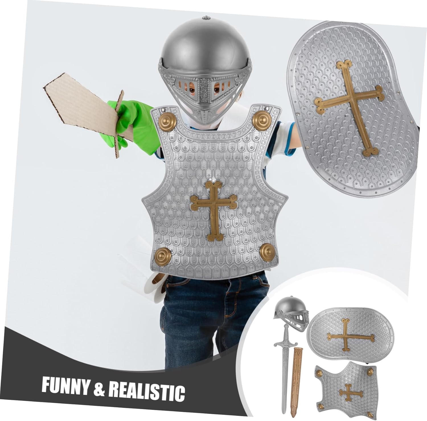 Gioco coinvolgente: Il set Retro armor set include un elmo, scudo e in stile medioevale, pensato bambini, ideale momenti di gioco con amici o famiglia, stimolando l'immaginazione in ambienti come casa e hotel Dimensioni adatte ai bambini: Le dimensioni moderate delle e armature giocattolo facilitano la presa e l’uso da parte dei più piccoli, garantendo un’esperienza di gioco confortevole e sicura rispetto ad altri accessori di costume Materiali resistenti: Realizzato in plastica robusta con finiture curate, il set garantisce durata e resistenza senza deformazioni, offrendo un prodotto pratico e durevole attività ludiche prolungate Sicurezza e comfort: Il design levigato e privo di spigoli del set assicura che i bambini possano giocare senza rischi di graffi o ferite, favorendo un utilizzo sereno durante giochi di ruolo e feste a tema Stimolo creativo e sociale: Questo set di armature e scudi promuove l’interazione tra genitori e figli e sviluppa le abilità manuali dei bambini, offrendo un’alternativa divertente all’uso di dispositivi elettronici in scenari di gioco ricreativo