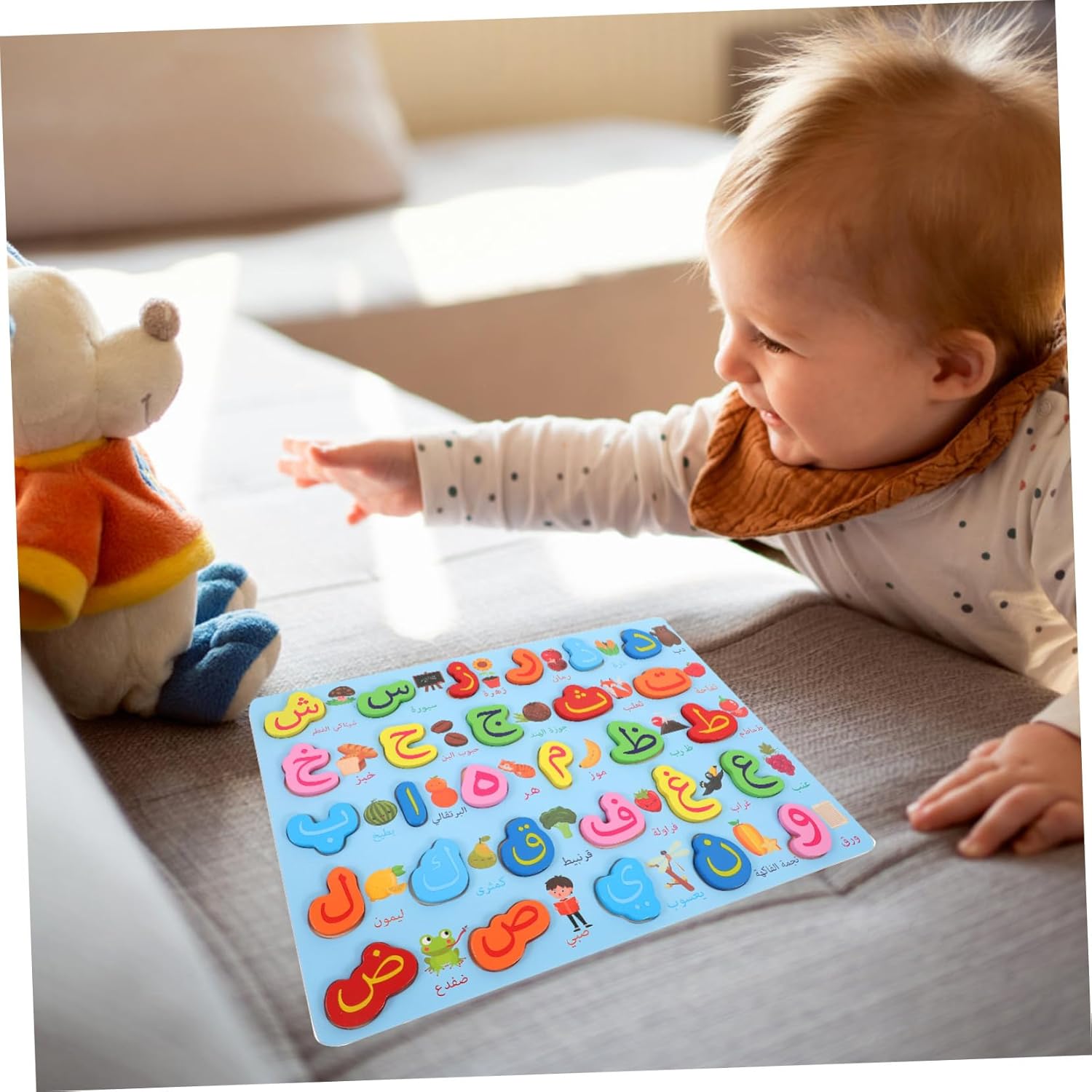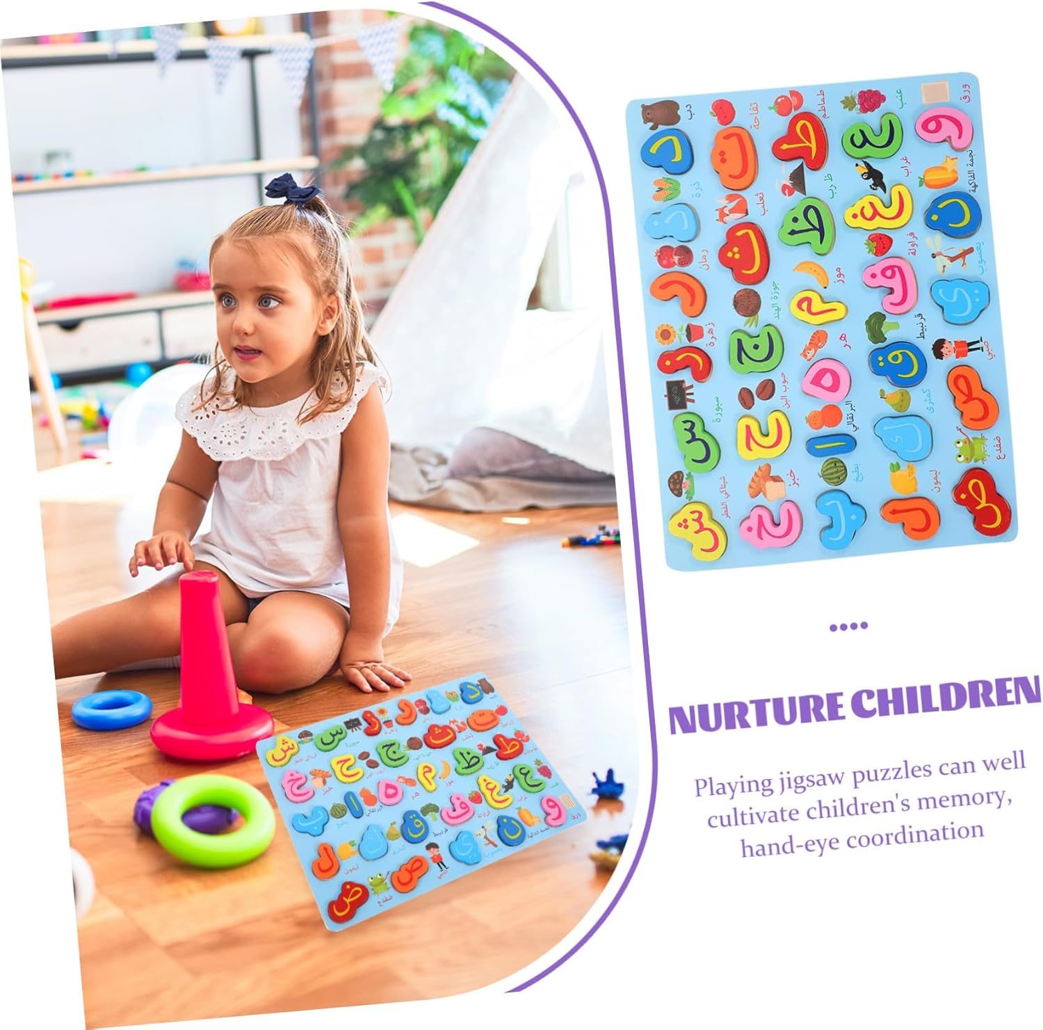 Scheda occupata: corrisponde al corretto, apprende l'abbinamento cognitivo, allena il pensiero logico, migliora l'abilità di osservazione e discriminazione, puzzle di ortografia Puzzle per bambini piccoli: questo puzzle dell'alfabeto arabo può introdurre e comprendere l'alfabeto arabo e i puzzle dell'alfabeto Riconoscimento dei numeri per bambini in età prescolare: migliora la resistenza nell'affrontare le sfide e aiuta efficacemente i bambini a migliorare la loro capacità di discriminazione, capacità di pensiero e capacità di osservazione. Macchina giocattolo vocale per la prima educazione: introducete il vostro bambino nel mondo dell'arabo con il puzzle con l'alfabeto arabo per la prima educazione. I piccoli pezzi del puzzle sono perfetti per le piccole mani da afferrare e, puzzle Giocattoli di intelligenza per: questo puzzle stimola l'immaginazione e il pensiero dei bambini e sviluppa abilità cognitive di base e coordinazione occhio-mano