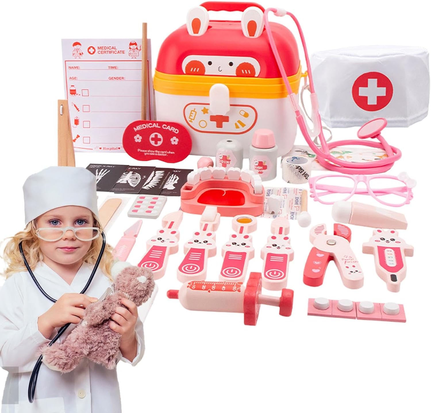Materiali adatti ai bambini: questi accessori in plastica durano per anni e garantiscono un ambiente sicuro. Incoraggia la creatività: incoraggia la creatività e la capacità di raccontare storie di tuo figlio con questo emozionante set da gioco che gli consente di esplorare il mondo della medicina, travestirsi e fingere di essere un medico. Incoraggia la creatività: questo set aiuta a sviluppare la creatività e l'immaginazione del tuo bambino mentre esplora il mondo della medicina La medicina esplorata attraverso il gioco di ruolo, giocattolo in costume da medico pediatrico, termometro realistico Apprendimento interattivo: questo set da gioco incoraggia l'apprendimento interattivo e aiuta i bambini a sviluppare le loro capacità motorie e la coordinazione occhio-mano Gioco autentico da medico: termometri realistici e accessori da medico rendono il gioco di ruolo del medico di tuo figlio più autentico e divertente, modello di pronto soccorso per i più piccoli, costume da medico per