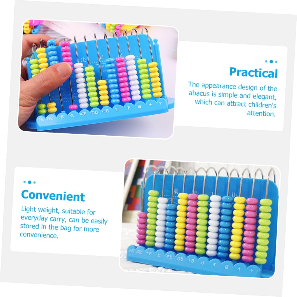 Per: stile cartone animato, adatto anche per collezionare, per decorare, per studiare, per imparare la matematica Matematico: un sussidio didattico matematico per insegnanti o collezionisti di abachi. È molto versatile, uno strumento per i giocattoli per l'apprendimento della matematica per: il processo di lucidatura garantisce angoli e superfici arrotondati e dà loro una sensazione liscia, per strumenti di apprendimento: design ad asta a 12 cifre, adatto per adulti, studenti, contabili, studenti che fanno matematica strumento di calcolo matematico: elaborazione per garantire praticità e durata, che è per l'apprendimento della matematica dei bambini, giocattoli aritmetici