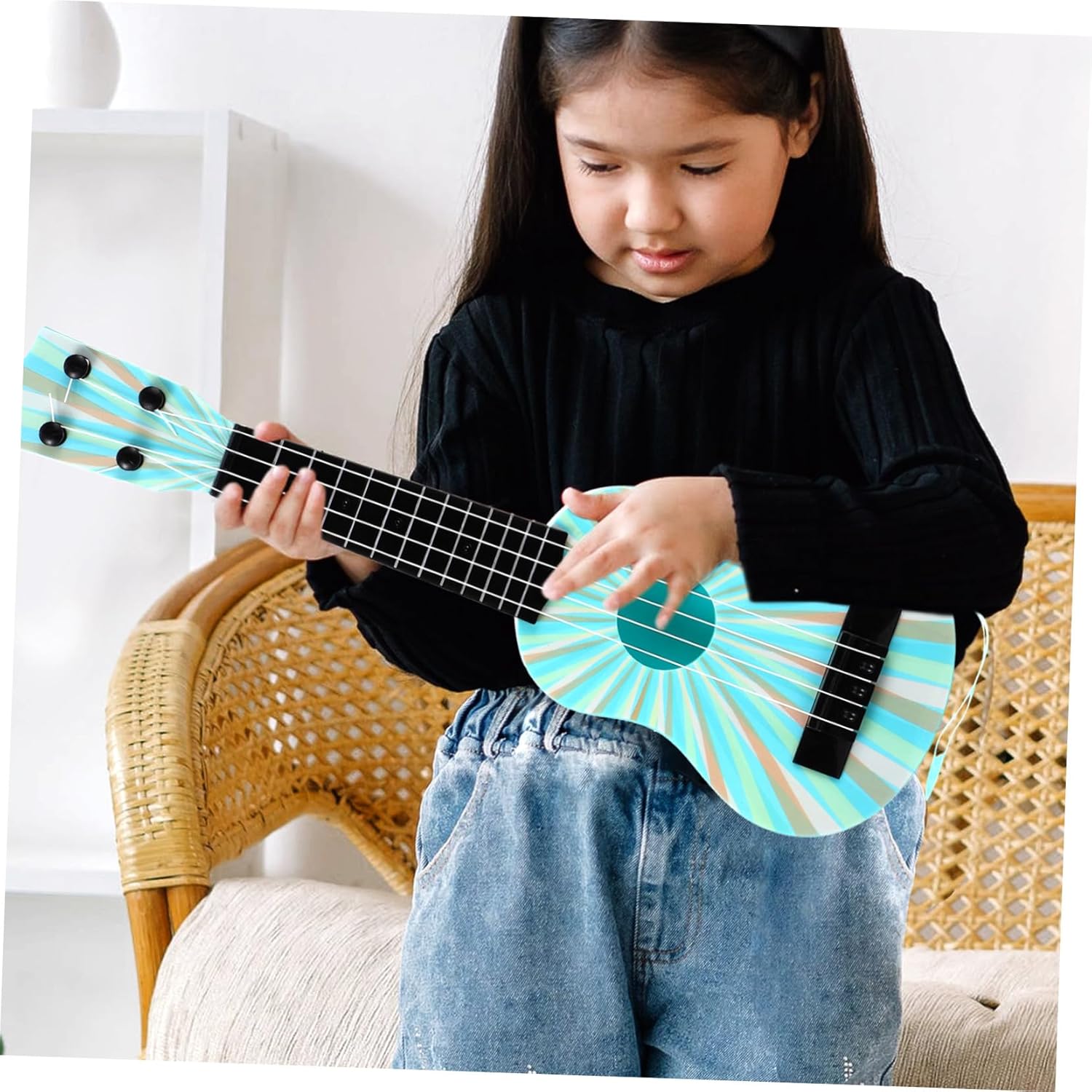 Giocattolo per chitarra per - Utilizzo di plastica durevole e di alta qualità, molto robusto e durevole, strumento musicale giocattolo per chitarra di simulazione per bambini piccoli - ha un aspetto eccellente e può essere utilizzato come decorazione domestica, ornamento decorativo da collezione o strumento per bambini Giocattolo per strumenti musicali - la simulazione e il design dai colori vivaci possono evidenziare l'atmosfera di gioco e portarti il buon umore. Giocattolo per ukulele per strumenti musicali per la prima educazione per - questo ukulele - ti dà spazio per esibirti e ti rende più sicuro, giocattolo musicale per strumenti per bambini - questa chitarra per bambini è di alta qualità, ma puoi anche acquistare questo giocattolo per ukulele con un principiante di ukulele