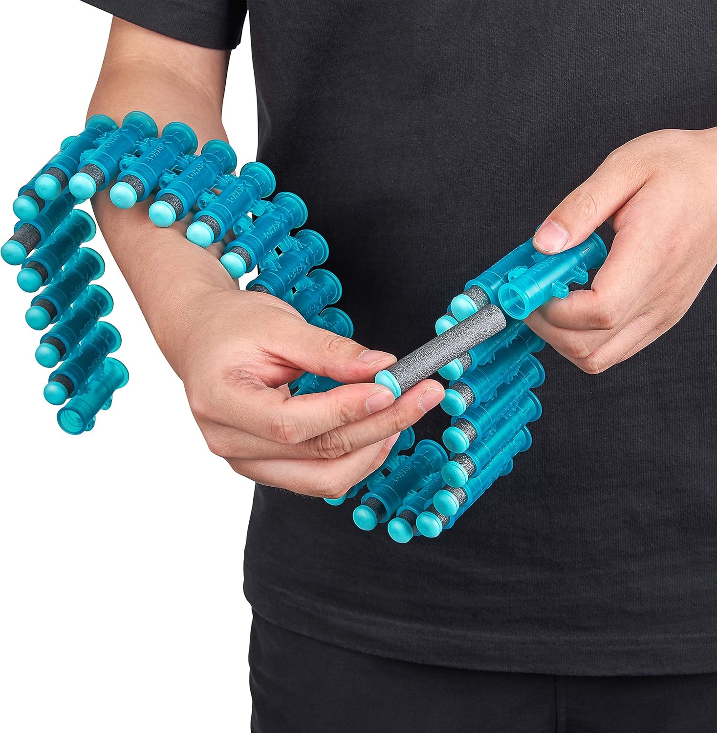 Sconfiggili tutti: la cintura per freccette Crusher 35 ha un incredibile raggio di tiro fino a 27 metri. Non c'è da stupirsi che gli X-SHOT Blasters abbiano vinto tre volte il Dartzone Award SLAM-FIRE: Quando il combattimento si intensifica, tieni il dito sul grilletto e usa la pompa. Spruzza fino a 4 freccette al secondo e guarda i tuoi nemici fuggire Cintura a rotazione automatica: quando salti, goditi la cintura automatica per assicurarti di avere più tempo per volare via Capacità delle freccette: enorme capacità di freccette con cintura integrata per 35 freccette La promessa di X-Shot: la nostra missione è fornire un valore imbattibile ai nostri fan in tutto il mondo. La nostra promessa «Up Your Game» offre una combinazione di eccellenza nel design, qualità leader di mercato e prezzi imbattibili
