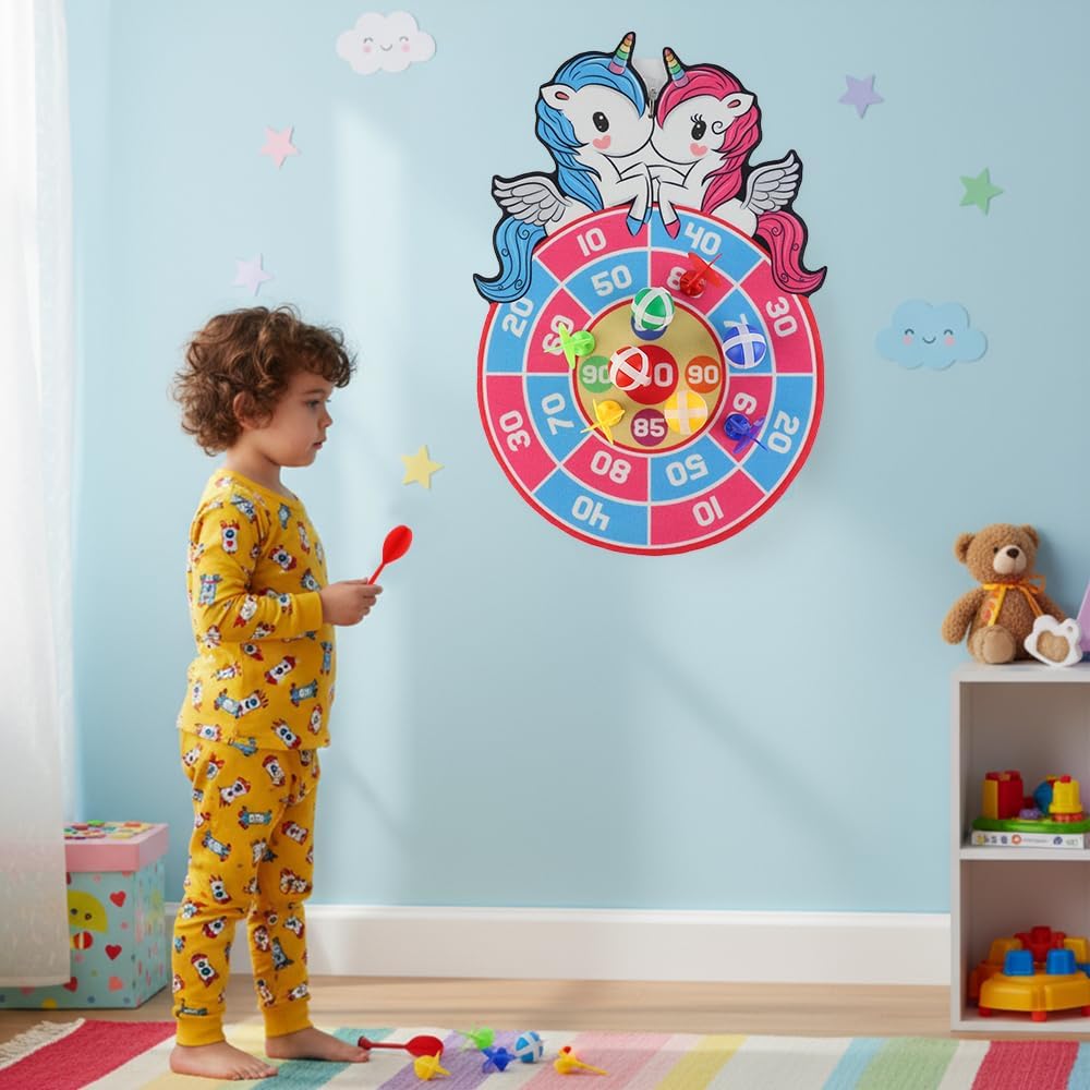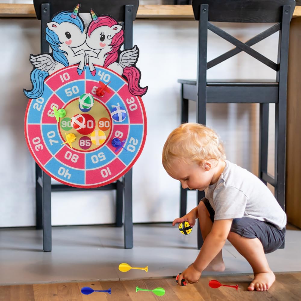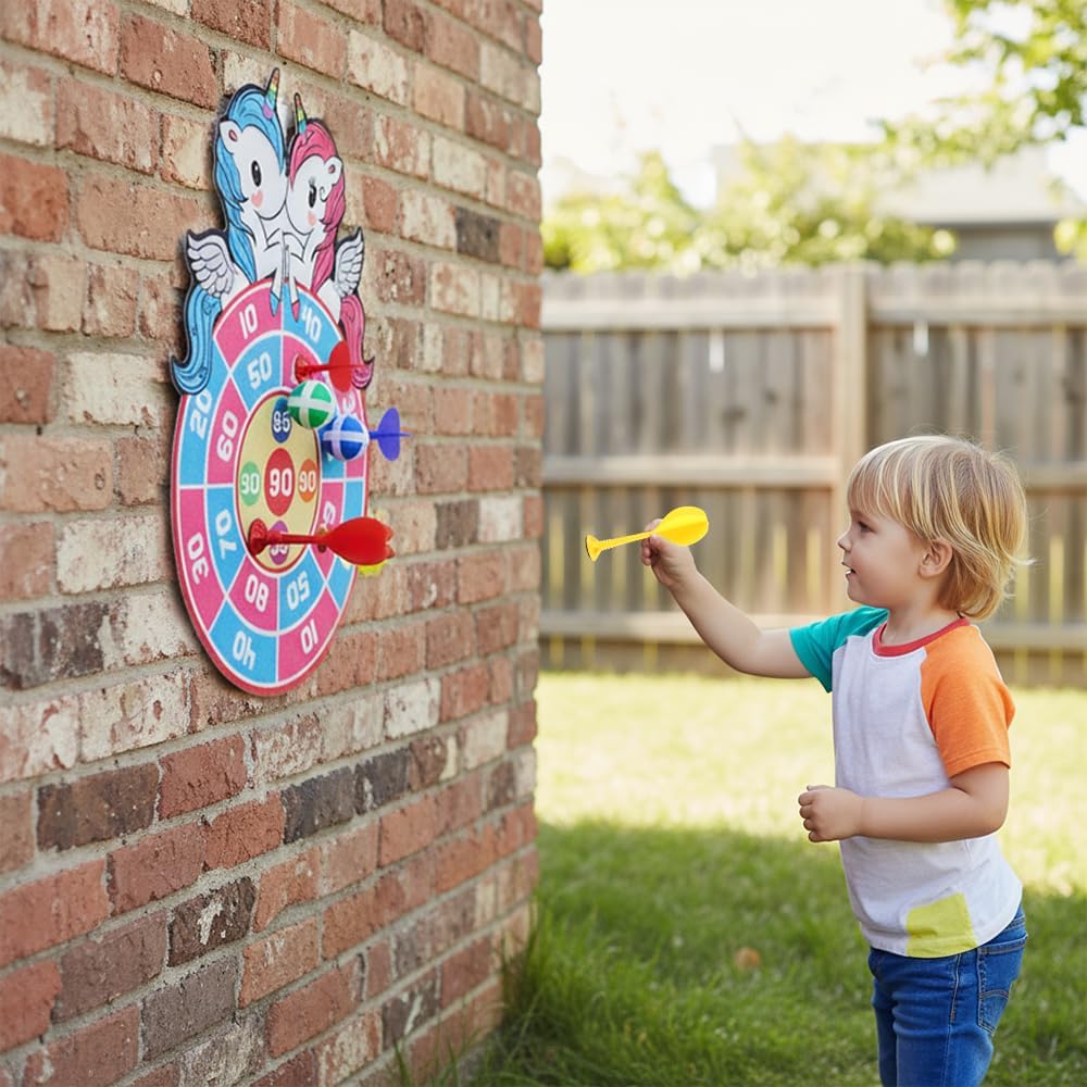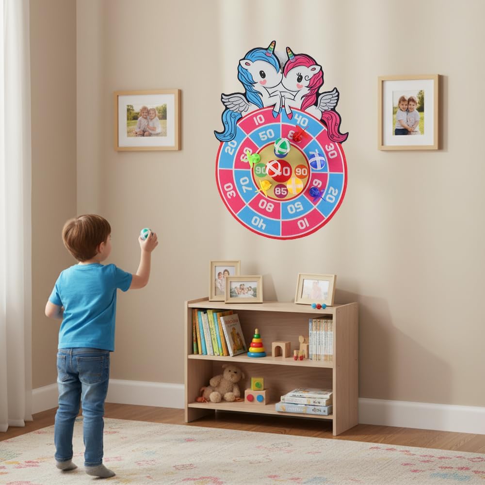 Materiali di Alta Qualità -- Il set di freccette è realizzato in tessuto morbido di alta qualità, privo di odori particolari, con colori vivaci e motivi nitidi. Le palline adesive e le freccette aderiscono saldamente al bersaglio senza causare danni e sono resistenti e durevoli. Il Set Include -- Bersaglio con 3 palline adesive, 8 freccette e 1 gancio. I bambini possono scegliere la modalità di gioco in base alle proprie preferenze, aumentando la varietà e il divertimento. Facile da Usare -- Il bersaglio per freccette per bambini può essere utilizzato sulla parete e riposto facilmente, è adatto sia per uso interno che esterno e permette a tutti di partecipare al gioco. Migliora le capacità motorie, la coordinazione occhio-mano e la precisione. Design Unico -- Il nostro bersaglio per freccette ha un design accattivante e unico, con colori vivaci e segni chiari che aiutano i bambini a mirare con precisione. Ampia Applicazione -- Questo set di freccette è semplice e divertente, perfetto come regalo per feste di compleanno, Halloween, Ringraziamento, Natale o altre festività, utile per migliorare il rapporto genitore-figlio e godersi il divertimento del gioco.