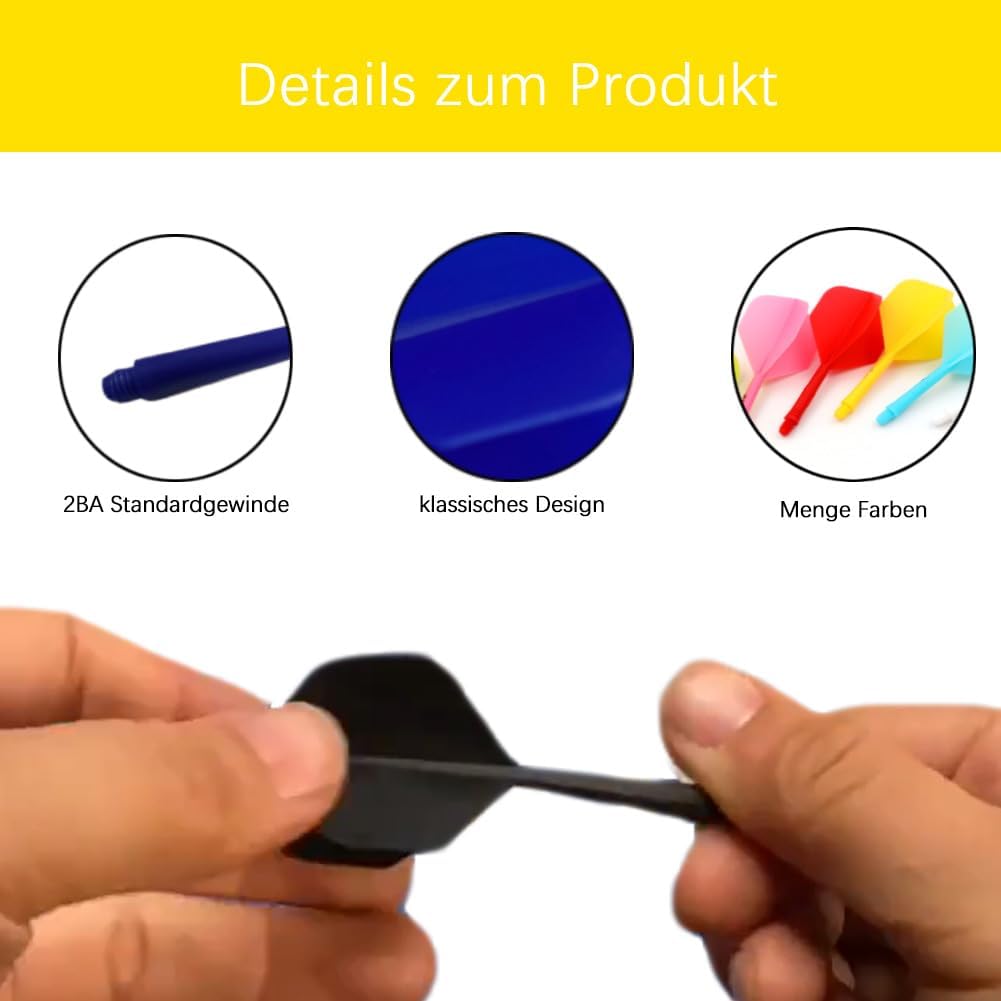Freccette lunghe 75 mm, disponibili in una vasta gamma di colori, c'è abbastanza per soddisfare le vostre esigenze di utilizzo, i nostri prodotti possono portare una nuova esperienza di gioco di freccette. Le aste per freccette sono realizzate in materiale plastico, resistenza all'usura, all'allungamento, non facili da rompere e deformare, a prova di goccia, ma anche flessibili, in modo che possano essere riutilizzate. Freccette in plastica con design classico, questo crea un flusso d'aria stabile durante il volo e garantisce una traiettoria precisa e stabile per le freccette. Alette per freccette, facili da usare, con filettatura standard 2BA, si attaccano facilmente alle freccette, sia che si tratti di punta in acciaio o punta morbida. Gli accessori per freccette sono adatti per livelli di abilità o occasioni, adatti per giochi casual con gli amici. Non importa se sei un principiante o un giocatore esperto di freccette, tutti possono essere i nostri flights e pecore.