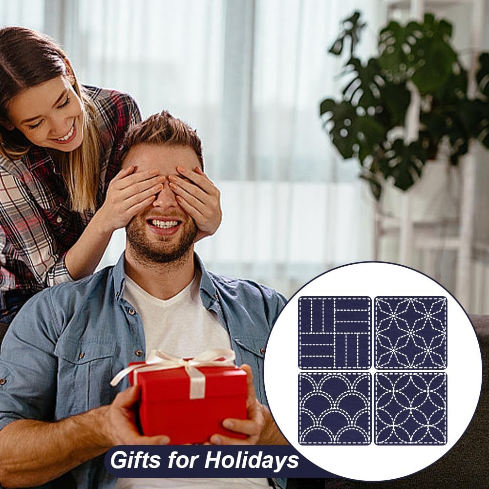 Kit completo per sottobicchieri Sashiko:il pacchetto include un panno di cotone prestampato da 12*12'' pollici per realizzare 4 sottobicchieri sashiko, aghi da ricamo*16 pz, fili da ricamo bianchi. Ogni sottobicchiere misura circa 5*5''. Materiali di alta qualità:forniamo tessuto di cotone blu navy di alta qualità, che è durevole, lavabile e inodore, molto amichevole per chiunque voglia praticare il ricamo, e disponibile in uso a lungo termine. Facile da avviare:istruzioni incluse. Questo grazioso kit di sottobicchieri sashiko è un ottimo progetto di partenza per chi è interessato all'artigianato del cucito. Anche i giovani adolescenti sono in grado di realizzarli con l'aiuto delle nostre istruzioni. Sottobicchieri Sashiko pratici e adorabili:crea un set di 4 sottobicchiere per aggiungere un tocco di stile al tuo tavolo. Sono ottimi per proteggere le superfici dalle bevande calde, piatti, vasi per piante, vasi e così via. Regalo premuroso fatto a mano:sottobicchieri ricamati delicati e unici per te o da inviare come regalo ai tuoi amici o familiari. Sarà davvero un bel regalo per la festa della mamma, riscaldamento, compleanno e Natale, eccetera.