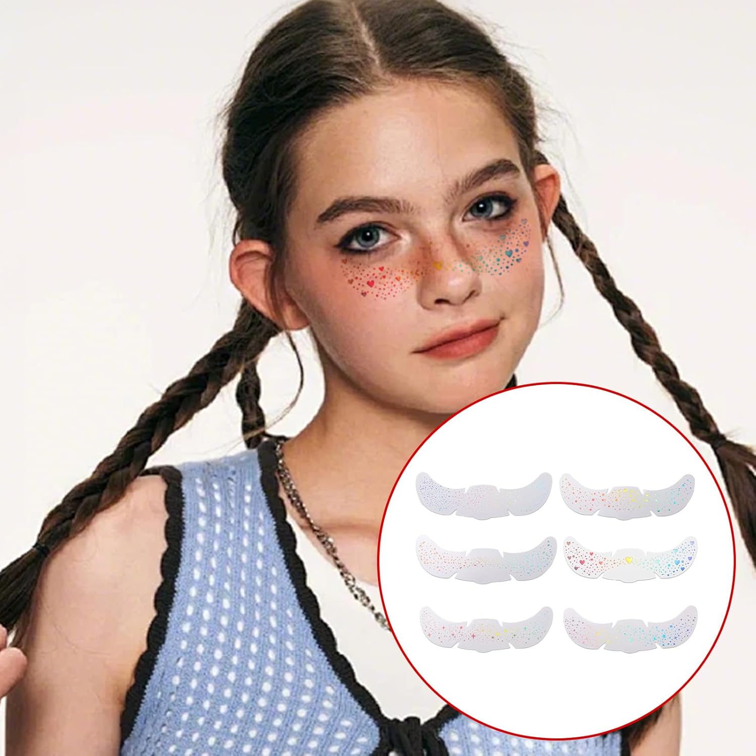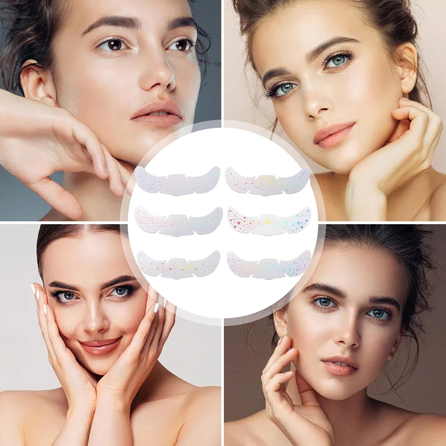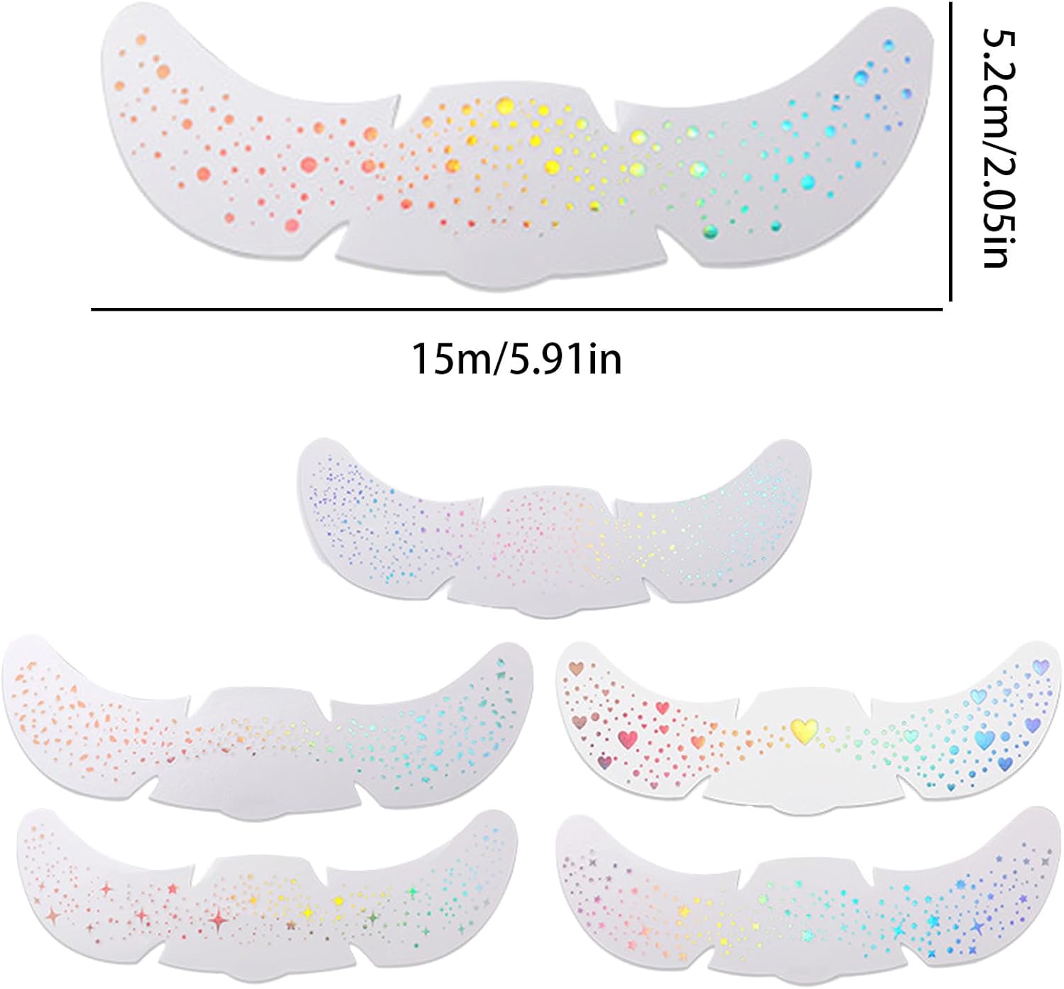 Gentle on Skin: progettato con materiale non irritante e adatto alla pelle, combinato con una tecnologia cinematografica avanzata e traspirante, per offrire un'esperienza rilassante e confortevole, perfetta per coloro con esigenze della pelle delicate o sensibili Finitura stellata artistica: ottenere sguardo alla moda attraverso l'effetto luccichio olograpahico, arricchito da motivi multicolori di stelle e cuore, fondendo perfettamente in vibranti combinazioni di colori, per gli stili di trucco creativi Longevità della lentignza estesa: offre una finitura duratura che resiste a sudore e attrito, performance affidabili per il giorno e la notte Finitura stellata artistica: ottenere sguardo alla moda attraverso l'effetto luccichio olograpahico, arricchito da motivi multicolori di stelle e cuore, fondendo perfettamente in vibranti combinazioni di colori, per gli stili di trucco creativi A portata di mano da usare: un'esperienza di decorazione rapida con un design semplice e a buccia garantisce un'applicazione istantanea, resiste a peeling per bordi e si adatta a un uso adatto ai principianti per risultati senza soluzione di continuità Ampiamente usato: adatto a più occasioni e abbina vari stili di moda, ideali per eventi e phiotosshoot mentre si lavora perfettamente con tutte le tonalità della pelle per l'adattamento della scena versatile