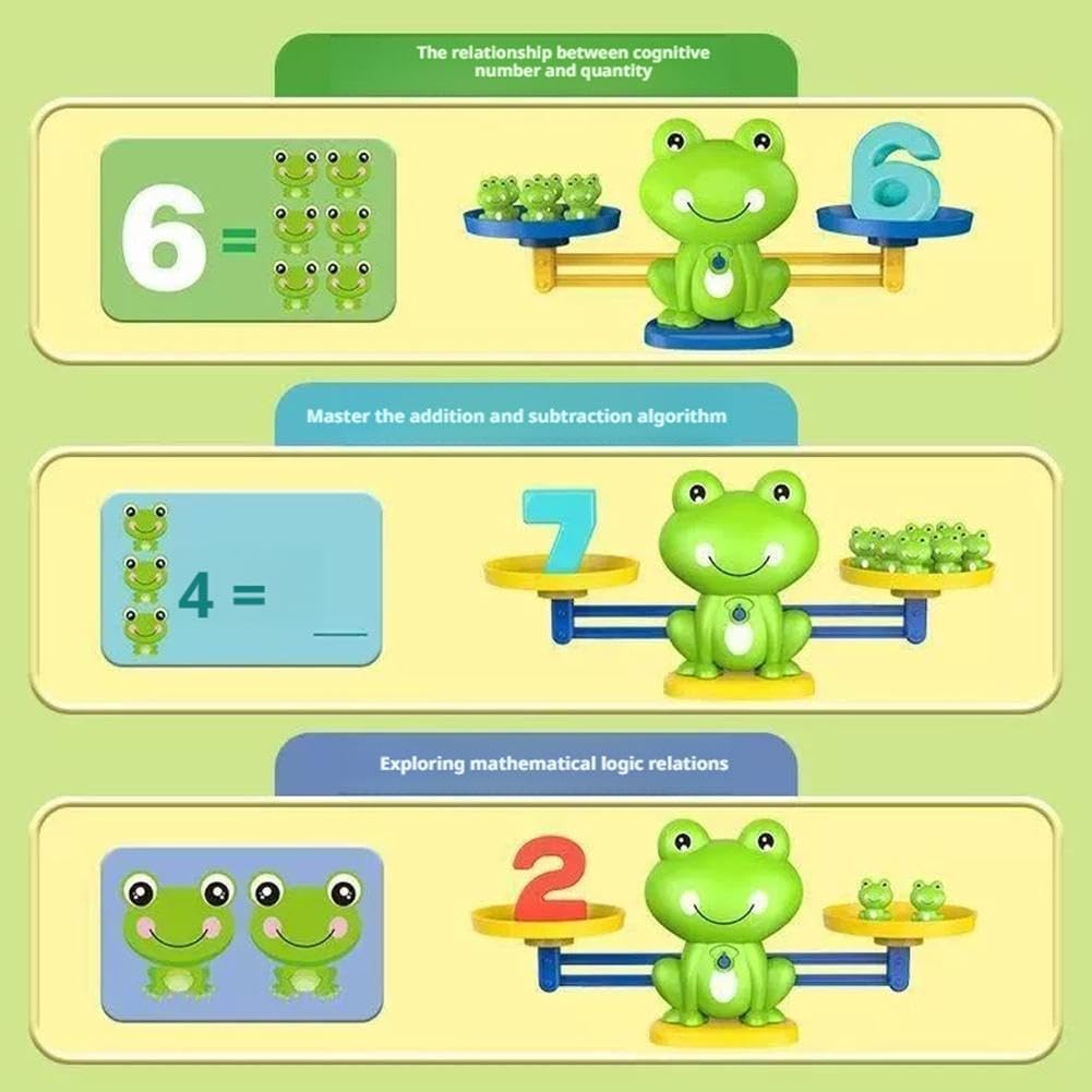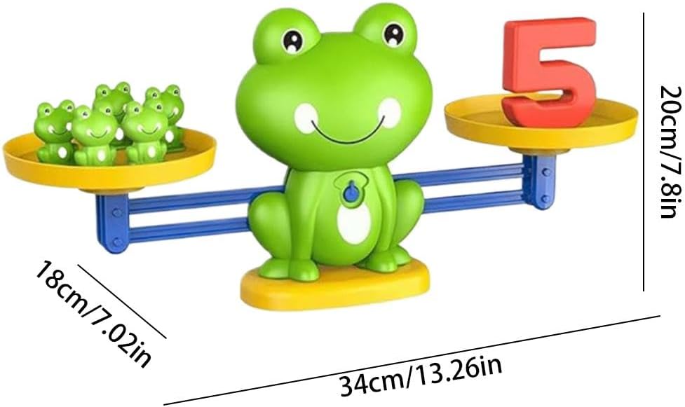 Divertente illuminazione matematica: questo adorabile giocattolo per il conteggio dell'equilibrio della rana trasforma concetti matematici di base come conteggio, confronto, aggiunta e sottrazione in un divertente gioco pratico. Materiale ABS sicuro e durevole: realizzato in plastica ABS atossica di alta qualità, questo giocattolo matematico è sicuro per i bambini. I suoi bordi lisci e la costruzione robusta assicurano che possa resistere al gioco entusiasta. I colori vivaci e il simpatico design a rana sono molto attraenti per i giovani studenti, rendendo l'apprendimento un'esperienza piacevole. Sviluppa abilità motorie fini e coordinazione occhio-mano: i bambini migliorano le loro capacità motorie, la coordinazione occhio-mano e la concentrazione posizionando con cura i pesi colorati sulla scala della rana. Questo processo interattivo è cruciale per lo sviluppo della prima infanzia e li prepara per la scrittura futura e altri compiti precisi. Perfetto per l'interazione genitore-figlio e classe: questo giocattolo interattivo è ideale per genitori e bambini per giocare insieme, rafforzando i muscoli attraverso l'apprendimento condiviso. È anche un eccellente aiuto didattico per aule prescolari e asili, incoraggiando le attività di gruppo e lo sviluppo delle abilità sociali tra i bambini piccoli. Set di gioco di apprendimento tutto in 1: il set include una bilancia a rana, pesi numerici e schede di istruzioni (o componenti simili basati sul prodotto reale), fornendo un'esperienza educativa completa. È un regalo premuroso per compleanni, Natale o come regalo di ritorno a scuola per bambini dai 3 ai 6 anni.
