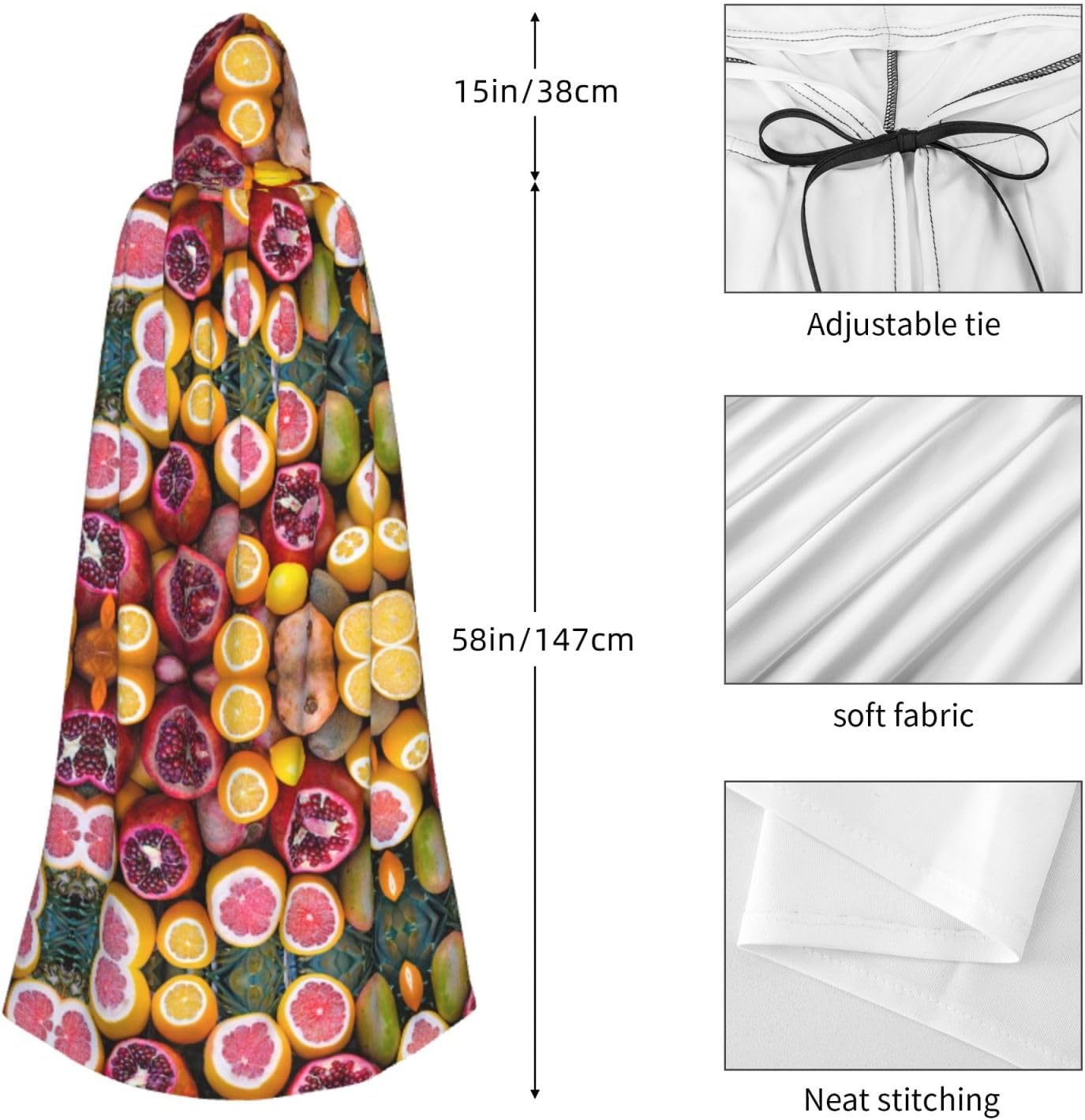 Il mantello con cappuccio per Halloween è realizzato con tessuto in poliestere morbido anche sulla pelle, prevenendo qualsiasi irritazione. Il mantello presenta un ampio cappuccio e uno stile annodato senza cerniere per un design sofisticato ed elegante. Con la sua dimensione universale, offre una copertura completa, adatta a tutti, assicurandoti di distinguerti tra la folla. Questo mantello con stampa standard di frutta non è solo per Halloween; è abbastanza versatile per cosplay, spettacoli teatrali, balli in maschera, feste a tema e molto altro ancora.
