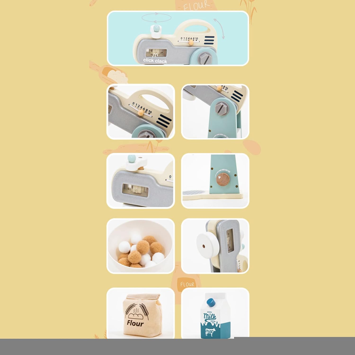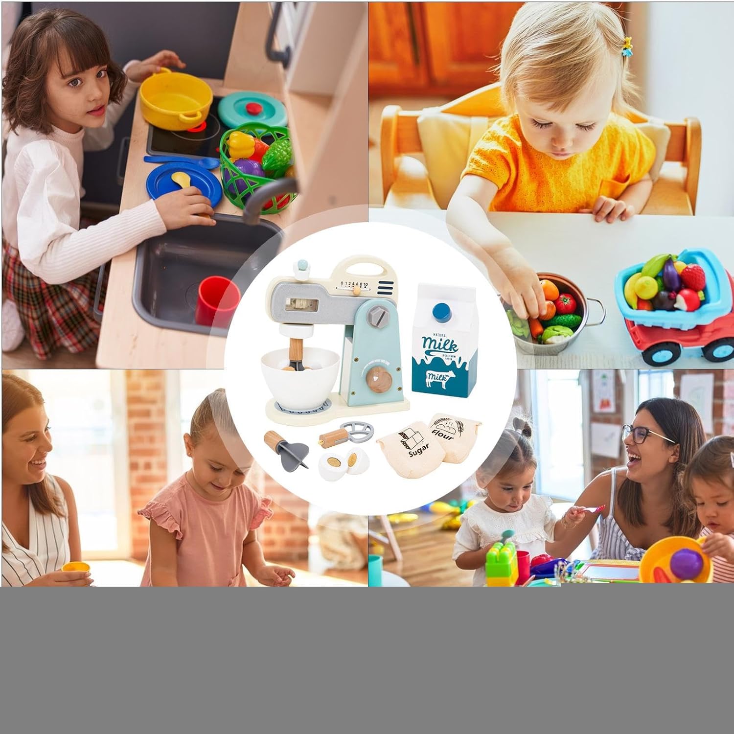 Costruzione : Componenti legnosi di alta qualità con giunti rinforzati garantiscono un gioco attento alla salute. La costruzione resistente previene usura, offrendo sicurezza duratura durante le attività di ruolo creative per l'infanzia. Catalizzatore Cognitivo: Promuove pensiero inventivo e apprendimento tattile con mixer coinvolgente. Stimola entusiasmo per concetti culinari rafforzando capacità di problem-solving attraverso scenari di preparazione alimentare interattiva e gioco di ruolo immaginativo Strumenti Educativi: Sviluppa abilità cognitive attraverso simulazioni realistiche di preparazione. Frullatore, contenitore latte e accessori uova permettono di praticare misurazione, mescolatura e gestione ingredienti, coltivando creatività e pensiero logico con attività pratiche di narrazione culinaria Design Accattivante: Questo frullatore giocattolo affascina con i suoi colori vivaci, ispirati agli elettrodomestici reali. Tessiture intricate e design proporzionato stimolano il gioco di ruolo creativo, mentre la costruzione compatta garantisce una facile presa per i piccoli chef. L'estetica coinvolgente ispira divertenti sessioni di cucina immaginaria. Organizzazione semplice: Accendi divertimento in viaggi o eventi con questo frullatore giocattolo facilmente trasportabile. Linee morbide scivolano comodamente in borse, soluzione organizzata mantiene ordine nelle aree gioco.