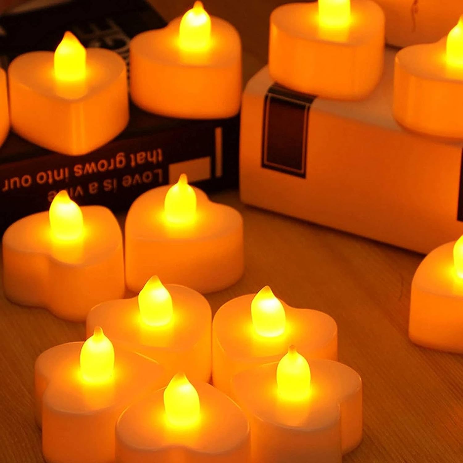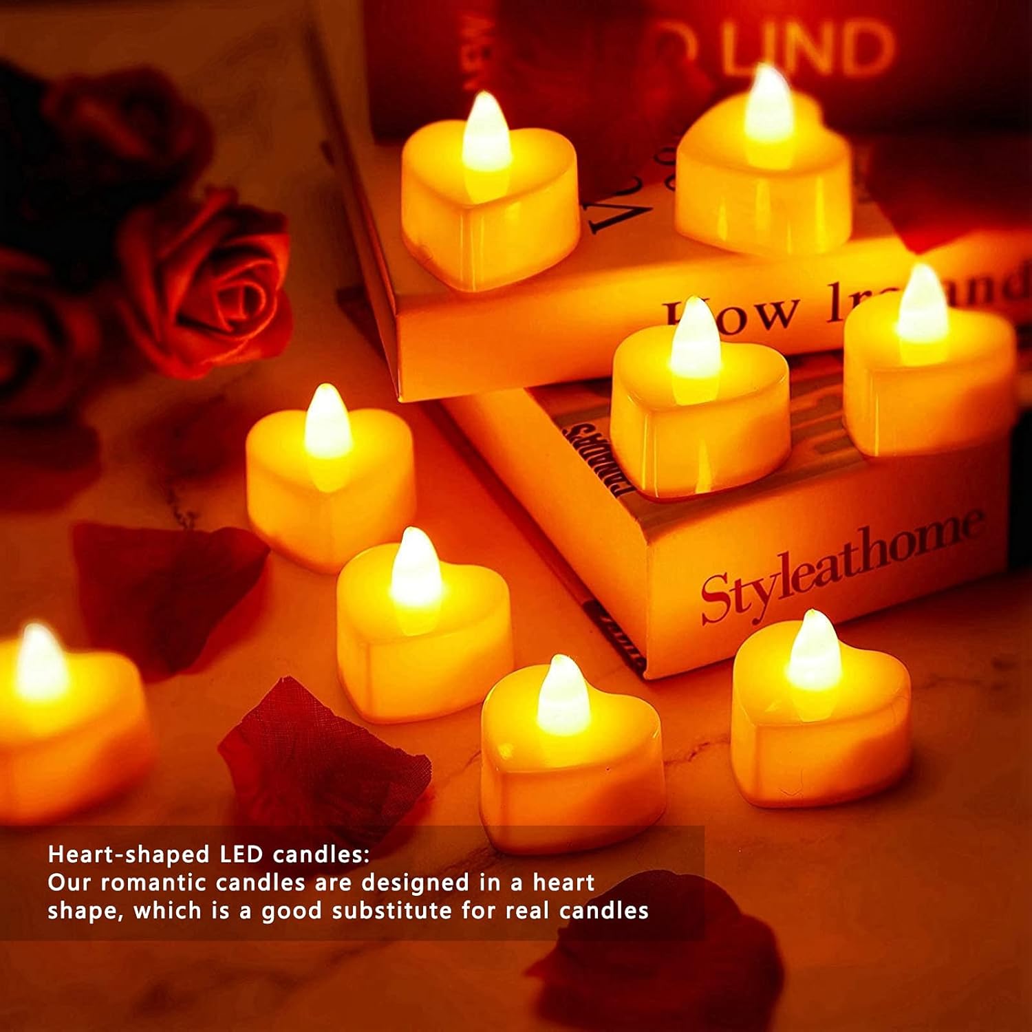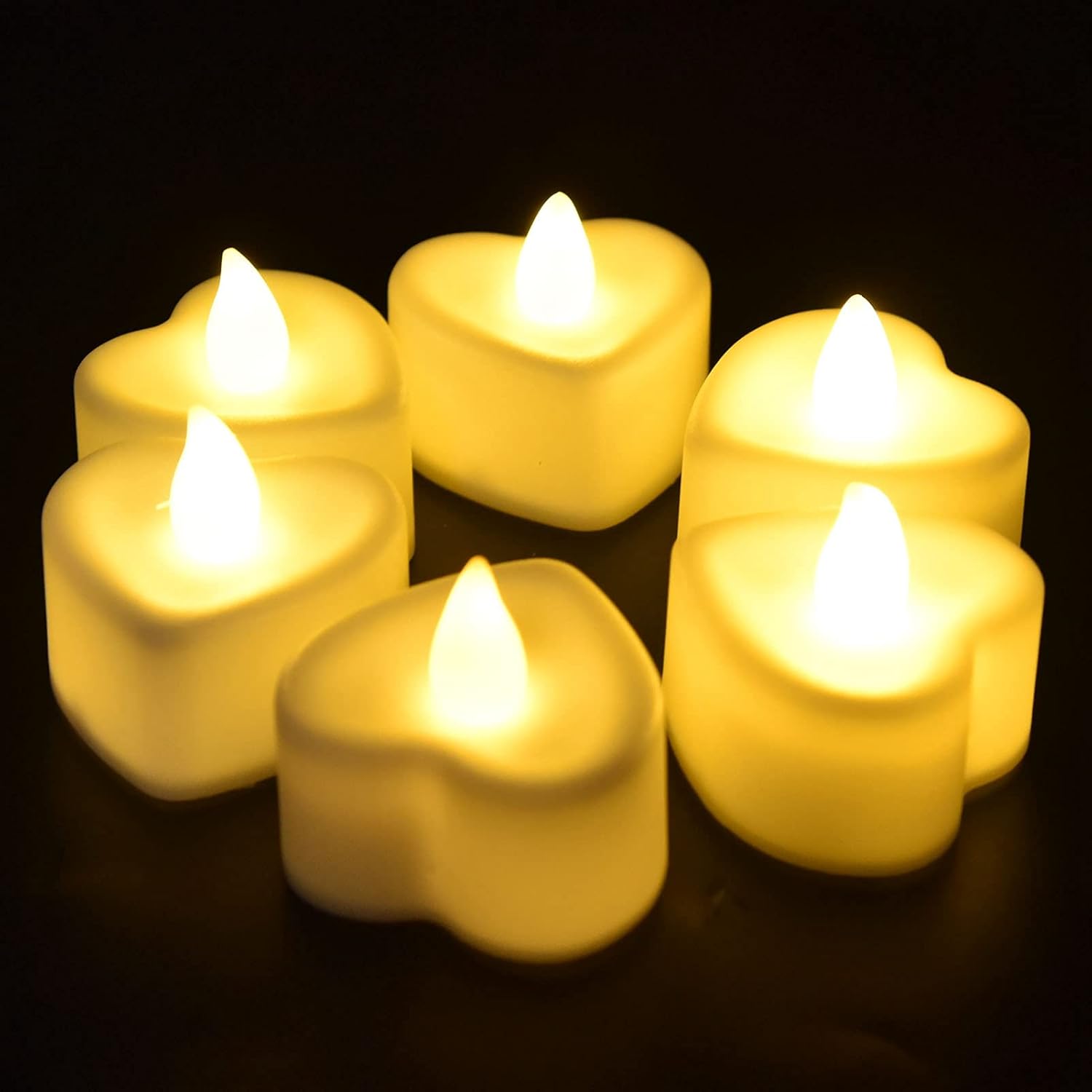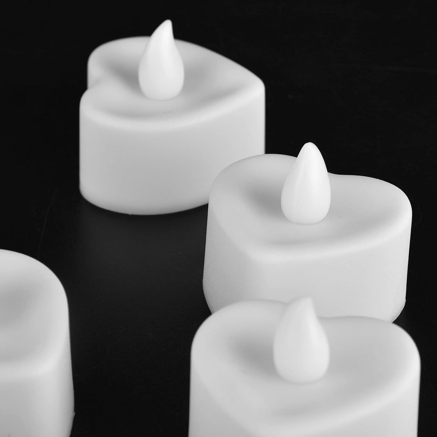 [Design a forma di cuore] Le candele a forma di cuore offrono un bagliore luminoso ed elegante, come sostituti di candele reali. [Efficienza energetica] bassa tensione e a batteria con 6 pezzi inclusi per soddisfare varie esigenze. [Funzionamento senza sforzo] Pulsante ON/OFF semplice e una facile sostituzione della batteria garantisce comodità e sicurezza. [Ideale per occasioni speciali] Creare un ambiente romantico per matrimoni, notti romantiche, docce nuziali e proposte di matrimonio. [Fonte luminosa a LED di alta qualità] Usando perle di lampada a LED premium, emette una luce bianca calda per un'atmosfera romantica.