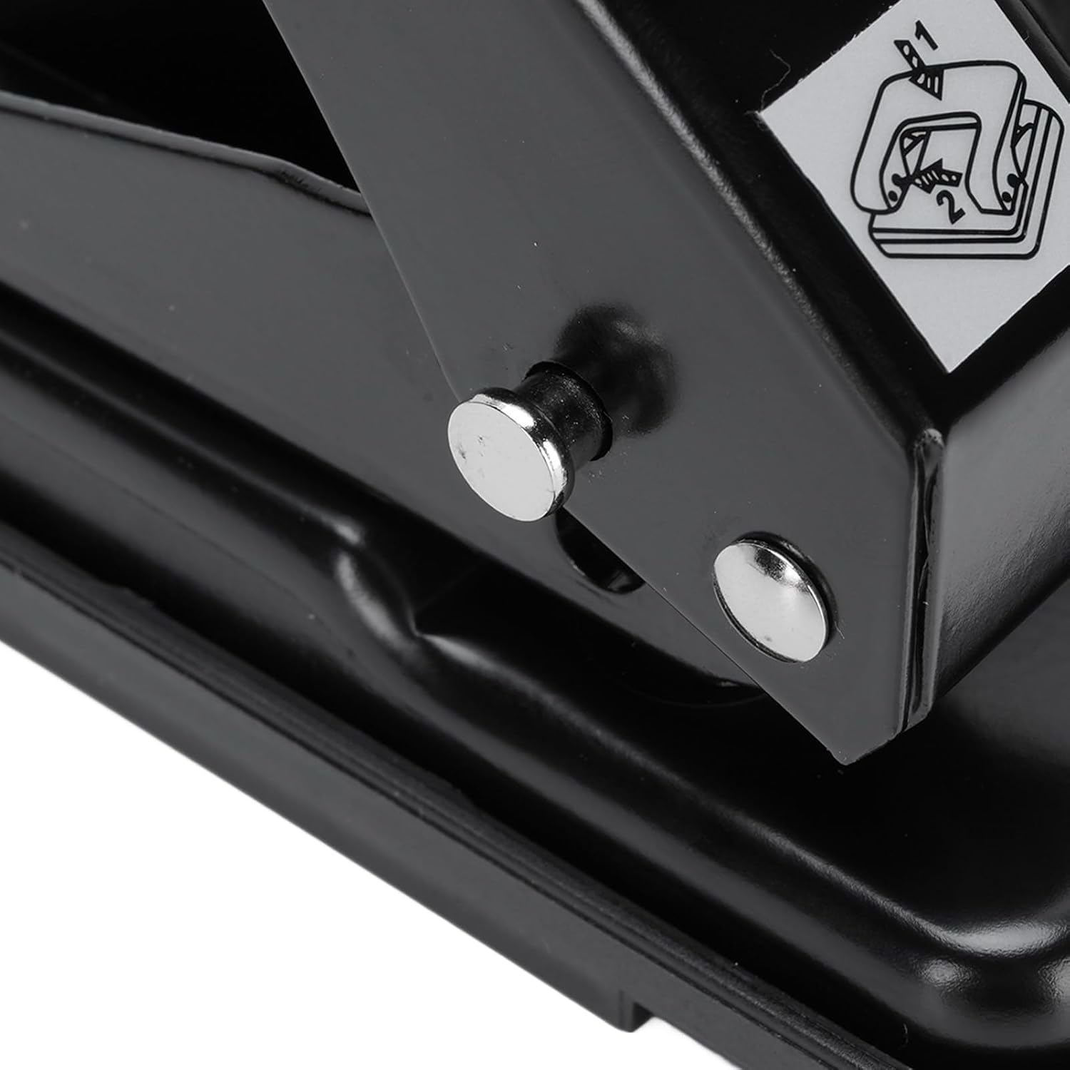 [Costruzione in metallo resistente] Realizzato in ferro resistente per prestazioni di lunga durata in uffici o ambienti scolastici esigenti. [Perforazione accurata 6 mm] Il design della lama inclinata garantisce un allineamento preciso dei fori e una penetrazione uniforme attraverso 40 fogli di carta. [Funzionamento senza sforzo] L'impugnatura ergonomica con molla elastica riduce l'affaticamento della mano durante le attività di punzonatura ripetitive. [Scatola di raccolta integrata] Il vassoio inferiore mantiene pulita l'area di lavoro poiché contiene tutti i ritagli di carta per un facile smaltimento. [Design salvaspazio] La spaziatura compatta dei fori di 80 mm si adatta ai raccoglitori standard mantenendo una profondità di alimentazione della carta di 12 mm per un facile posizionamento.