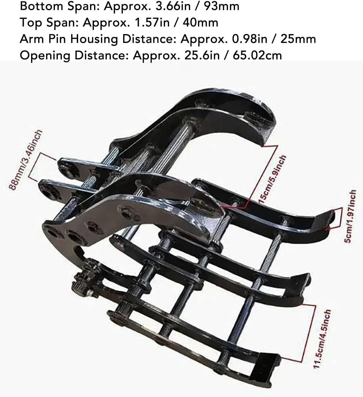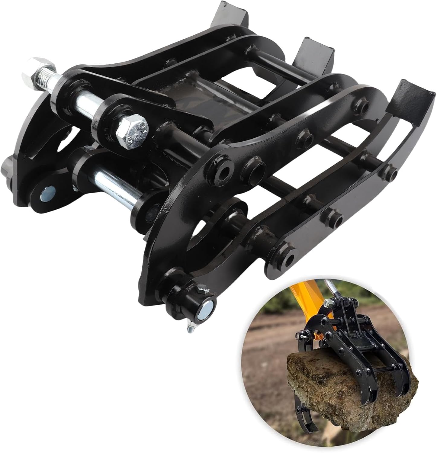 [Robusta struttura in acciaio al manganese] Realizzato in acciaio al manganese di alta qualità con verniciatura a polvere per resistenza all'ossidazione, ideale per ambienti umidi o difficili. [Potenti prestazioni di presa] Angolo di apertura di 120° e distanza di apertura massima di 25,6 pollici movimentazione efficiente di tronchi, rocce e detriti. [Installazione rapida] Include tutti i componenti necessari facile installazione, aumentando l'efficienza del lavoro dell'escavatore. [Ampie applicazioni] Uso versatile in progetti di costruzione, demolizione, giardinaggio, agricoltura e paesaggistica. [Compatibilità] Adatto a piccoli escavatori con campata inferiore di 93 mm, campata superiore di 40 mm e distanza dell'alloggiamento del perno del braccio di 25 mm.