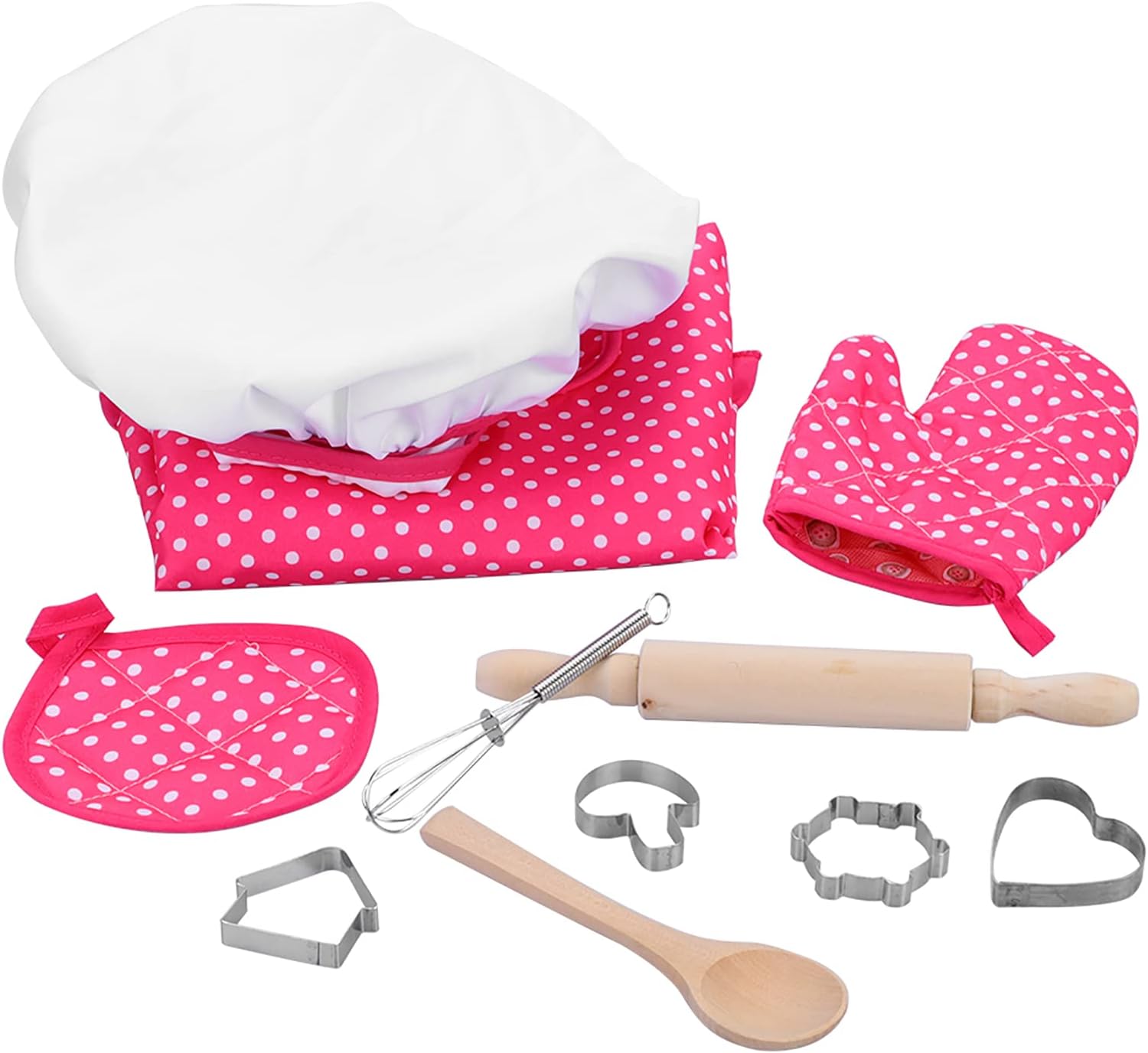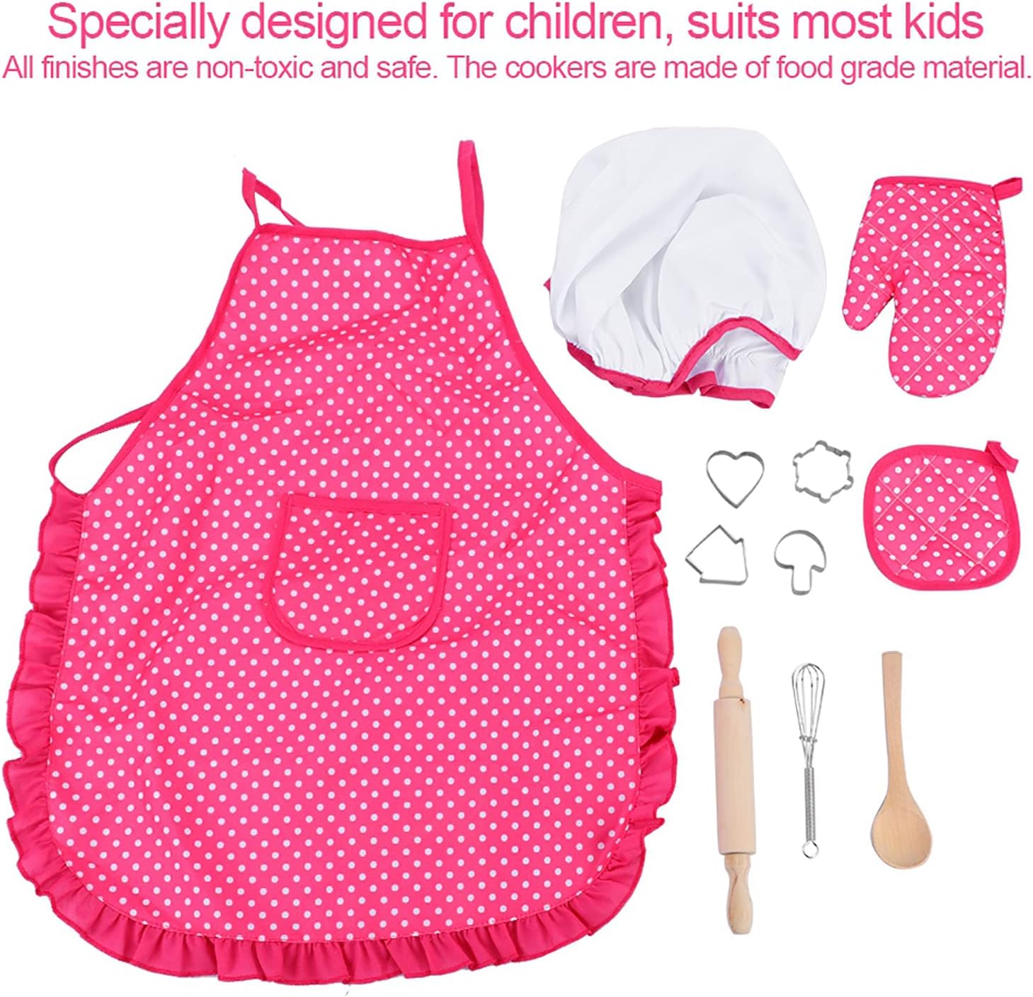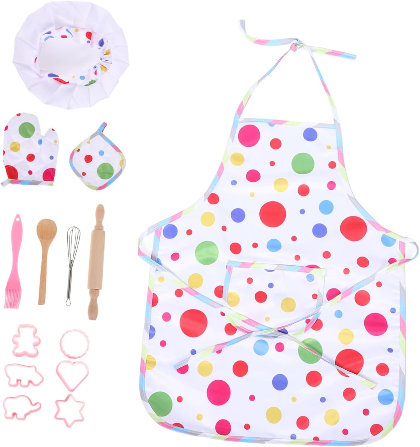 Joli petit ensemble pour faire la cuisine mais instruments de cuisine petit et la couture du tablier est de qualité moyenne. Mais petit prix donc tout s'explique !