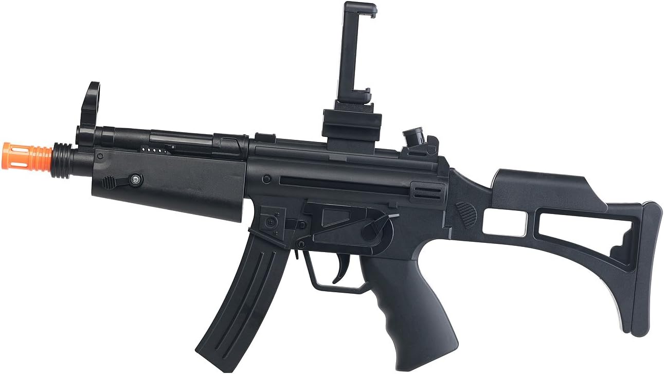 Molti giochi diversi nell'app • Adatto a quasi tutti i comuni smartphone • Controller per smartphone con accoppiamento automatico nel design del fucile • Adatto per smartphone fino a 85 mm di larghezza: ad es. iPhone 4S, 5, 5C, 5S, 6, 6S, SE, 7, 8, 8 Plus, X, Samsung Galaxy S6, S7, S8, HTC U11, HTC U Ultra, Sony XZ1, XA1 Plus e molto altro • Molte altre app compatibili: giochi per adulti e bambini • Dimensioni (con supporto): 480 x 47 x 267 mm, peso (senza batterie): 250 g Bluetooth 4.0 per collegamento a smartphone e iPhone • App gratuita per iOS e Android, disponibile nell'App Store e Google Play, con diversi giochi, viene costantemente ampliata • 1 LED blu nella volata: lampeggia durante la ricerca di una connessione • Fucile per realtà aumentata con istruzioni in tedesco Supporto per smartphone rimovibile • Accoppiamento automatico tramite app • Alimentazione: 4 batterie tipo AA / Mignon (da ordinare) Nota: l'immagine mostra un esempio di applicazione, lo smartphone non è compreso nella fornitura. Controller di gioco AR - Rilevante o adatto anche per: porta cellulare, cellulare, porta cellulare, fucile ad aria compressa, giocattolo, pistole, pistola, virtuale, occhiali, gamepad, occhiali, armi, giochi, armi, 3D