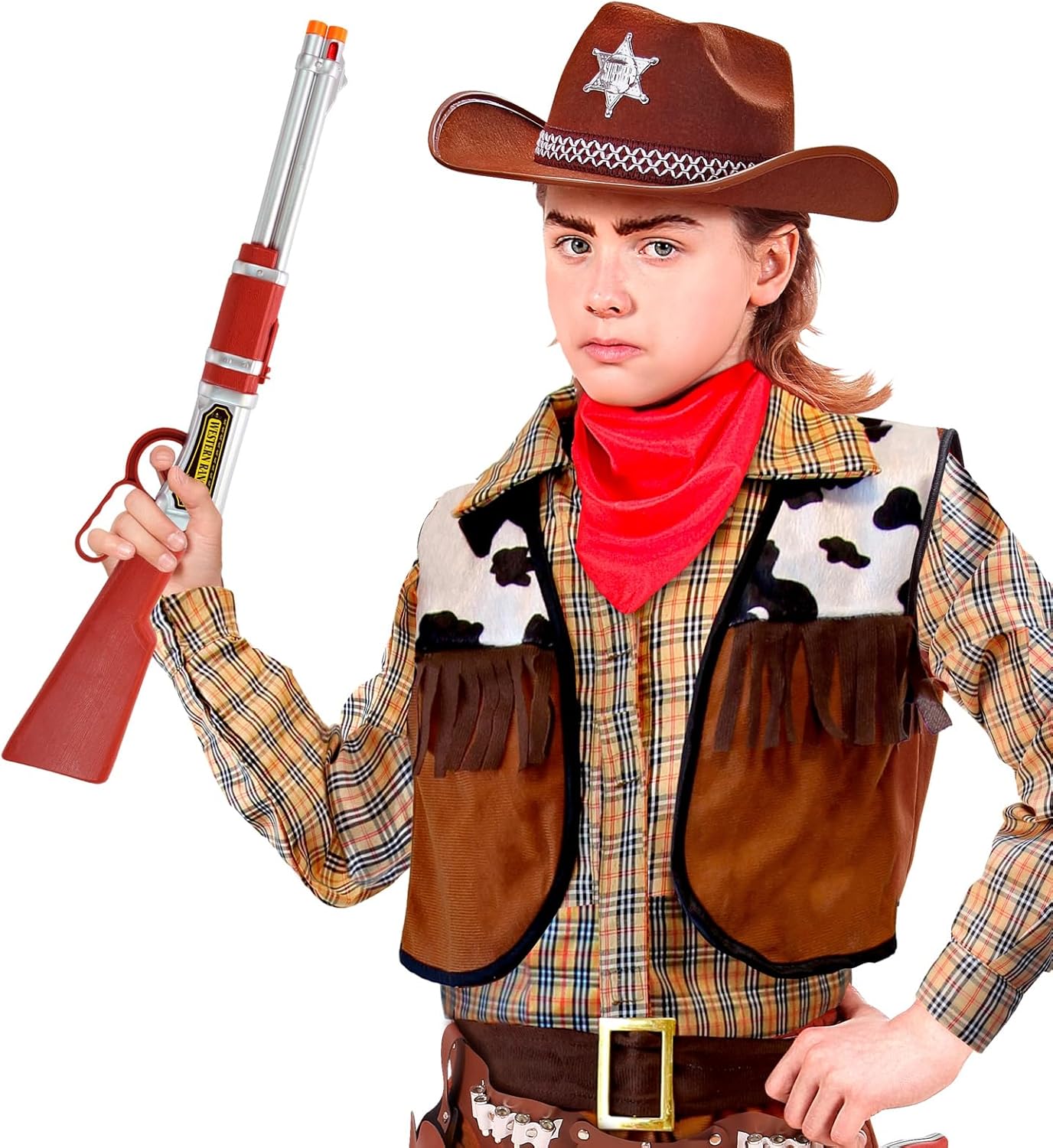 Il fucile da cowboy per bambini è un accessorio perfetto per completare travestimenti a tema western e far rivivere l’atmosfera avventurosa del Far West. Realizzato interamente in 100% polipropilene (PP), questo fucile è leggero, resistente e sicuro, ideale per i più piccoli che vogliono immergersi nel ruolo di un coraggioso cowboy o di un intrepido cacciatore di taglie. Con una lunghezza di 63 cm, il fucile ha dimensioni adeguate per adattarsi comodamente alle mani dei bambini, permettendo loro di maneggiarlo con facilità durante i giochi o le feste in maschera. Il design richiama lo stile classico dei fucili western, con dettagli ben definiti che rendono l’accessorio realistico senza compromettere la sua natura giocosa e innocua. Questo fucile è l’aggiunta ideale per costumi da cowboy, sceriffo, bandito o altri personaggi ispirati al selvaggio West. Perfetto per stimolare la fantasia e creare momenti di divertimento, può essere utilizzato sia durante il Carnevale che per giochi di ruolo a tema. La struttura in PP assicura una lunga durata, rendendo il fucile un compagno affidabile per molte avventure. Semplice da abbinare a cappelli, stivali e cinture, questo accessorio è il tocco finale che rende qualsiasi travestimento western completo e accattivante. Un oggetto che catturerà l’immaginazione dei bambini, trasformandoli in piccoli eroi del Far West pronti a vivere emozionanti storie di frontiera. Misura: 63 Cm. Composizione: 100% PP Scopri i Costumi di Carnevale Correlati... Per Informazioni Contattaci allo 081 18409077