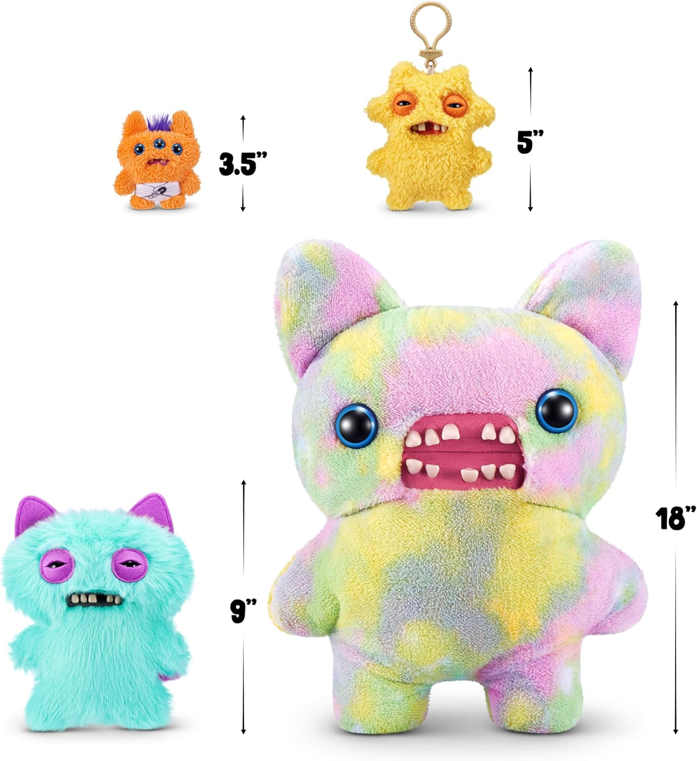 PELUCHE PARTICOLARE: I nostri Fugglers da 22 cm sono delle dimensioni ideali e realizzati in morbidissimo peluche. ATTENZIONE: ti rovineranno la vita! RARO BUCO CON PULSANTE SUI GLUTEI: Riuscirai a trovare il Fuggler con il raro buco con pulsante sui glutei? DENTI COME QUELLI UMANI: Ogni Fuggler ha una serie inquietante di denti simili a quelli umani. COLLEZIONALI TUTTI: Con così tanti Fugglers da collezionare, puoi mettere su un’intera famiglia di simpatici mostri. BUTT UGLY PETS: Una linea carina (ma non lasciarti ingannare) di amichetti pelosi Fuggler di peluche.