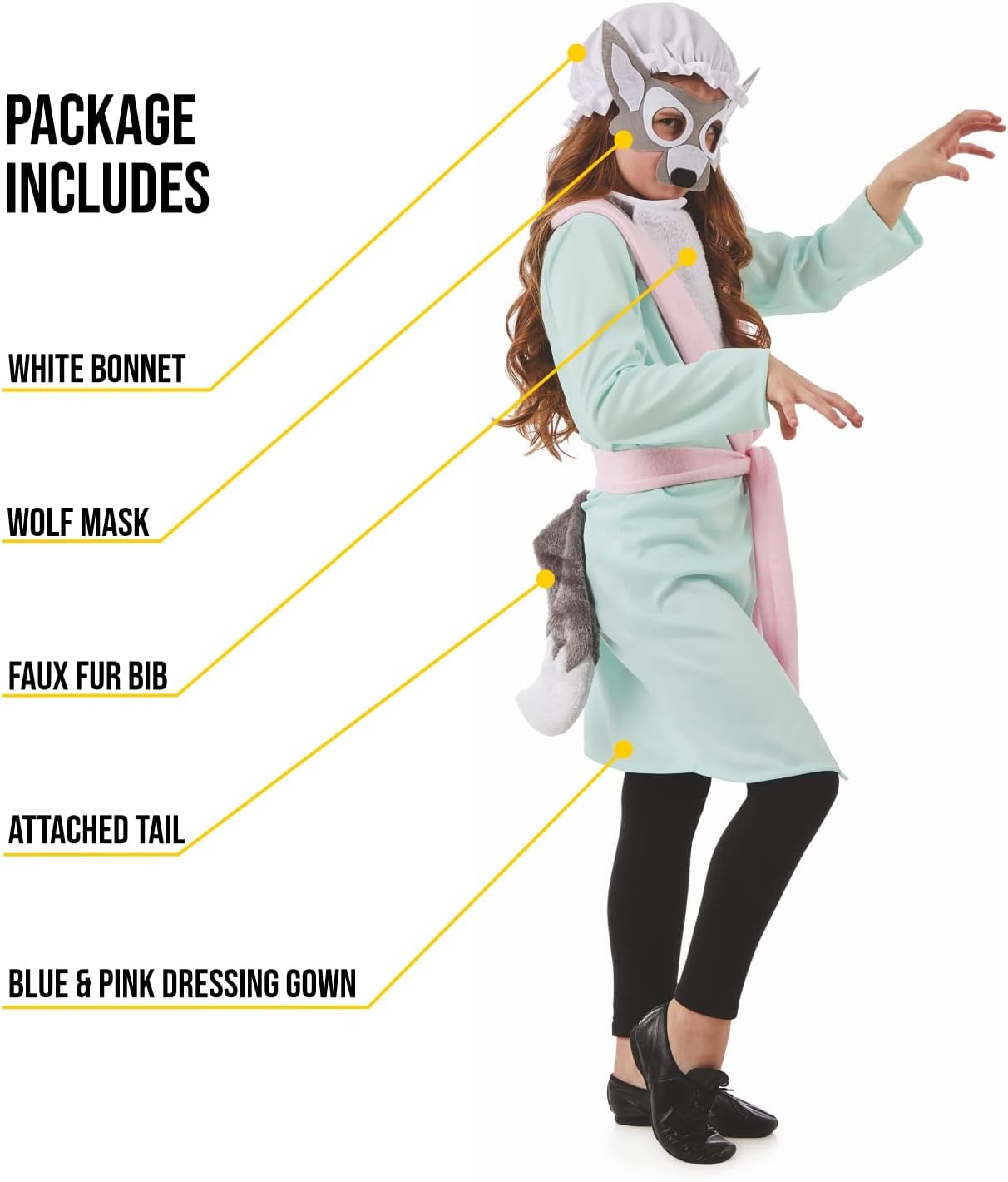 Fun Shack Costume da Lupo Malvagio per Bambini Cappuccetto Rosso Costume da Lupo Cattivo Camicia da Notte da Nonna con Cappuccio Camicia da Notte Costume da Fiaba Costume da Carnevale della Nonna Disponibile nelle taglie S, L, XL