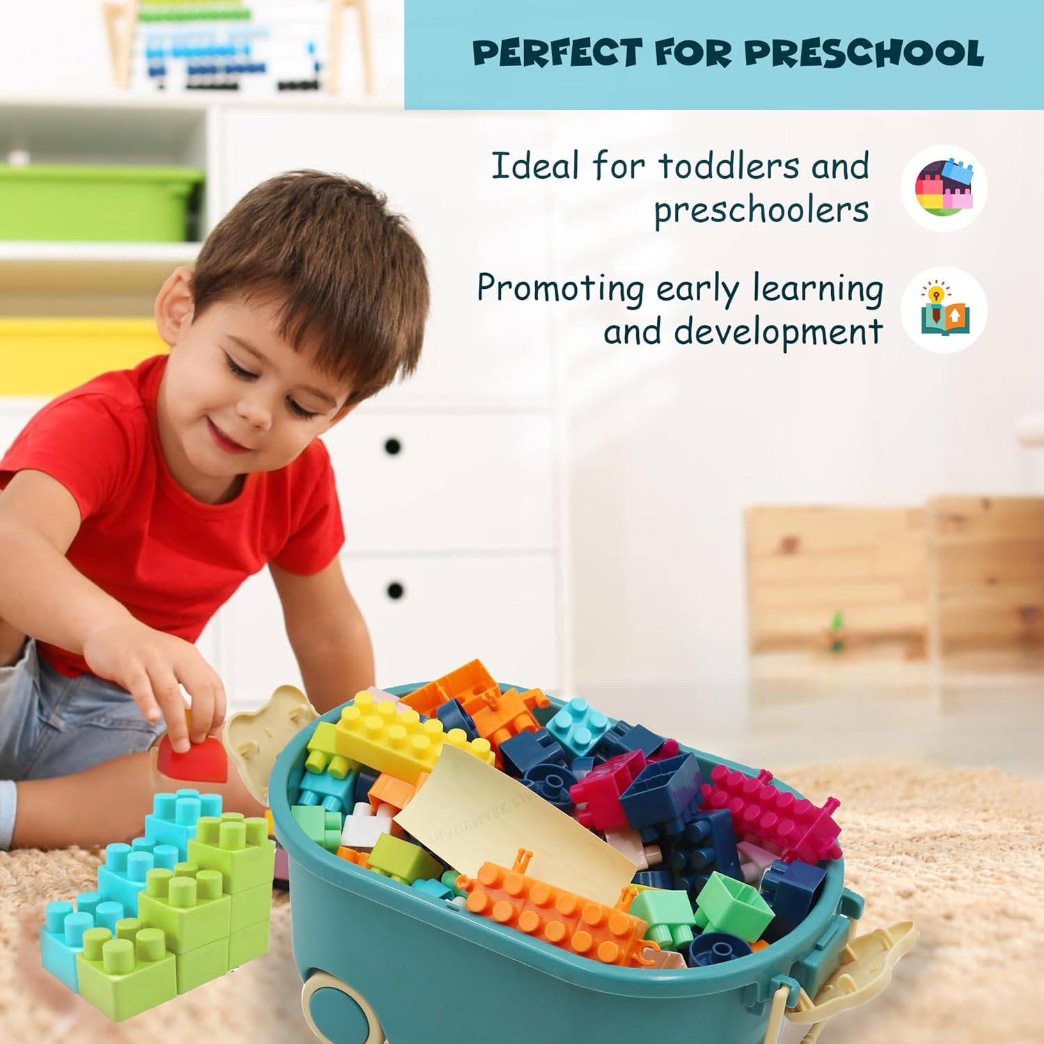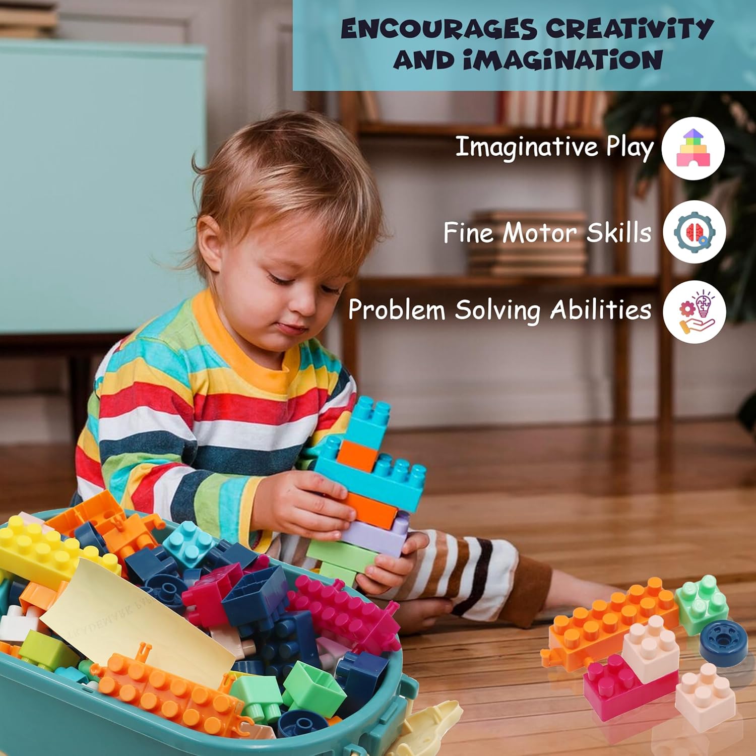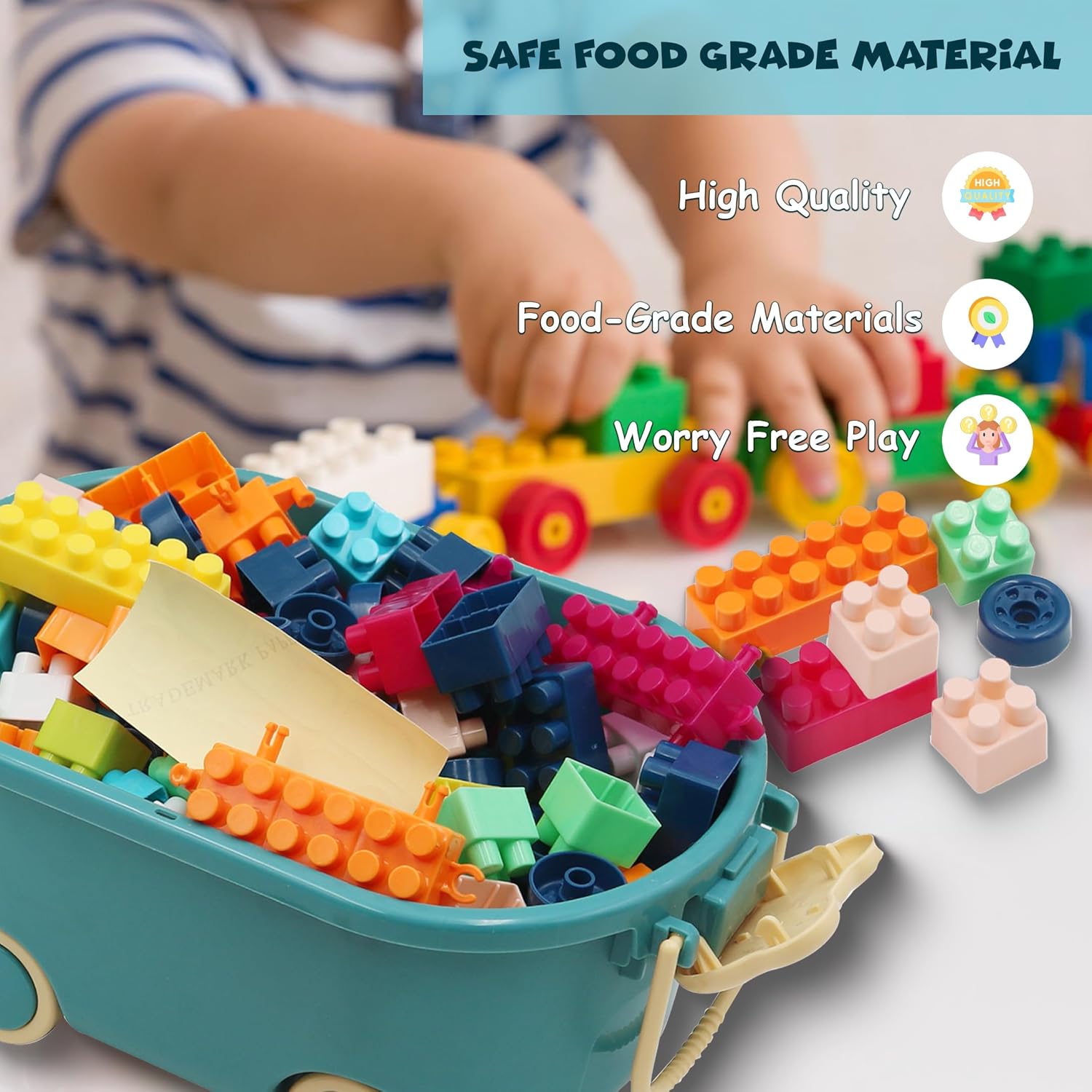 INCORAGGIA LA CREATIVITÀ E L'IMMAGINAZIONE: Promuove il gioco fantasioso, le capacità motorie e le capacità di risoluzione dei problemi mentre i bambini costruiscono e creano varie strutture. Perfetto per i bambini in età prescolare: progettato per bambini piccoli e in età prescolare, rendendolo un giocattolo educativo ideale per l'apprendimento e lo sviluppo precoce. Facile da organizzare e riporre: la scatola inclusa rende facile mantenere tutti i blocchi organizzati e accessibili per future sessioni di gioco. Materiale sicuro per uso alimentare: realizzato con materiali certificati per uso alimentare di alta qualità, garantendo la sicurezza dei bambini durante il gioco. Contenuto della confezione: 150 mattoncini