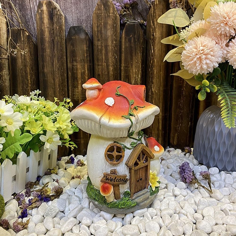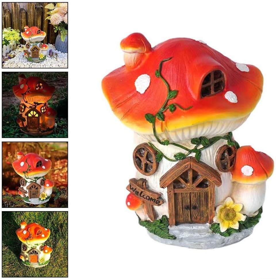 Decorazione per esterni con ciliegia: questa graziosa casetta a fungo solare per esterni presenta un design incantevole che aggiunge stravaganza al tuo giardino creando un'atmosfera per ospiti e passanti. Materiale in resina: realizzata in resina robusta, questa scultura è costruita per resistere a condizioni climatiche avverse mantenendo il suo aspetto delizioso nel tuo cortile o giardino. Illuminazione a energia solare: goditi un'illuminazione senza problemi poiché questa decorazione assorbe la luce solare durante il giorno ed emette un bagliore morbido di notte, aggiungendo fascino al tuo ambiente esterno senza sforzo. [Perfetto per festeggiamenti] Una scelta eccellente per commemorare momenti speciali come compleanni o vacanze con la famiglia e gli amici, diffondendo gioia ovunque sia posizionato. Opzioni di posizionamento: misura 15 x 11 x 19 cm, questo accattivante ornamento può essere comodamente posizionato in vari punti come aiuole o lungo sentieri.