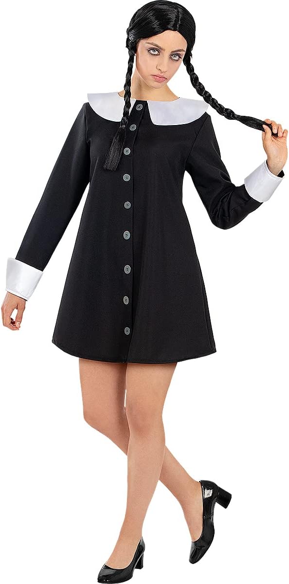 Funidelia | Costume da Mercoledì Addams da - La Famiglia Addams per donna Film di paura, Horror - Costume per Adulto e accessori per Feste, Carnevale e Halloween - Nero