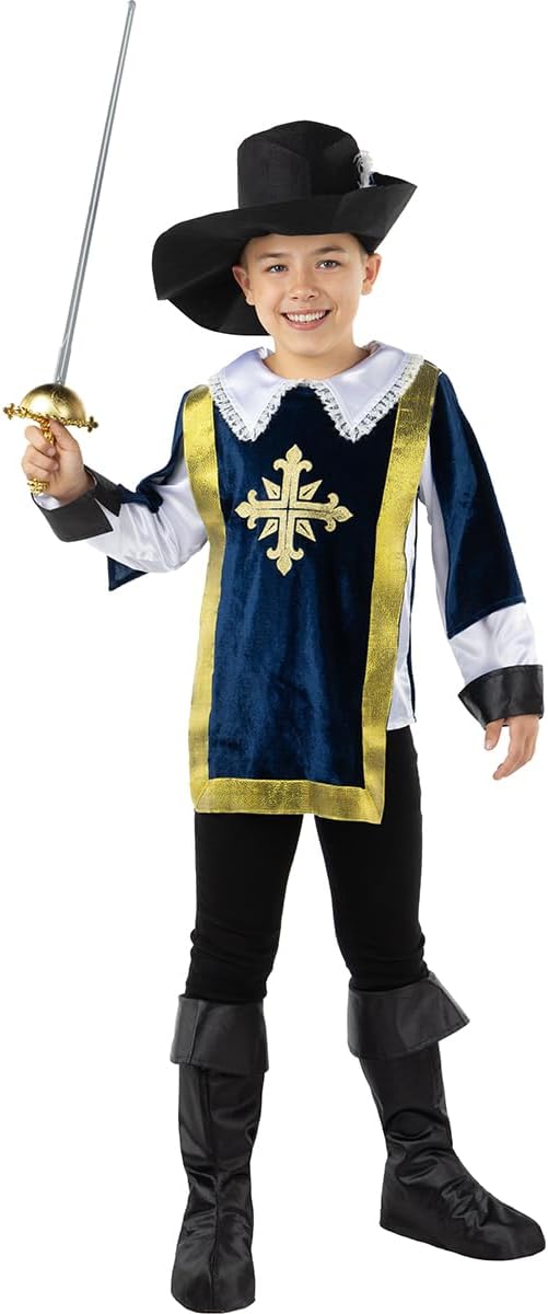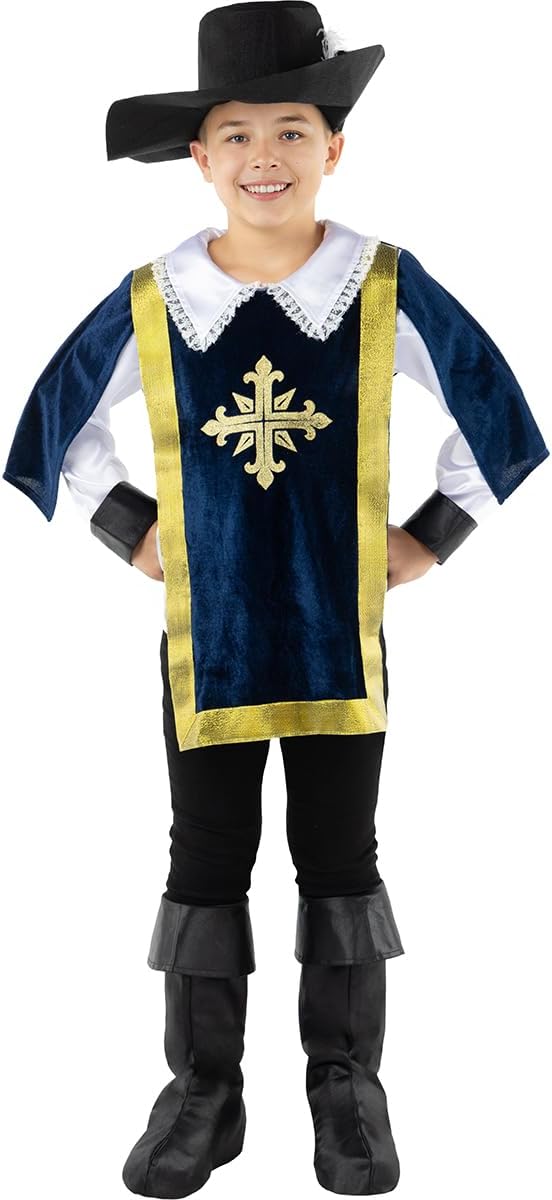 Costumes can be a risky business. One moment you’re aiming for dashing hero of the realm, the next you’re looking like an extra from an amateur pantomime who’s lost a duel with a laundry basket. Fortunately, this Musketeer outfit veers firmly towards the former — with style, flair, and just enough theatrical charm to make it a rather triumphant choice for any costumed occasion. The shirt is the undisputed star of the ensemble. It’s cut with dramatic flourish — wide sleeves, a generous collar, and that unmistakable swashbuckler silhouette that practically demands you strike a pose with a feathered plume and shout “All for one!” The fabric feels soft enough not to irritate, but crisp enough to hold its shape. Most impressive is the chasuble — that signature tabard-like tunic which sits over the shirt — adorned with a large printed gold cross that gives the outfit a proper period drama finish. The cross is well-rendered and adds a touch of regality to the look, as though you're ready to stride into court or challenge a villain to a duel over honour and a damsel’s glove. The overboots deserve a special mention. Now, nobody is expecting real leather at this price point, but the synthetic alternative used here is surprisingly convincing. They slip over your own footwear to create that cavalier-style silhouette and manage to look rather impressive, especially from a distance. They won’t withstand a march through a muddy field, granted, but they’ll certainly hold their own at a party, parade or themed gathering. However, no review of this costume would be complete without addressing the elephant — or rather, the hat — in the room. It’s here that the ensemble falters slightly. The hat arrives folded in a way that would make an origami master weep. It’s made of felt, and once released from its packaging, resembles a squashed scone more than a proud musketeer’s plume-topped crown. Reviving it to its intended shape requires both patience and a steamer, and even then it may never quite regain the commanding presence the rest of the outfit so effortlessly achieves. The feather (or nib, if we’re being fancy) is a touch on the modest side — more polite nod than dramatic flair. A longer, fuller feather would absolutely elevate the hat from “slightly apologetic” to “gallant and theatrical.” Despite this millinery hiccup, the overall visual impact is strong. Worn together, the components create a cohesive and recognisable character — dramatic, noble, and ready for stage, screen or soirée. It’s clear that thought has gone into the detailing, and there’s a delightful theatricality to the look that children and adults alike will appreciate. The sizing is relatively forgiving, allowing for a comfortable fit, and the whole costume strikes a fine balance between costume-party fun and historical homage. In conclusion? If you can tame the hat — with a bit of steam, patience, and possibly a replacement feather sourced elsewhere — you’ve got yourself a striking, stylish outfit that channels the romantic heroism of Dumas’ musketeers with admirable flair. Whether you’re attending a themed birthday, a Renaissance fair, or simply aiming to be the most dashing figure at a fancy dress event, this costume delivers the swagger — just keep a hat box on standby.